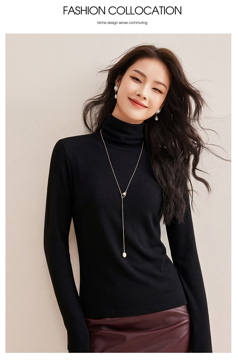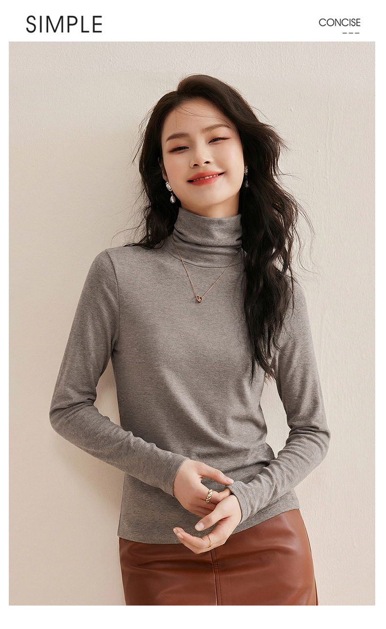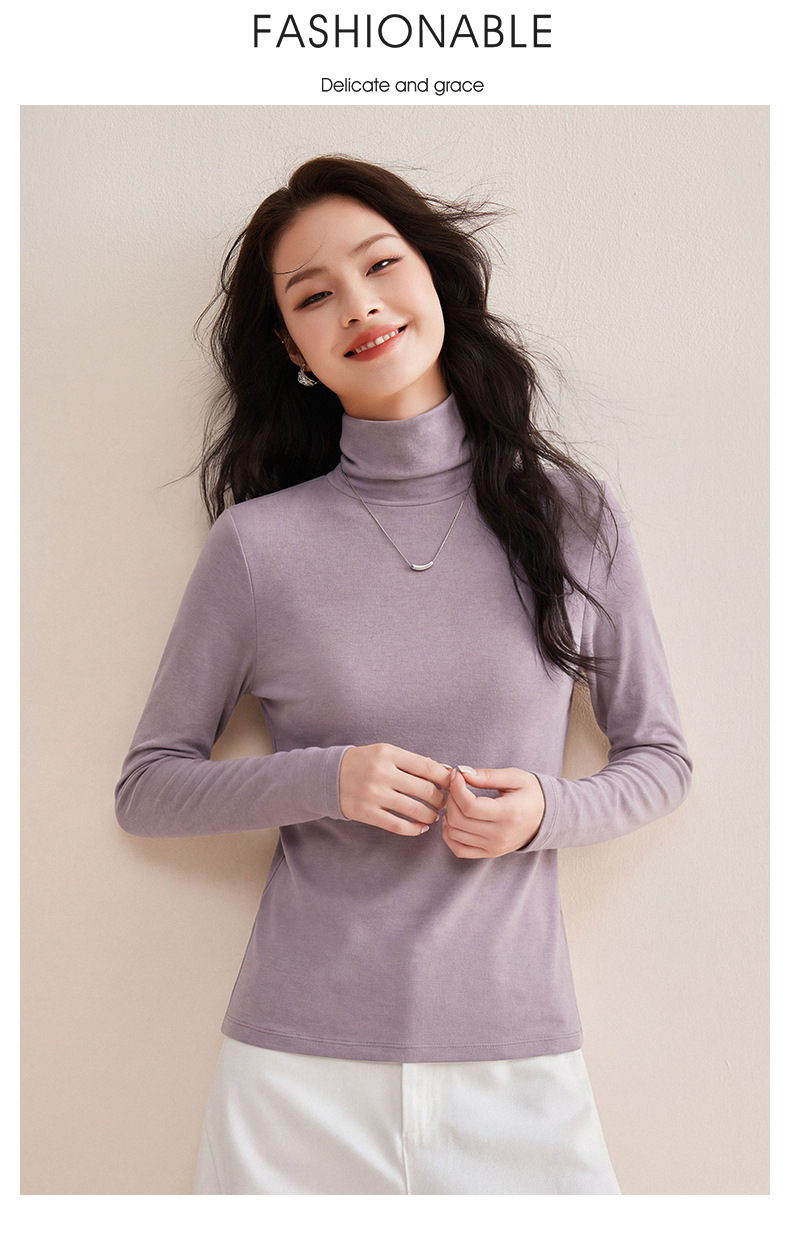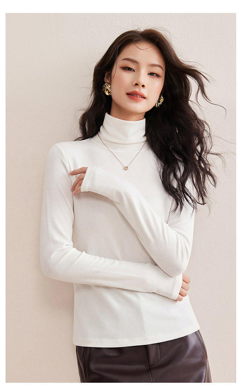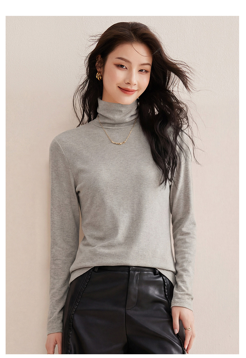 丁摩 可机洗美利奴精纺绵羊毛薄款高领打底衫女堆堆领修身针织高端内搭5ZF-18