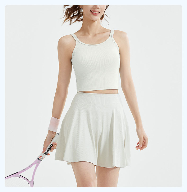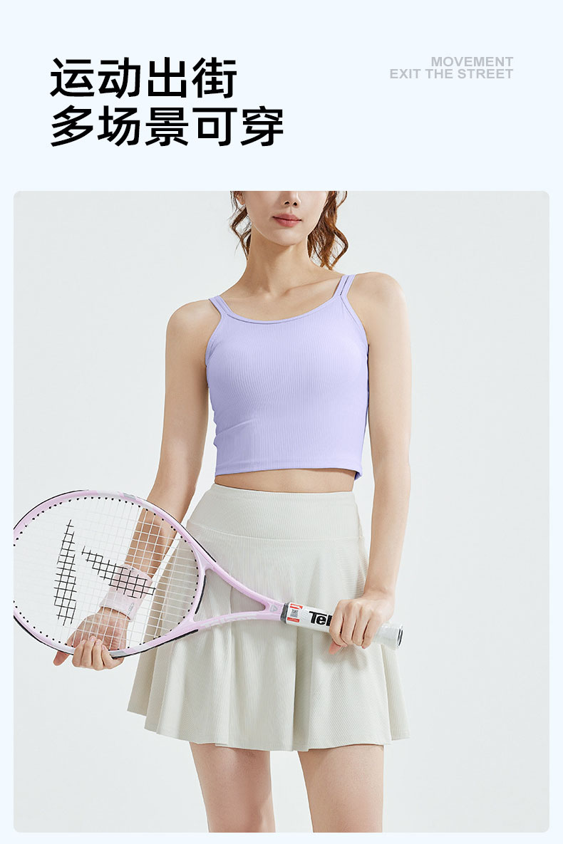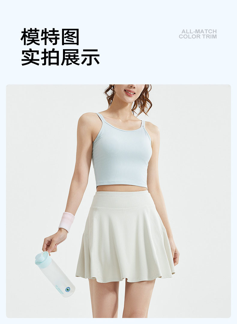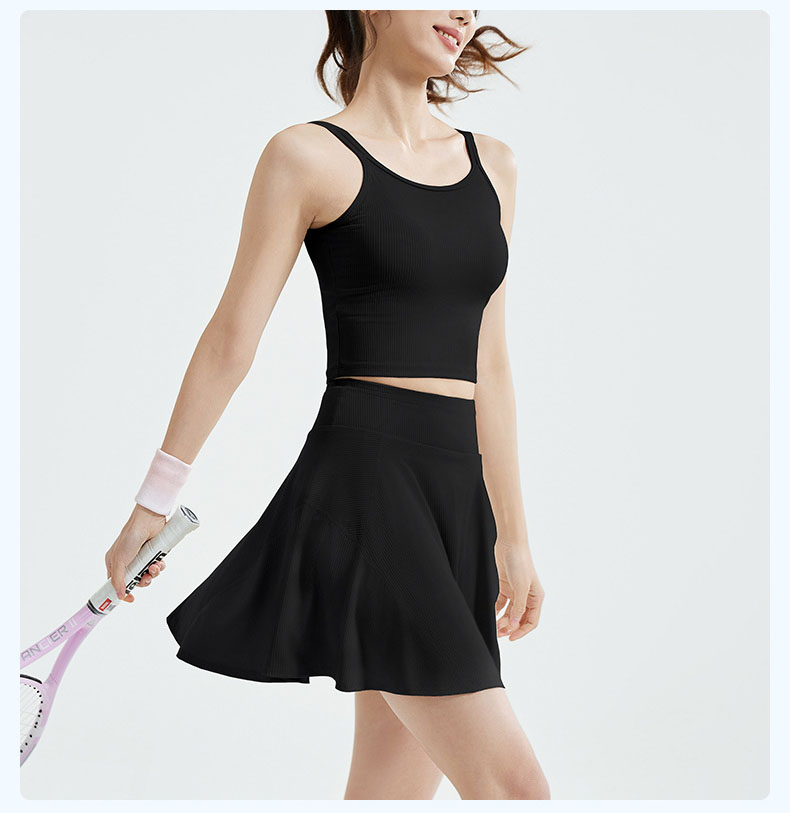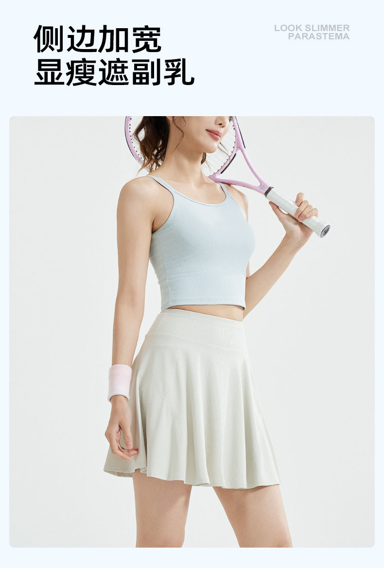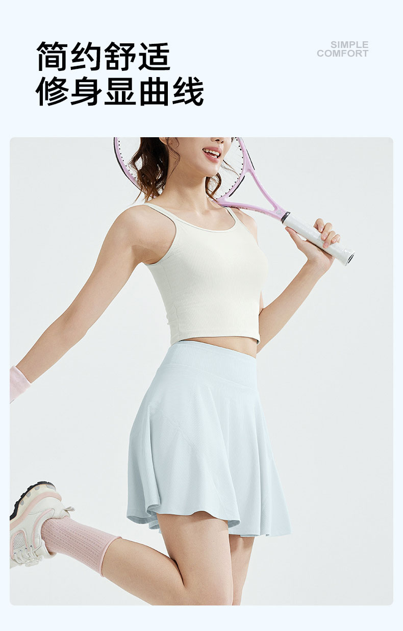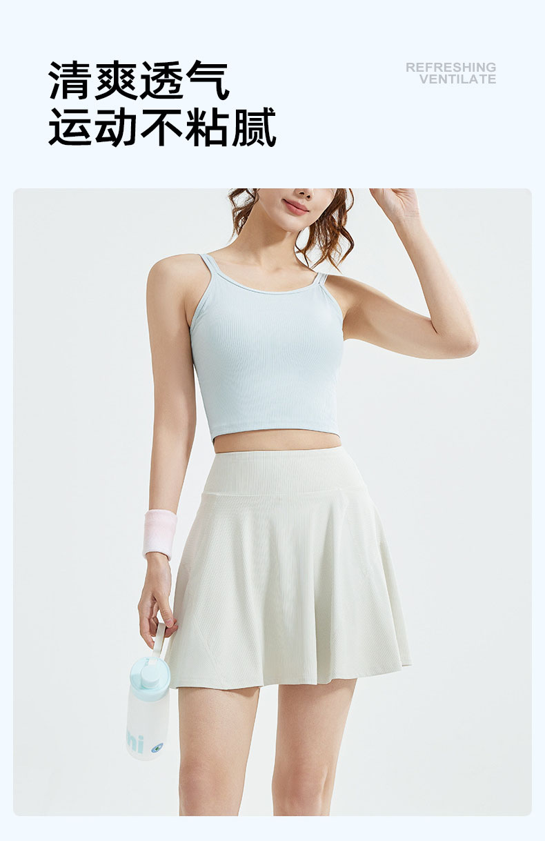 跃牌【瑜堂系列】薄款跑步运动套装女假两件半身裙防走光高腰背心短裙套装JYTB022+JYTQ001