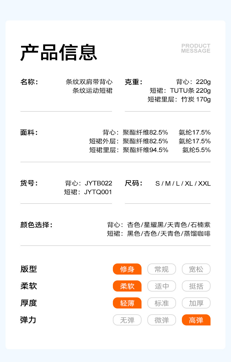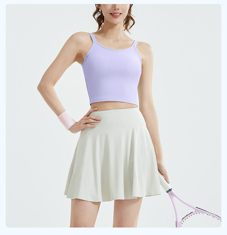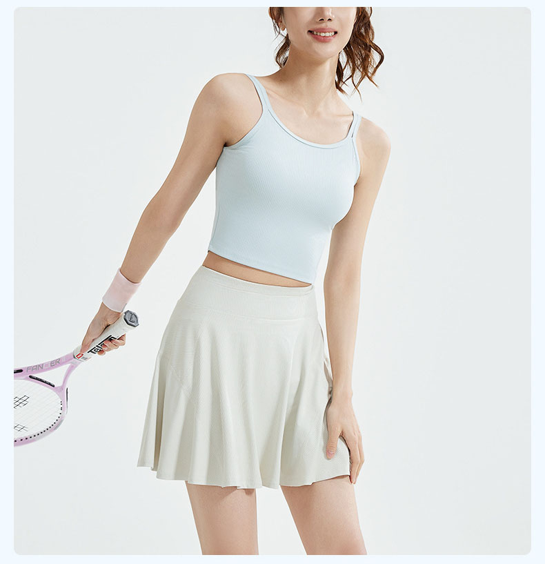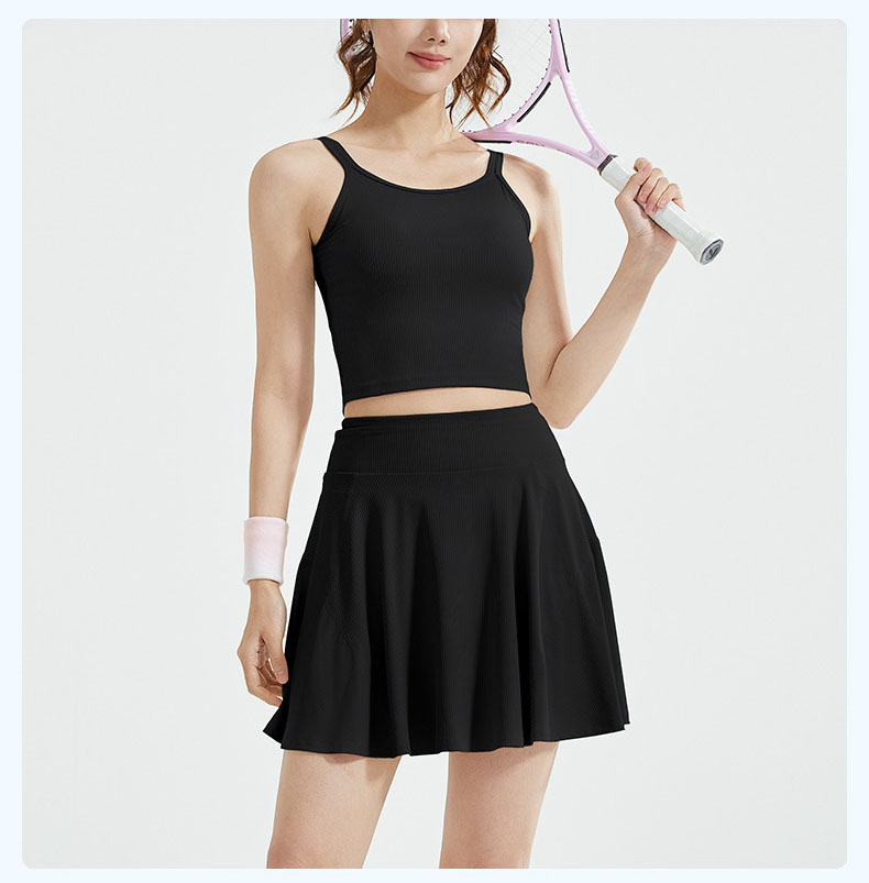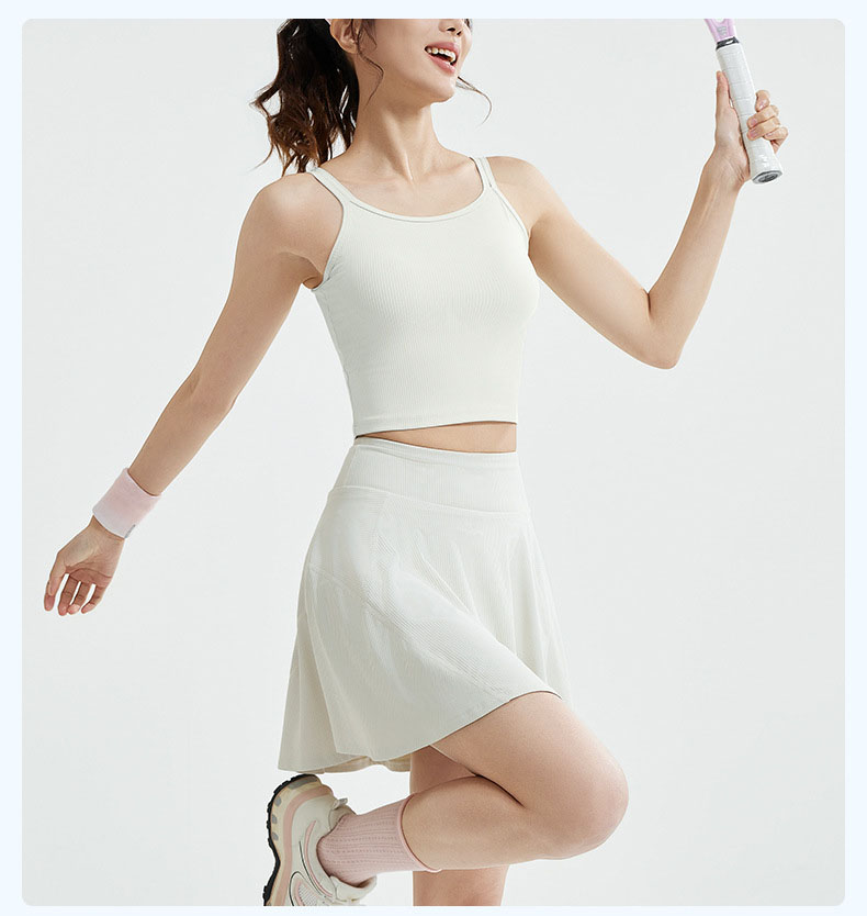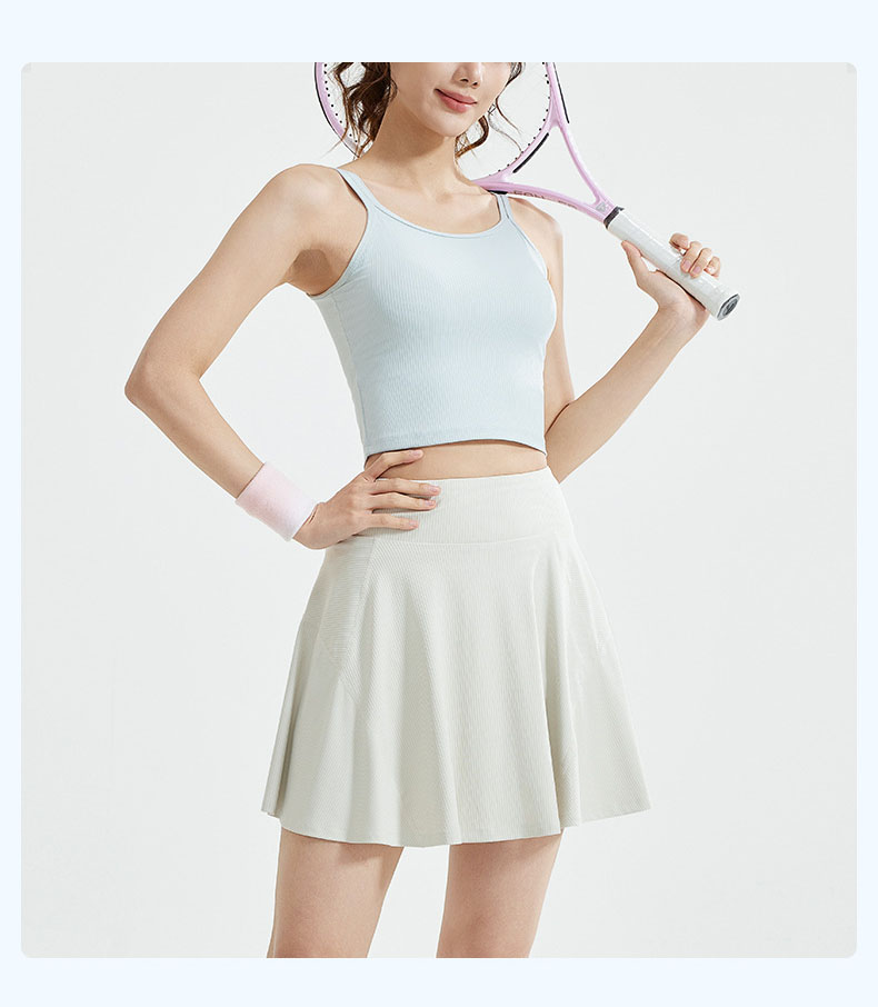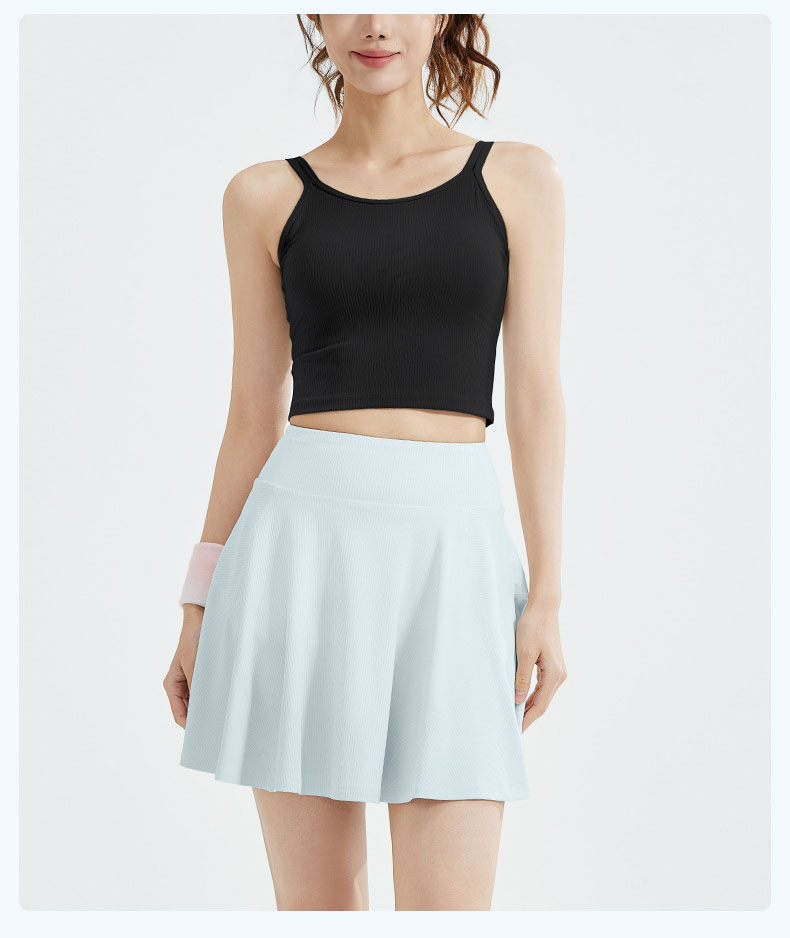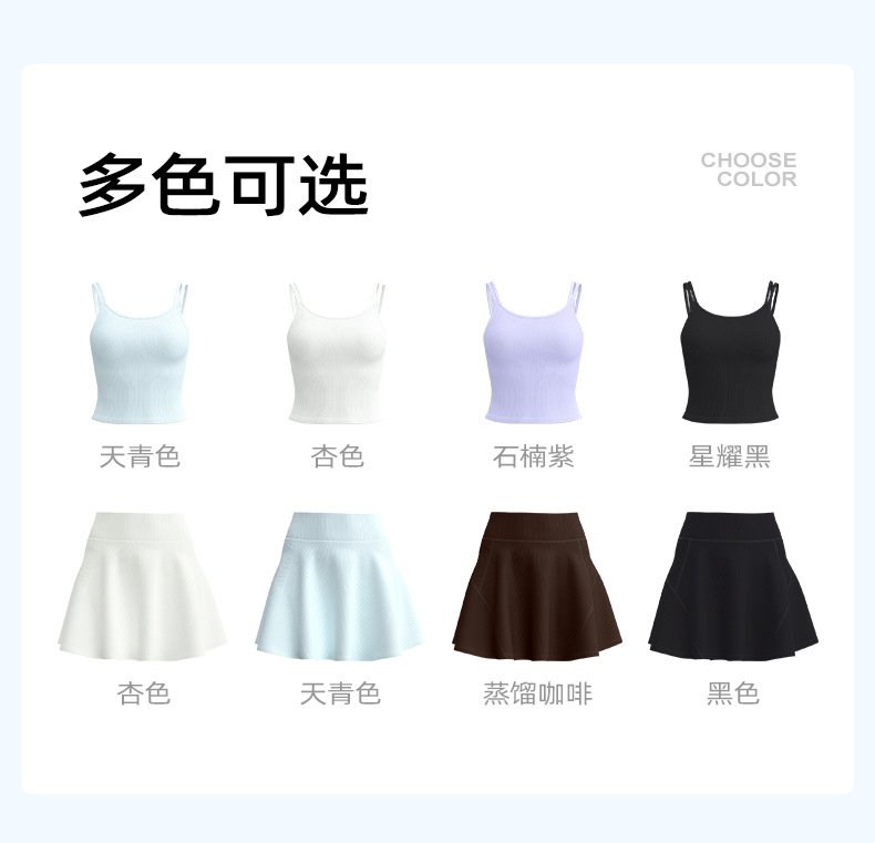 跃牌【瑜堂系列】薄款跑步运动套装女假两件半身裙防走光高腰背心短裙套装JYTB022+JYTQ001