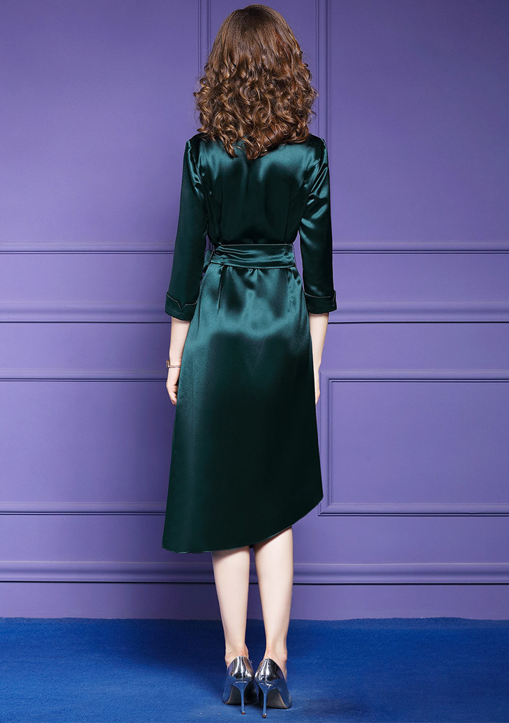 FMY-FX9QL25358新款醋酸缎面丝滑气质收腰V领中长款不规则连衣裙TZW