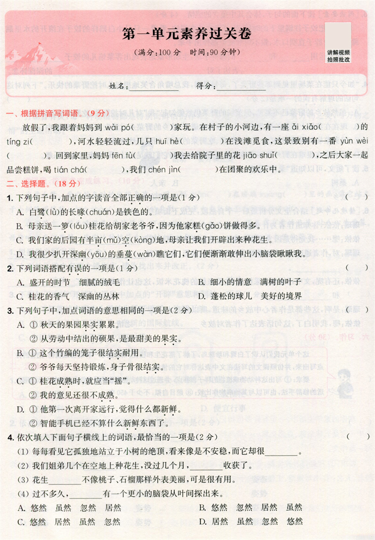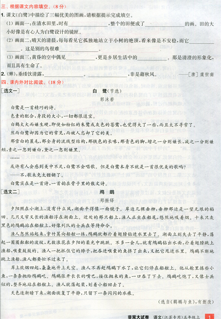 2025秋 非常大试卷 语文 五年级上册 人教版 部编版 小学教辅 测试卷 同步训练 5上 含答案讲解视频 通成学典