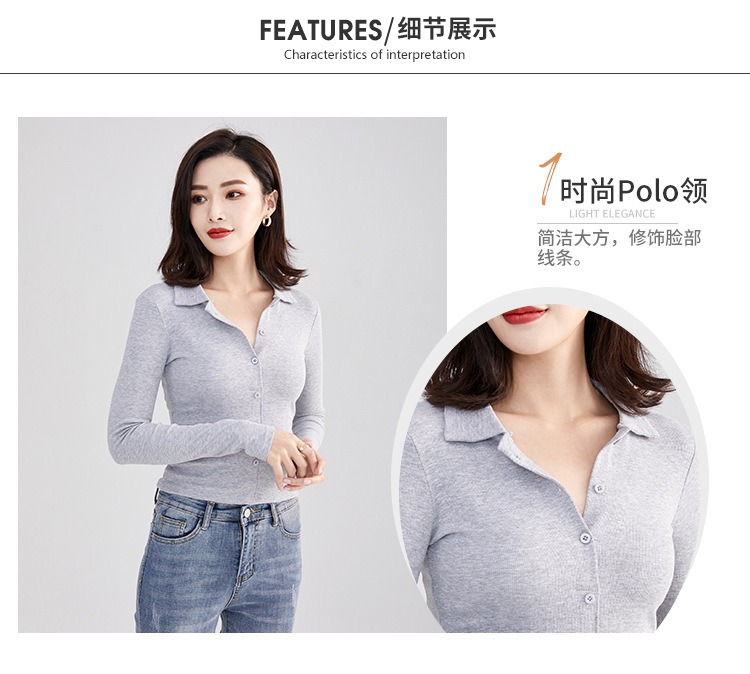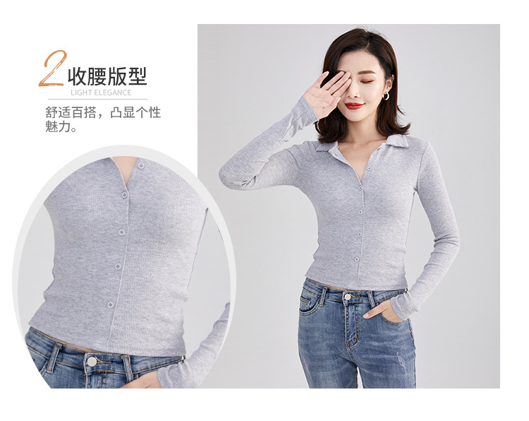 YSL-TC1007新款女装韩版气质长袖修身翻领上衣