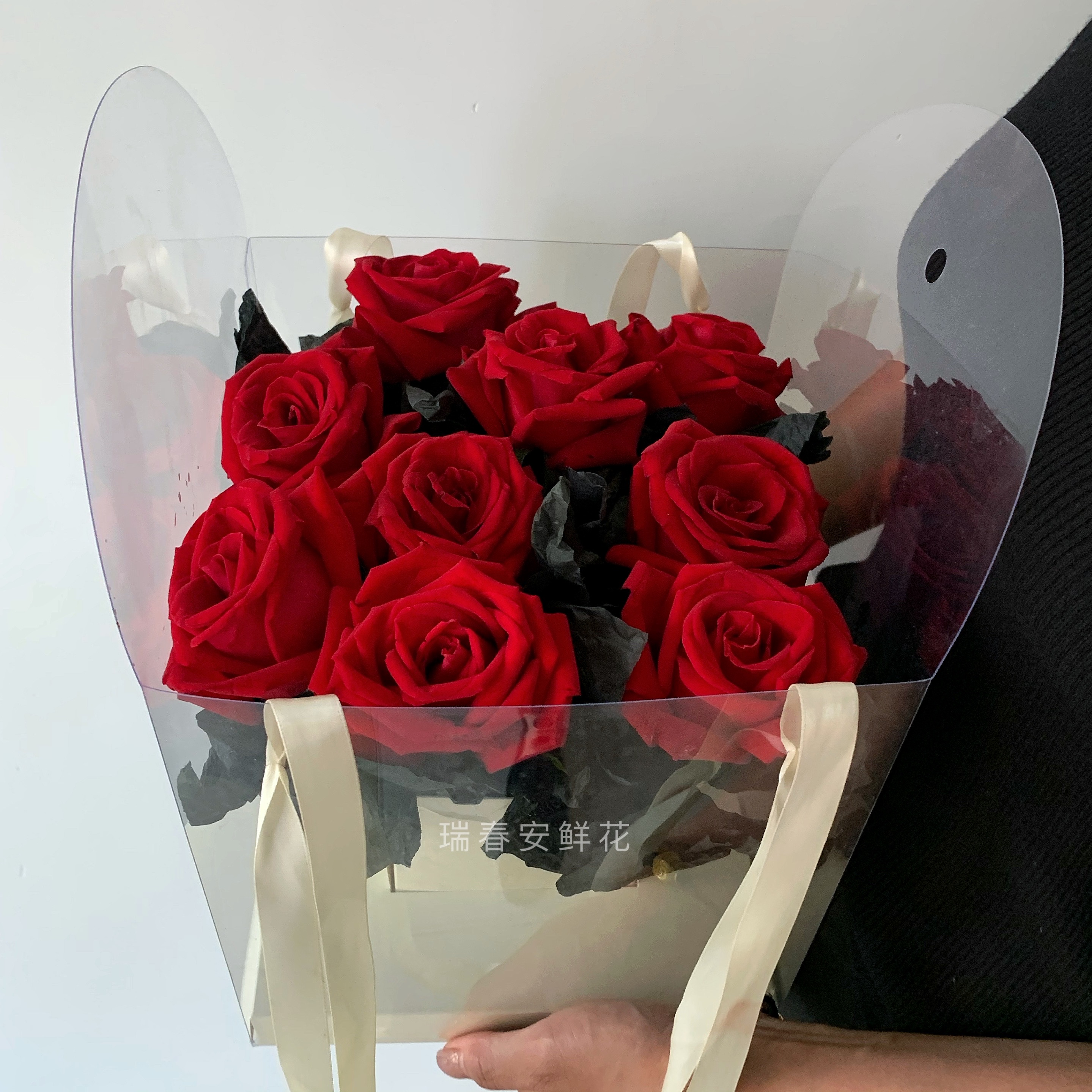 【产品规格】:9支红色玫瑰,黑色云朵棉填空。花材饱满 如图包装,花都是下单后现做,1-2小时送达 ( 节日只保证当天送达,请理解)。下单请填写订花人电话谢谢,和送达时间,防止联系不到收花人。本店都是当天新到花材,如图包装制作,(部分花材缺货可能用相似或等价值花材替换)如查询配送进度可以联系我们。我们免费赠送可利鲜鲜花保鲜剂和一张贺卡,贺卡内容需要下单填写哦。