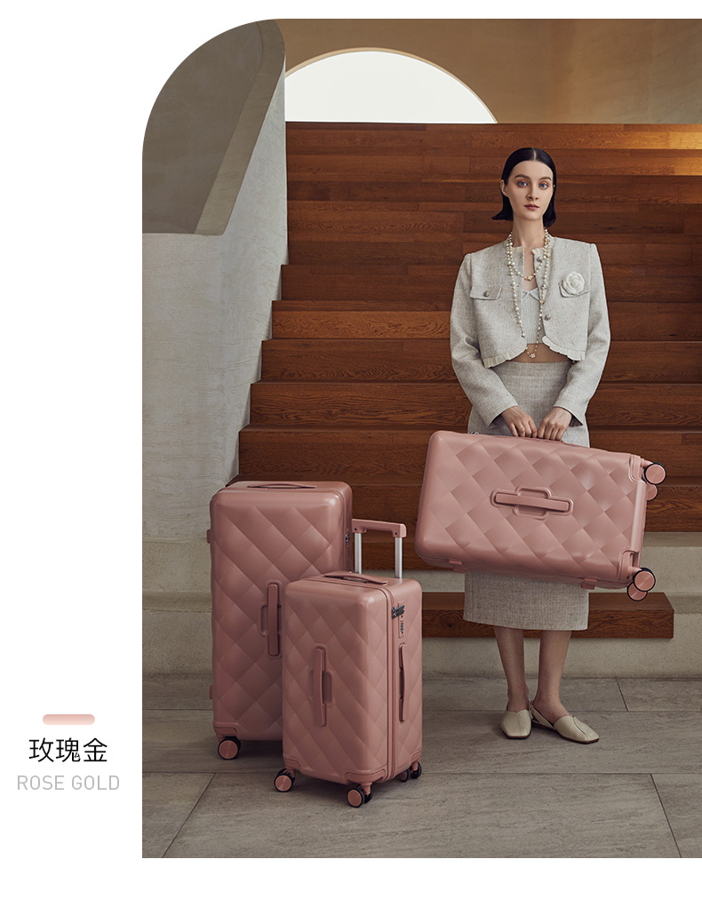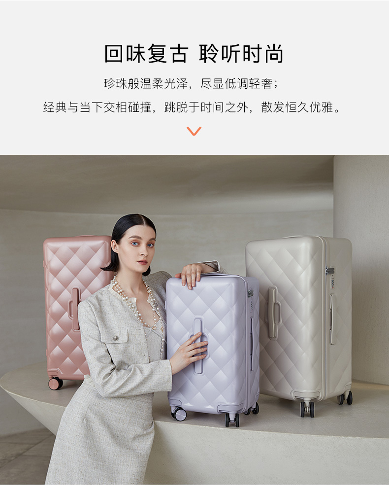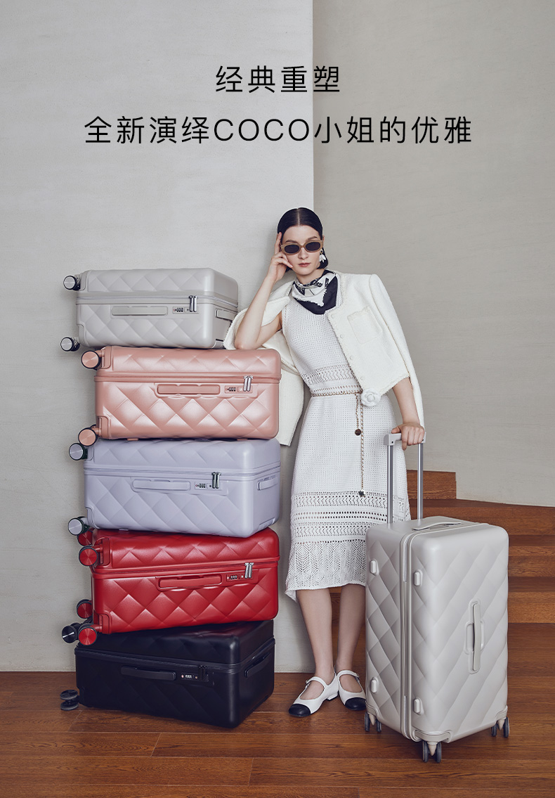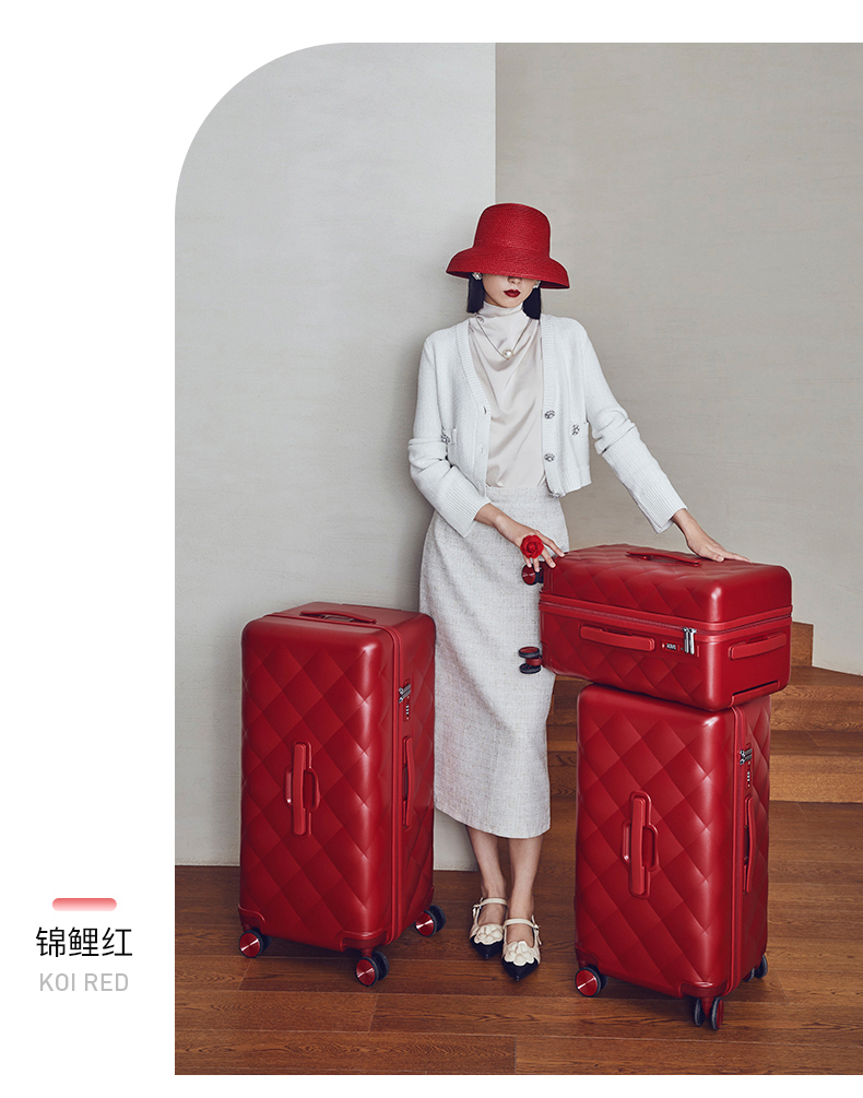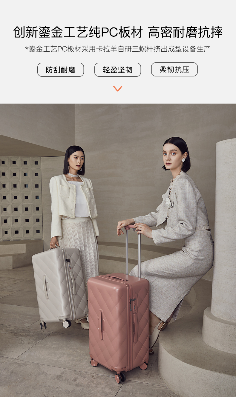 【红点奖设计师款】卡拉羊X锦囊小香风皮革纹纯PC超轻二八开魔方体行李箱CN8113(TX)
