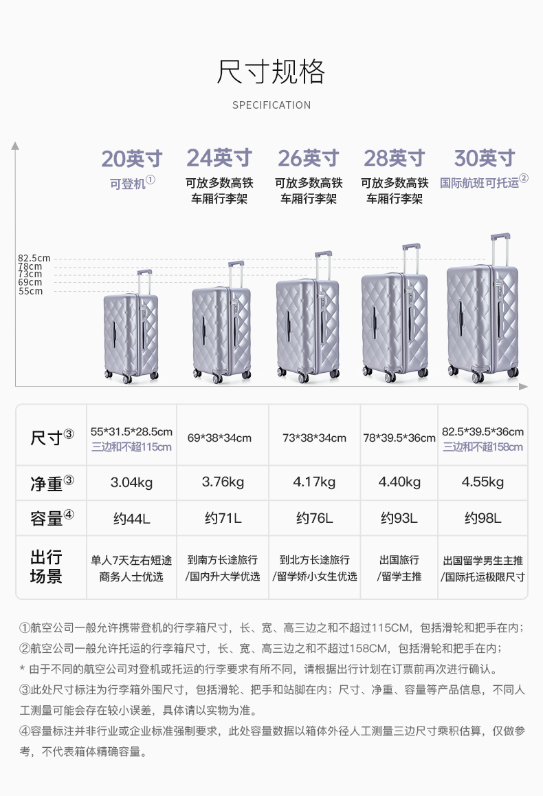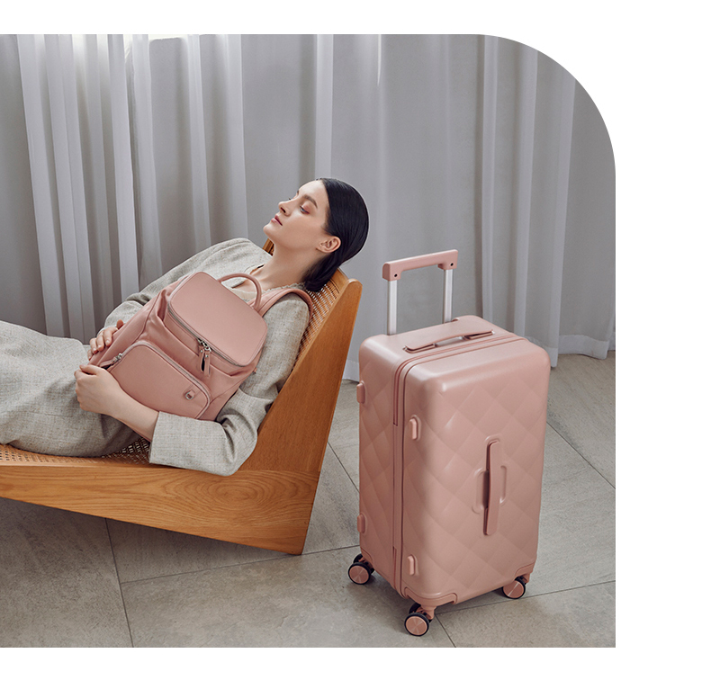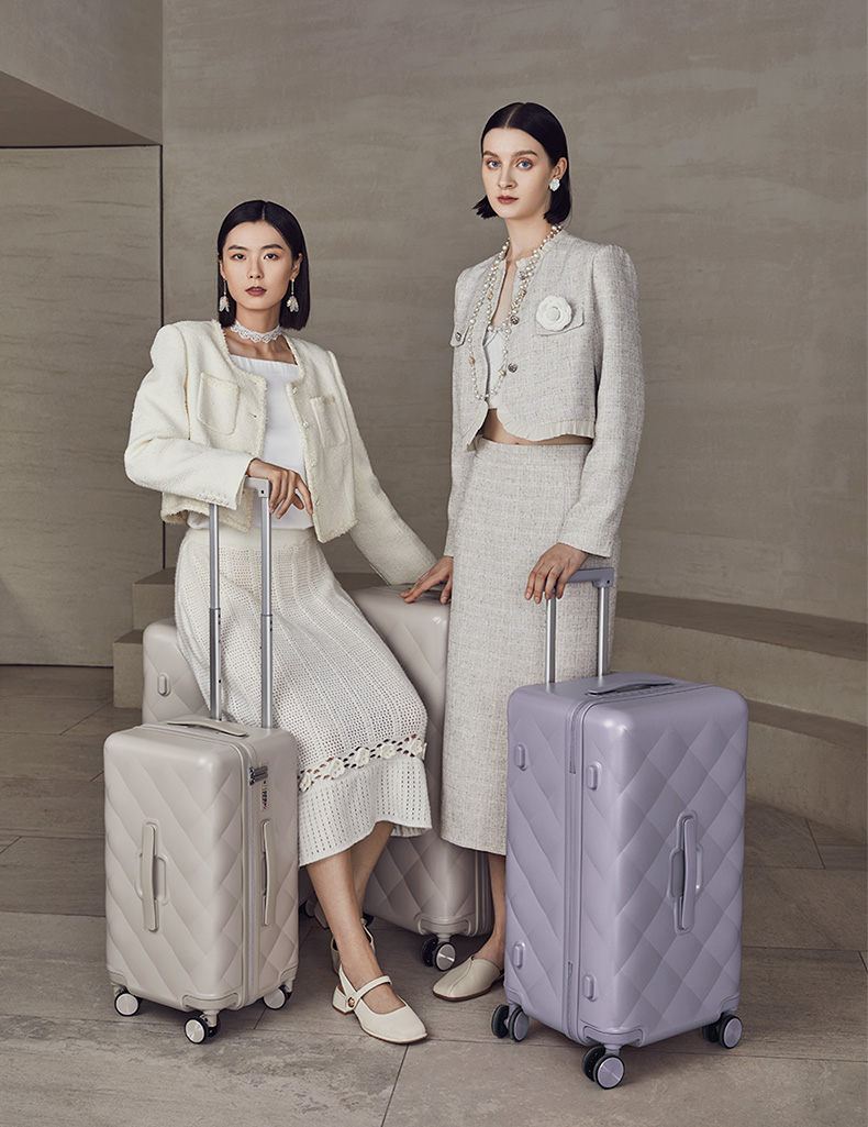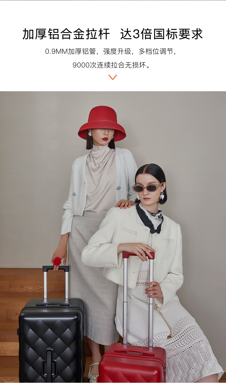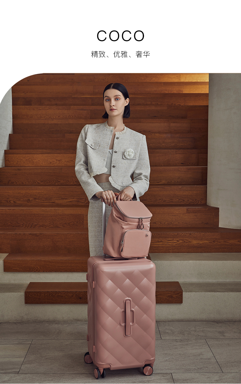 【红点奖设计师款】卡拉羊X锦囊小香风皮革纹纯PC超轻二八开魔方体行李箱CN8113(TX)