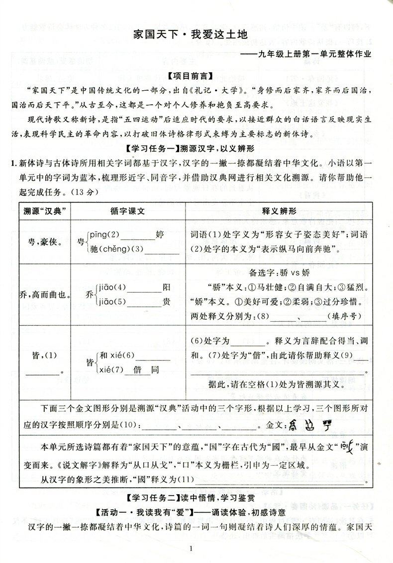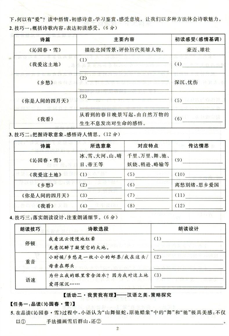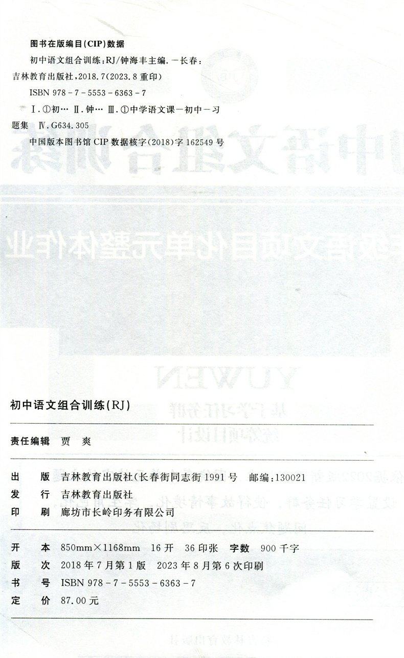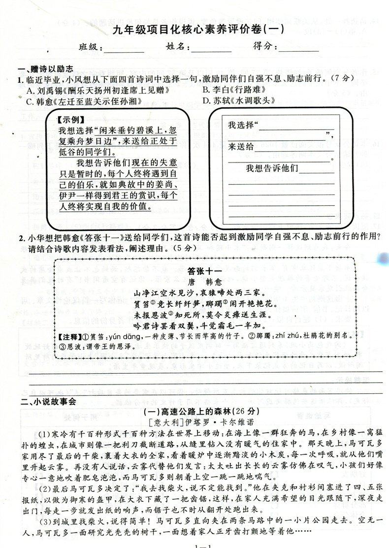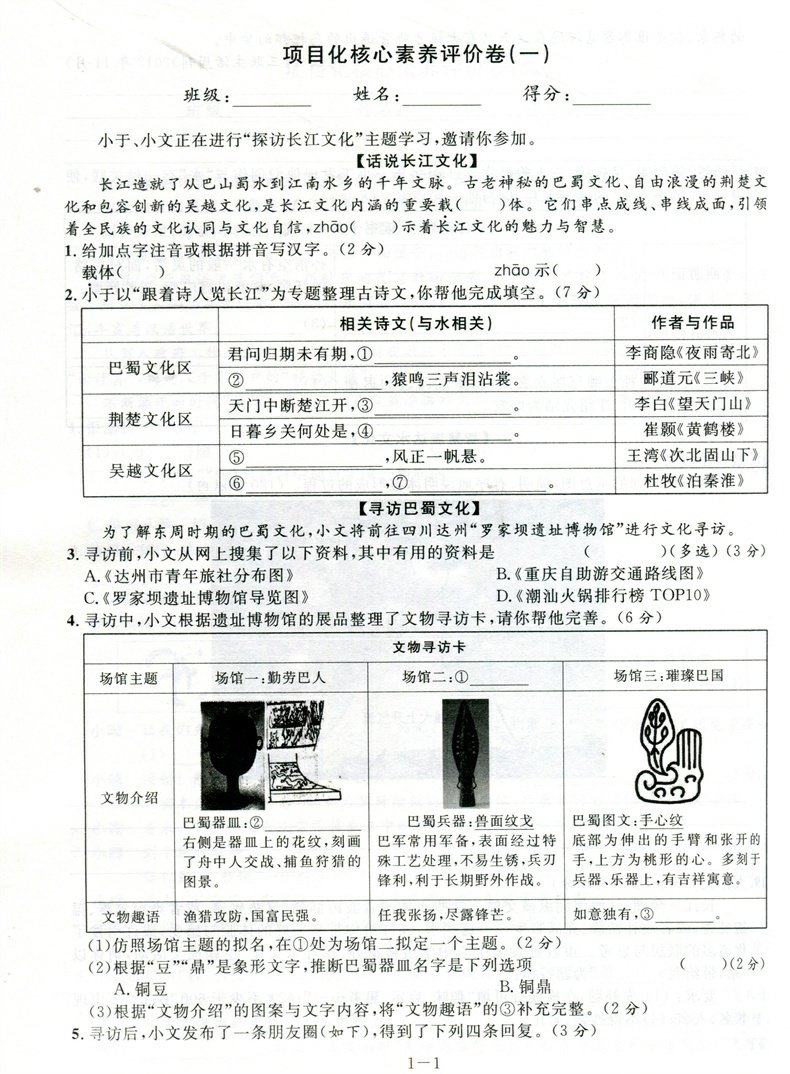 2024进步图书初中语文组合训练语文项目化单元整体作业核心素养评价卷
