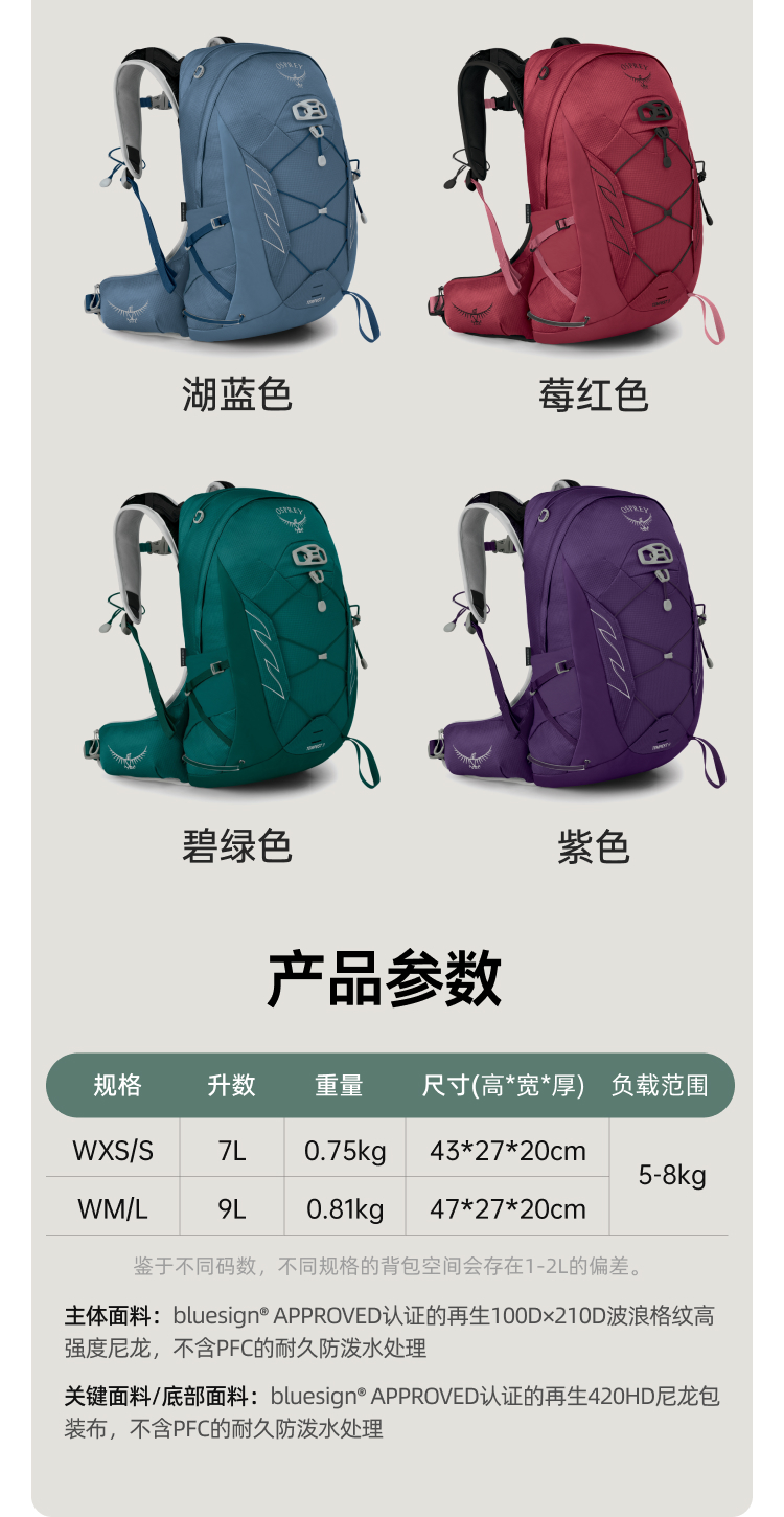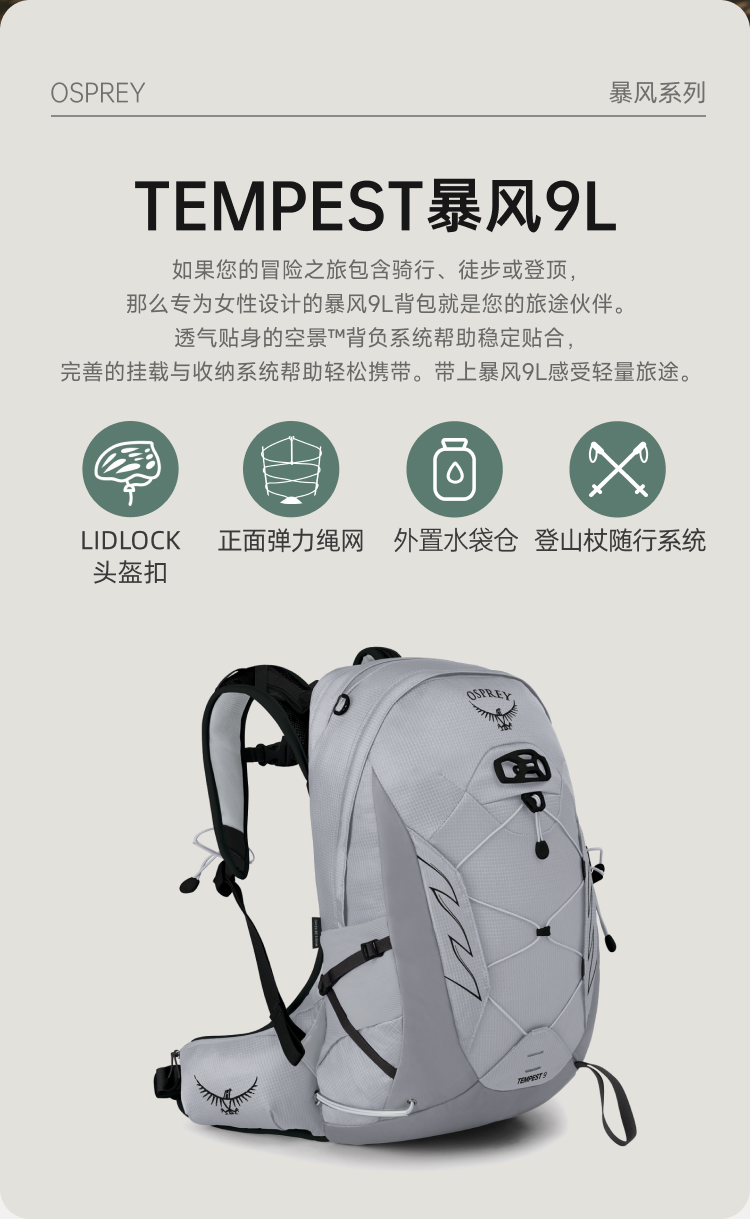 最新OSPREY Tempest 9升暴风双肩背包户外旅行越野徒步登山轻量包女性