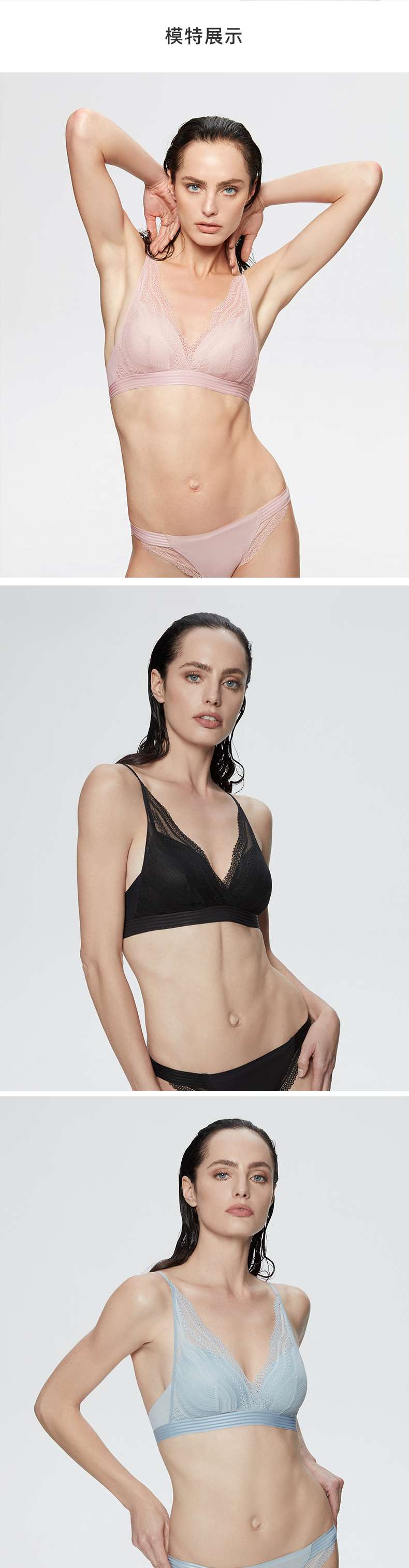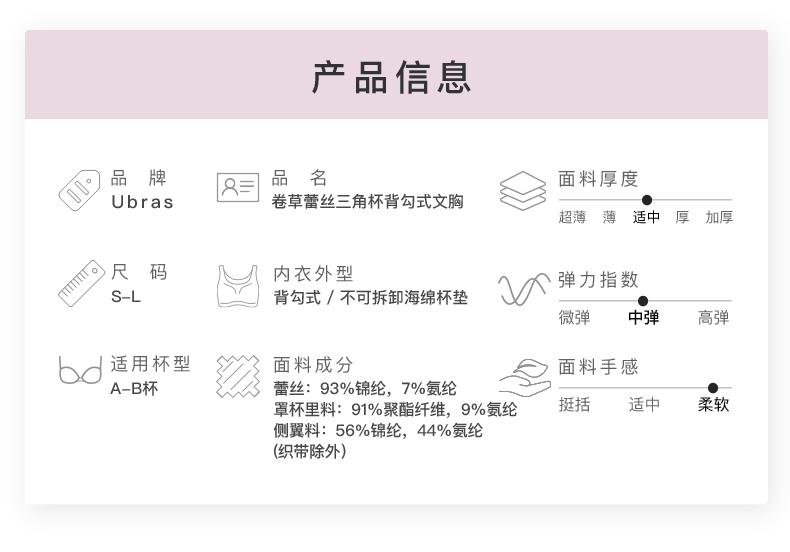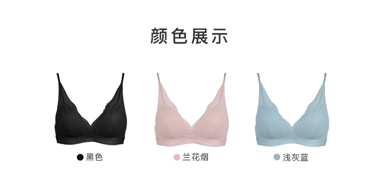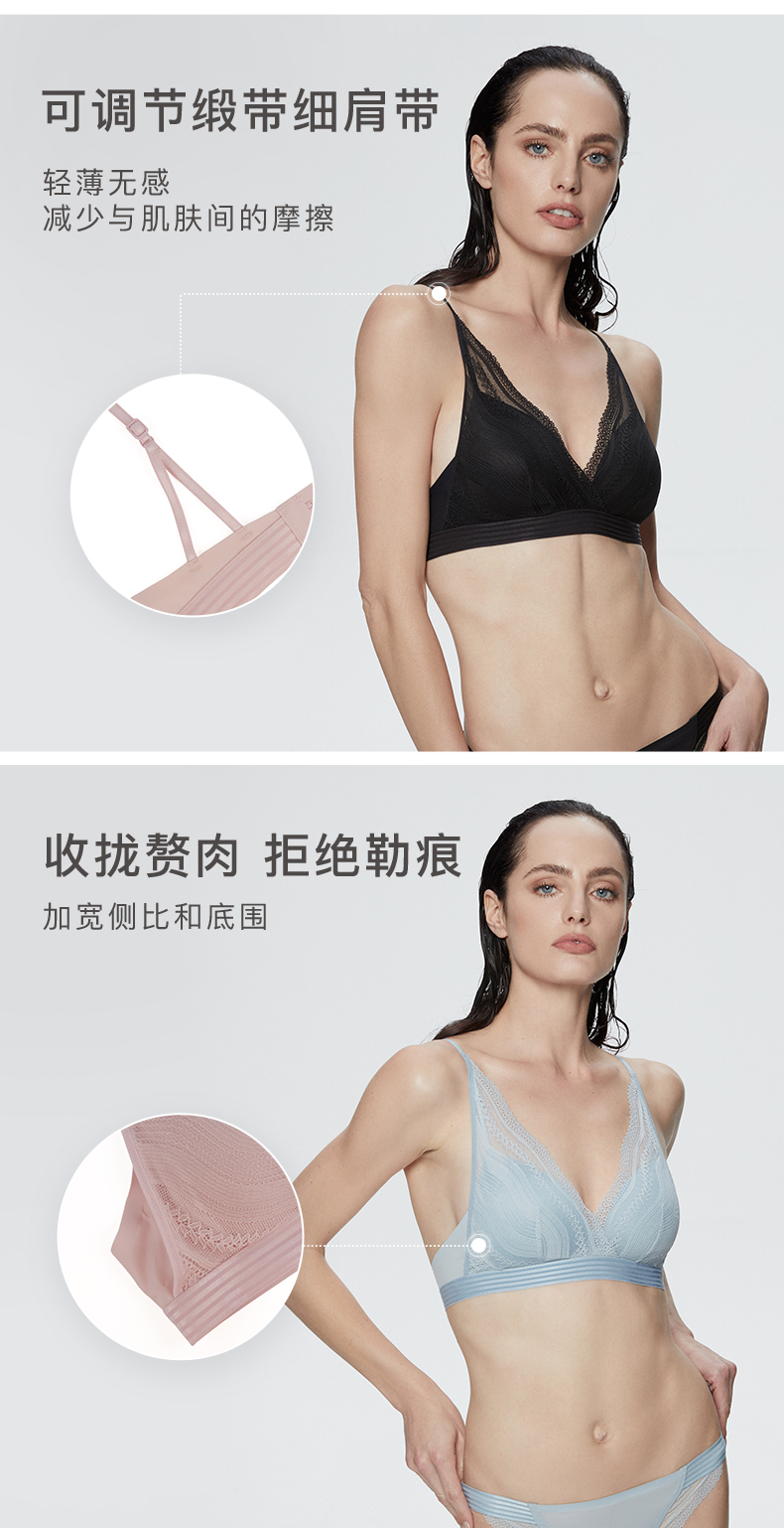 Ubras卷草纹蕾丝三角杯文胸无钢圈内衣 女 性感透气女士胸罩