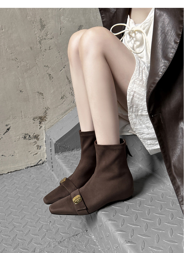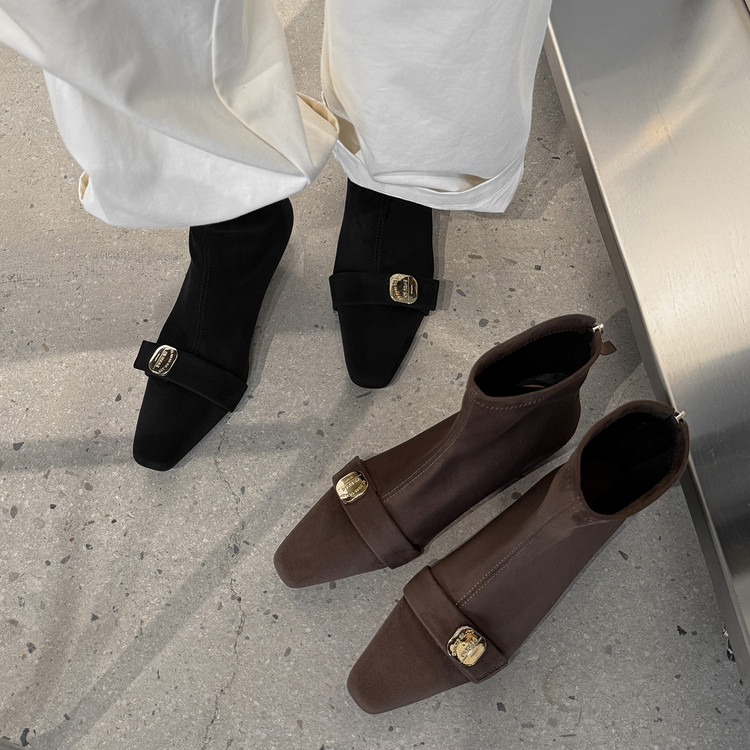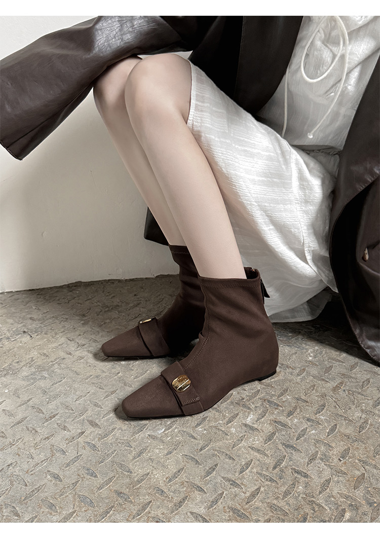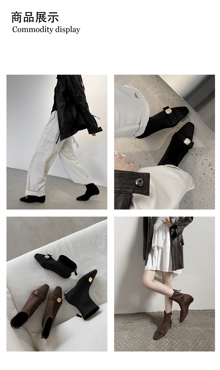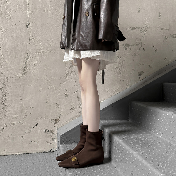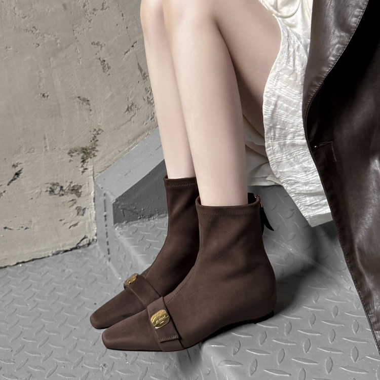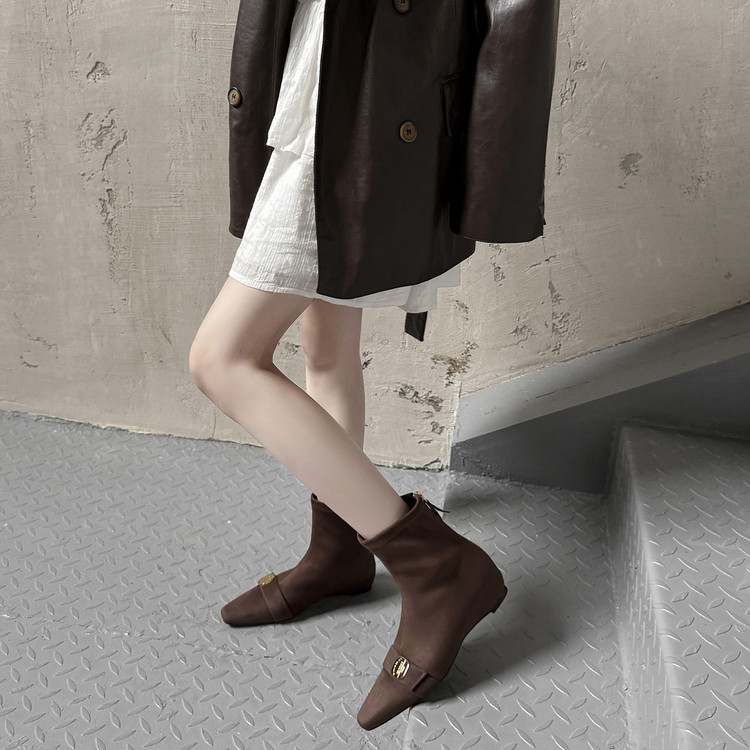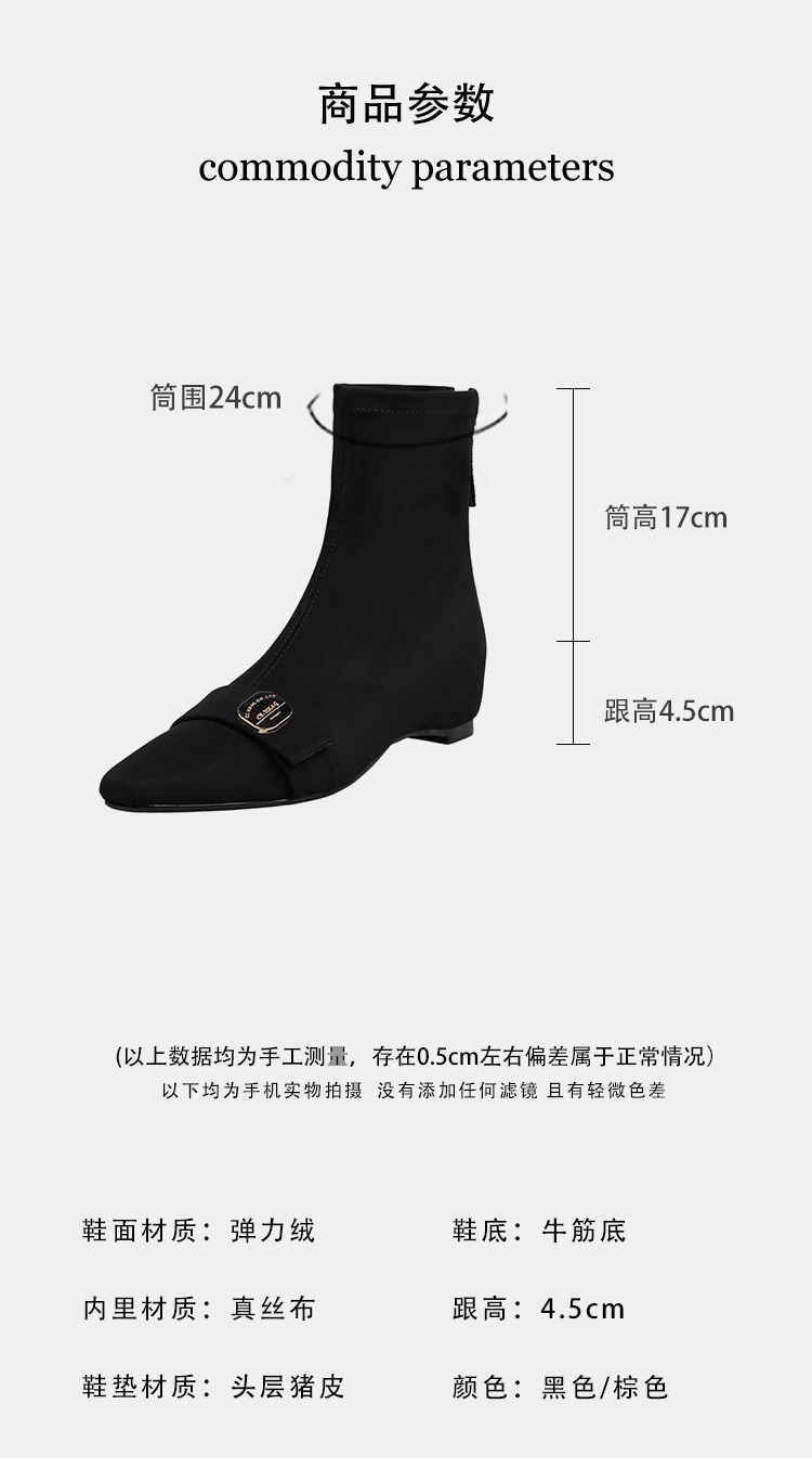 【预售5天】洋气巨好看的内增高小短靴女新款秋金属扣平跟瘦瘦马丁裸靴WC&M3676