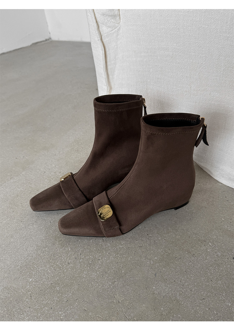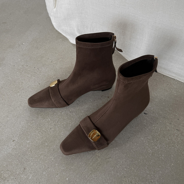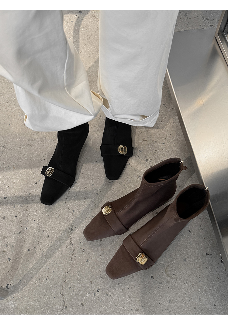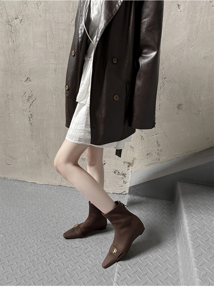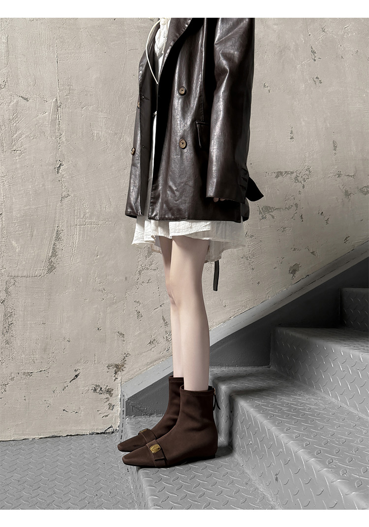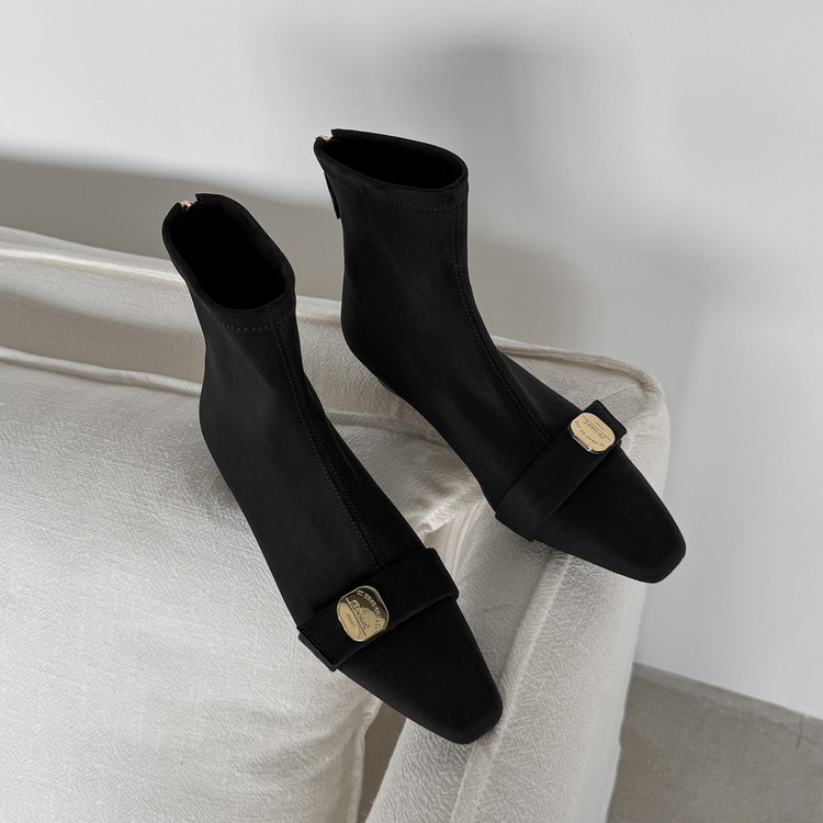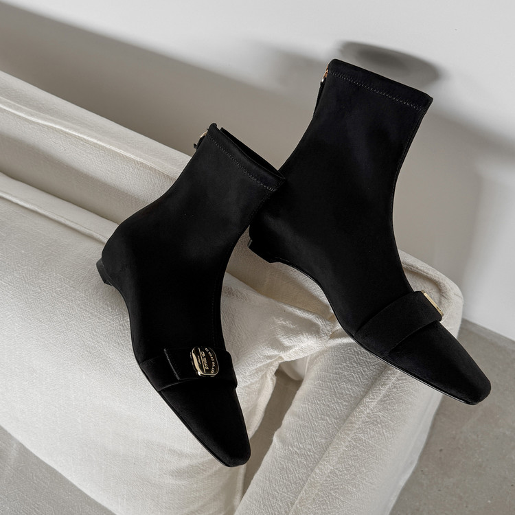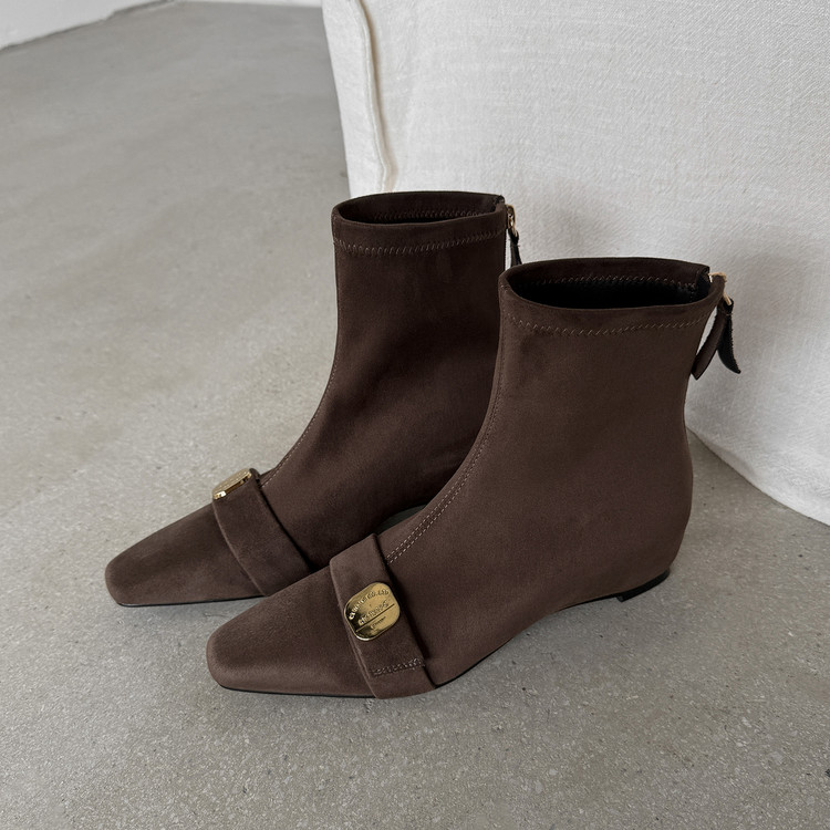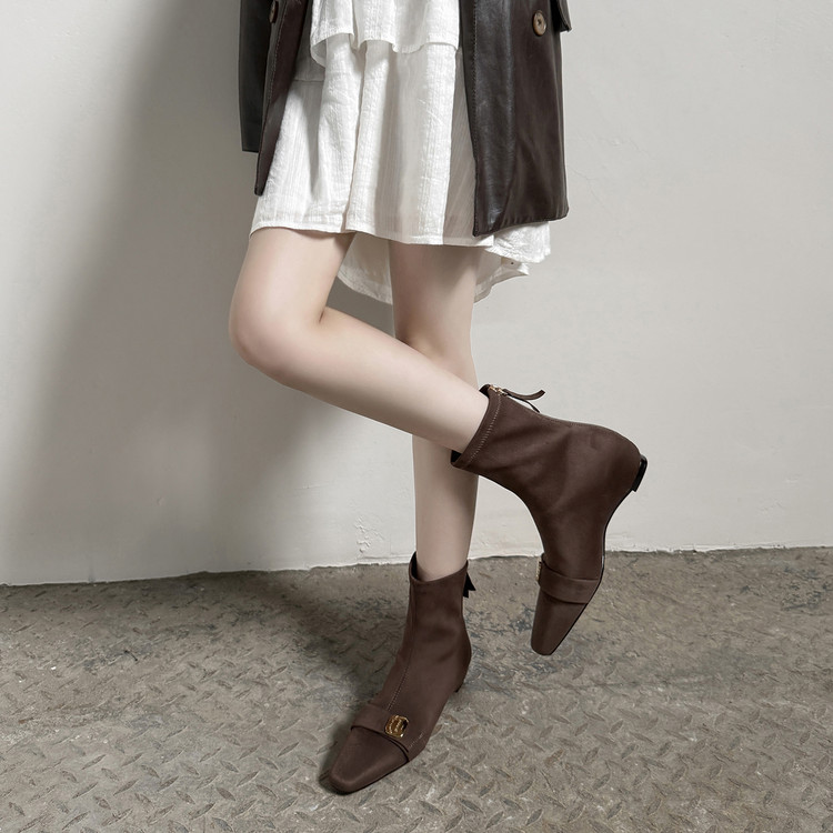 【预售5天】洋气巨好看的内增高小短靴女新款秋金属扣平跟瘦瘦马丁裸靴WC&M3676