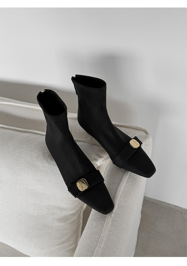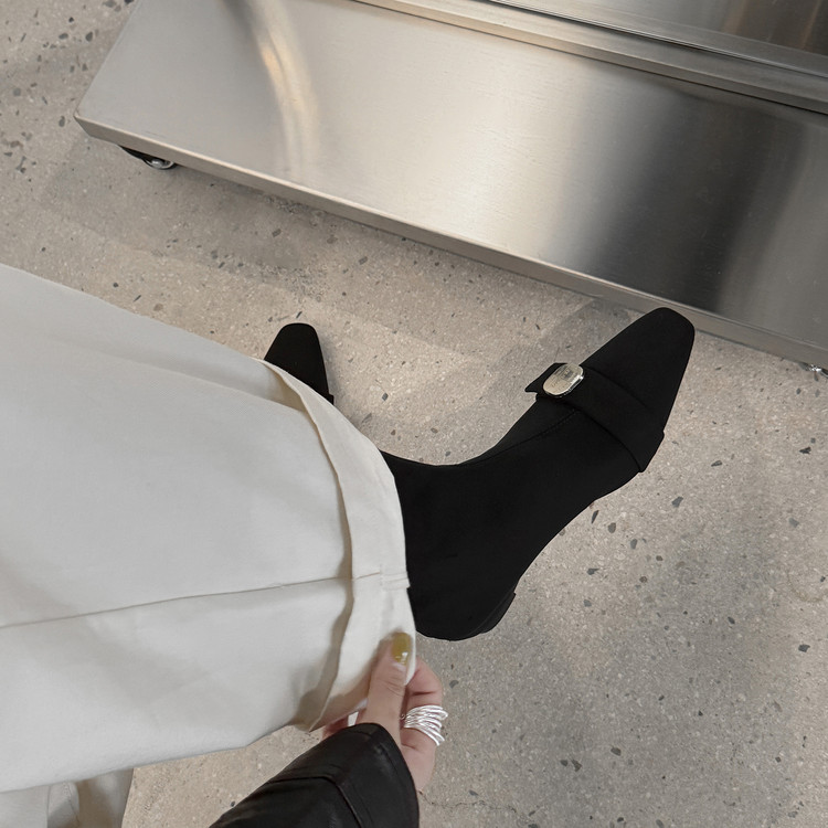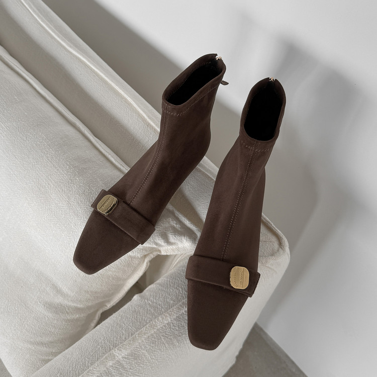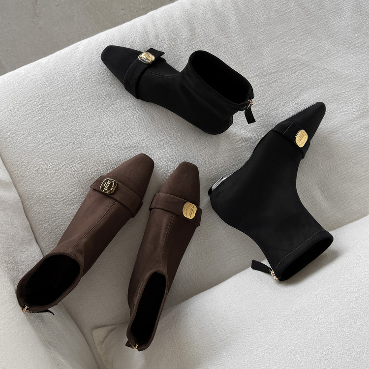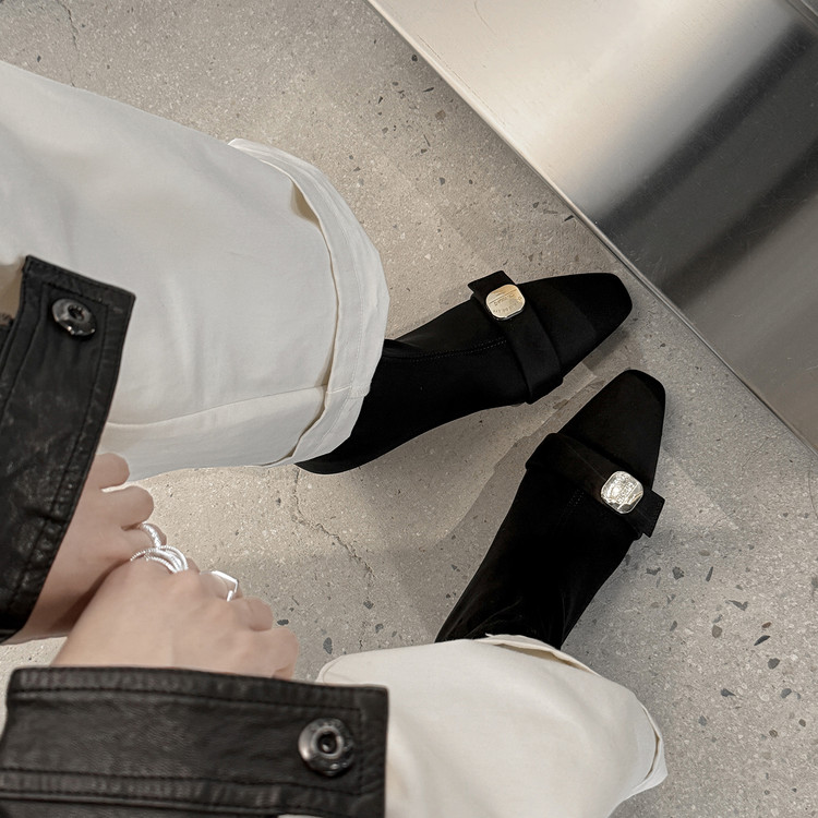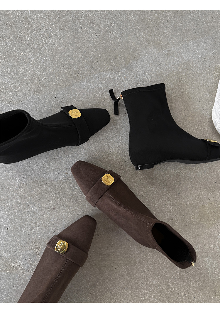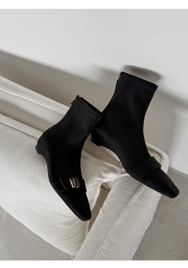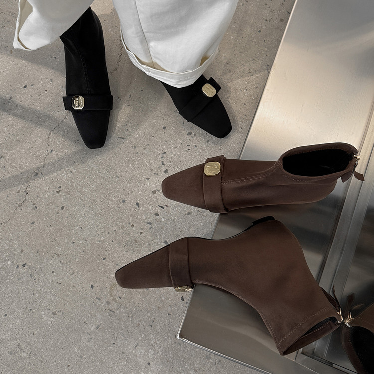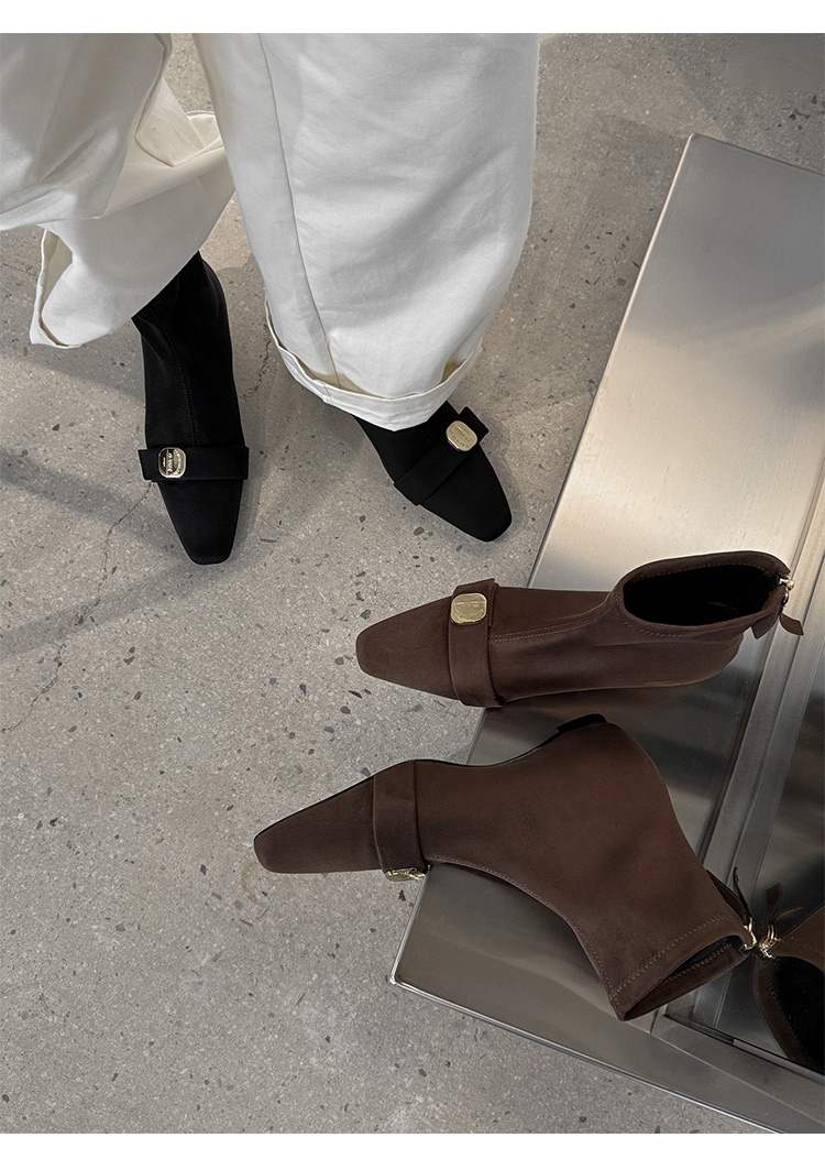 【预售5天】洋气巨好看的内增高小短靴女新款秋金属扣平跟瘦瘦马丁裸靴WC&M3676