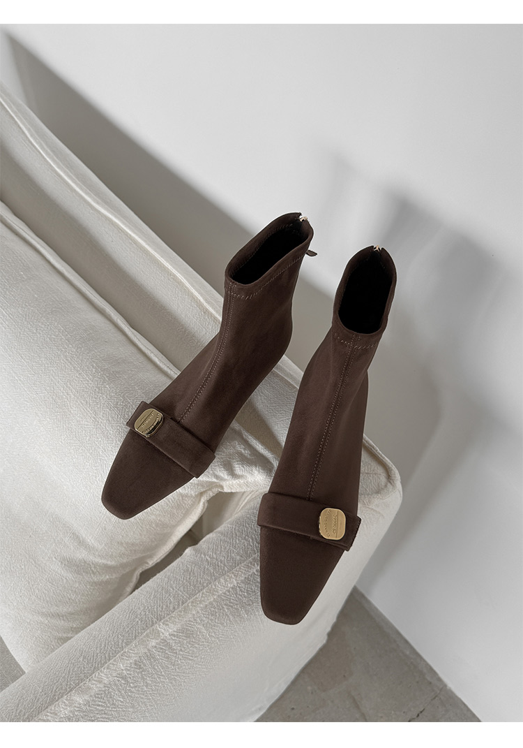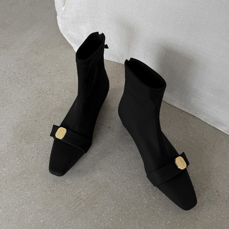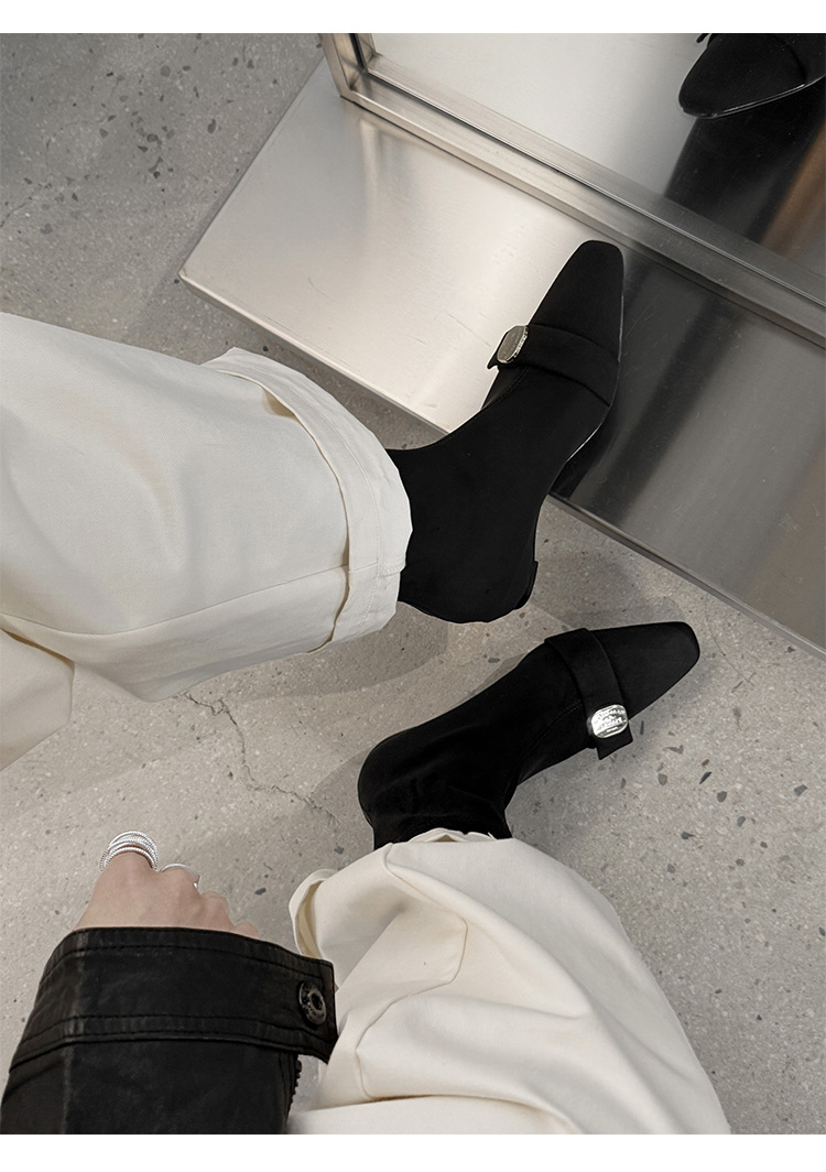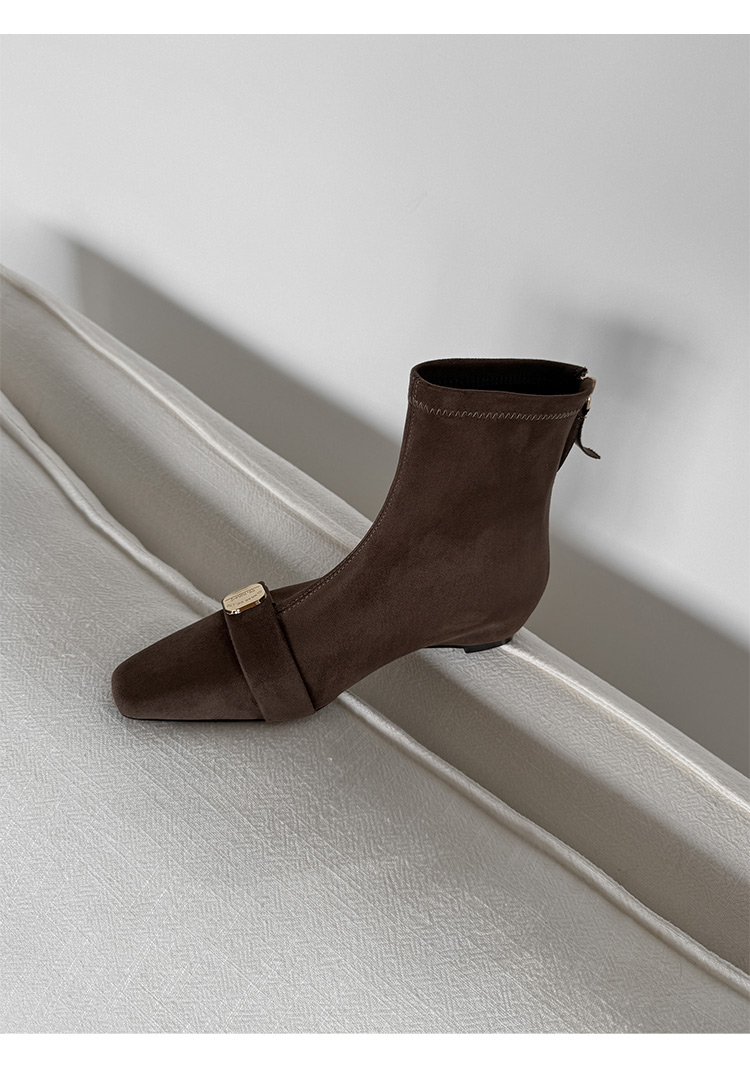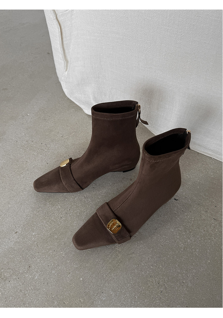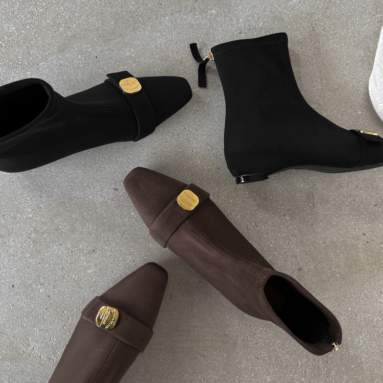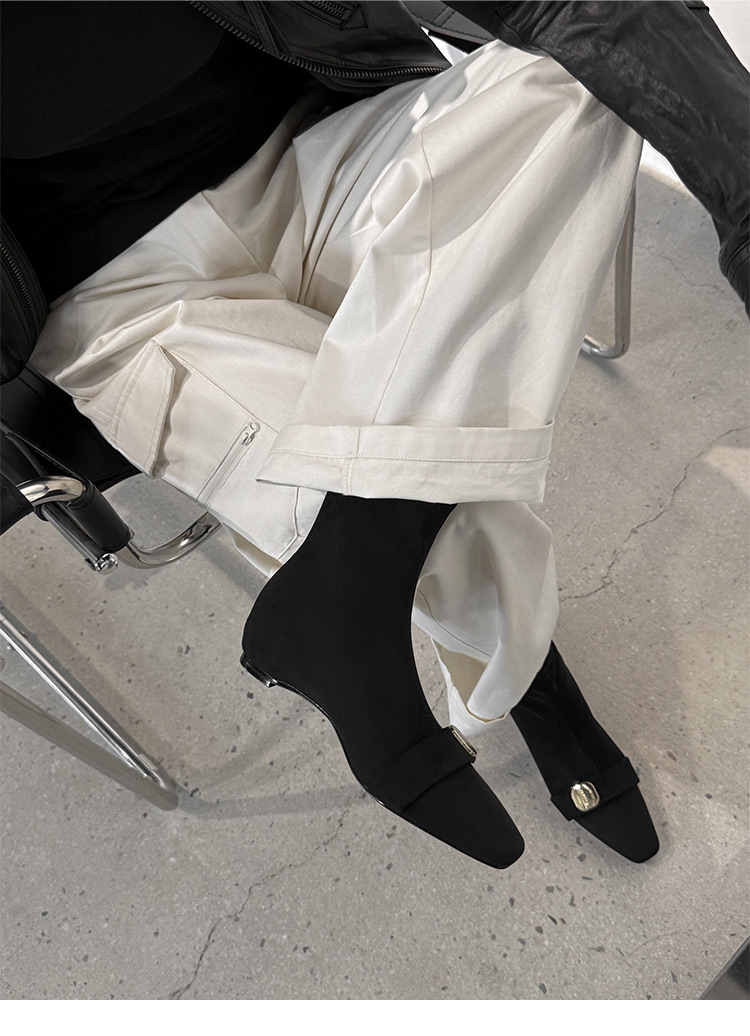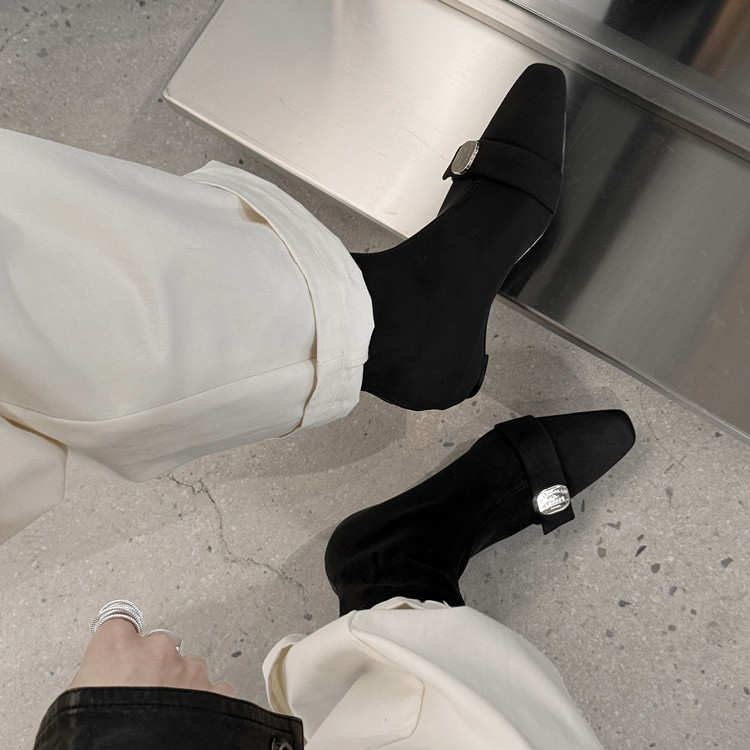 【预售5天】洋气巨好看的内增高小短靴女新款秋金属扣平跟瘦瘦马丁裸靴WC&M3676