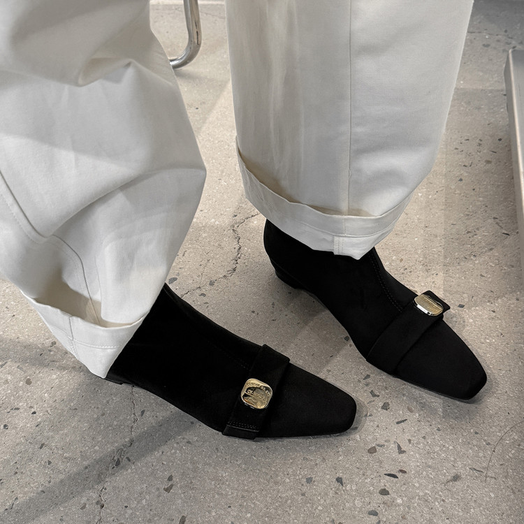 【预售5天】法式优雅浪漫花朵羊皮小方头粗中跟全真皮浅口单鞋女NJMK&K932