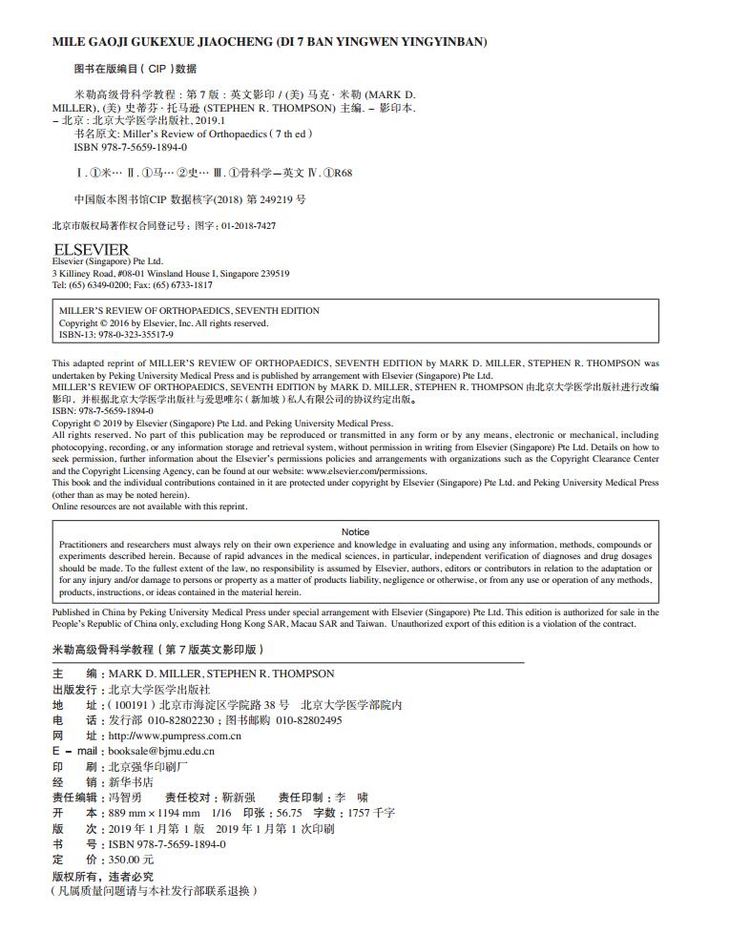 (英文)米勒高级骨科学教程(第7版)(原版影印) MARK MILLER 北医社