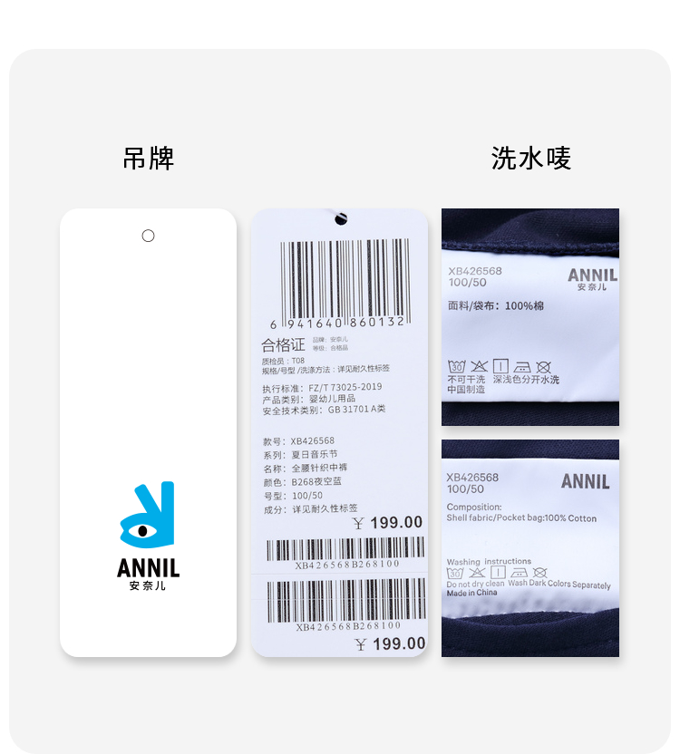 男童全棉休闲中裤针织中裤夏季新款安奈儿童装实体店同款XB426568