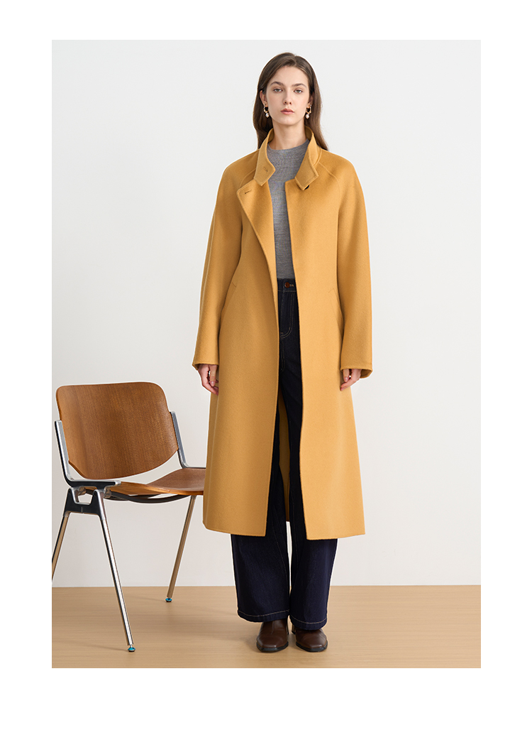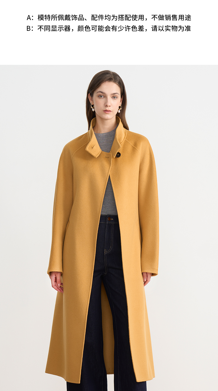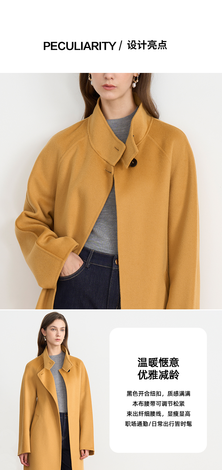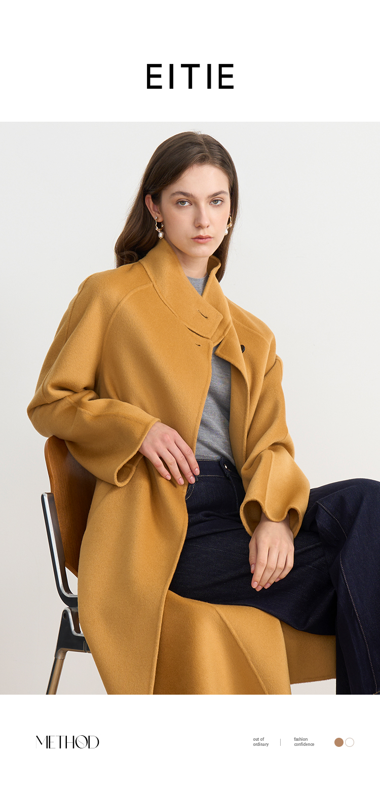 EITIE爱特爱冬季新款气质立领通勤收腰显瘦羊毛羊绒毛呢大衣8014714