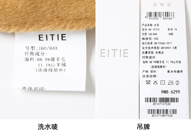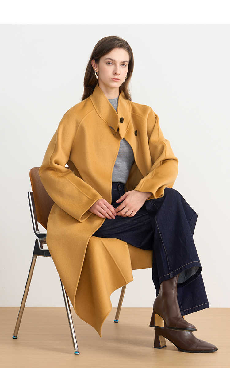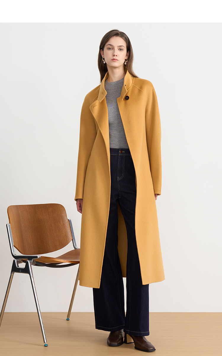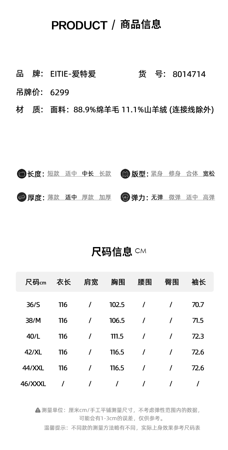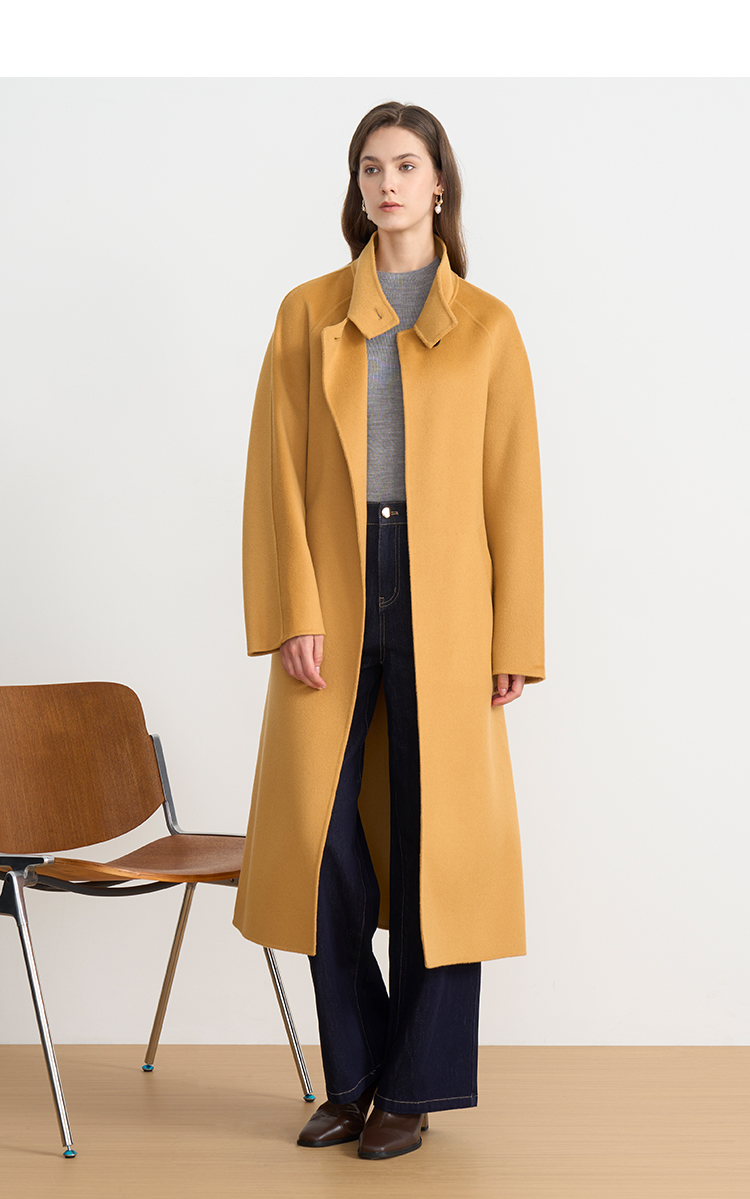 EITIE爱特爱冬季新款气质立领通勤收腰显瘦羊毛羊绒毛呢大衣8014714