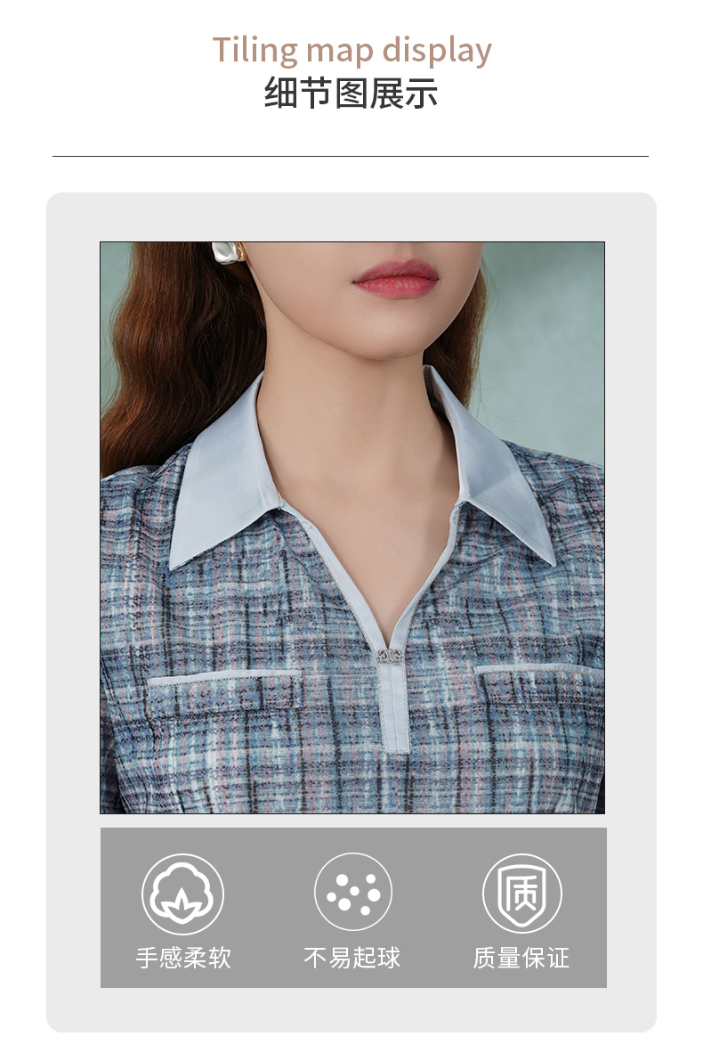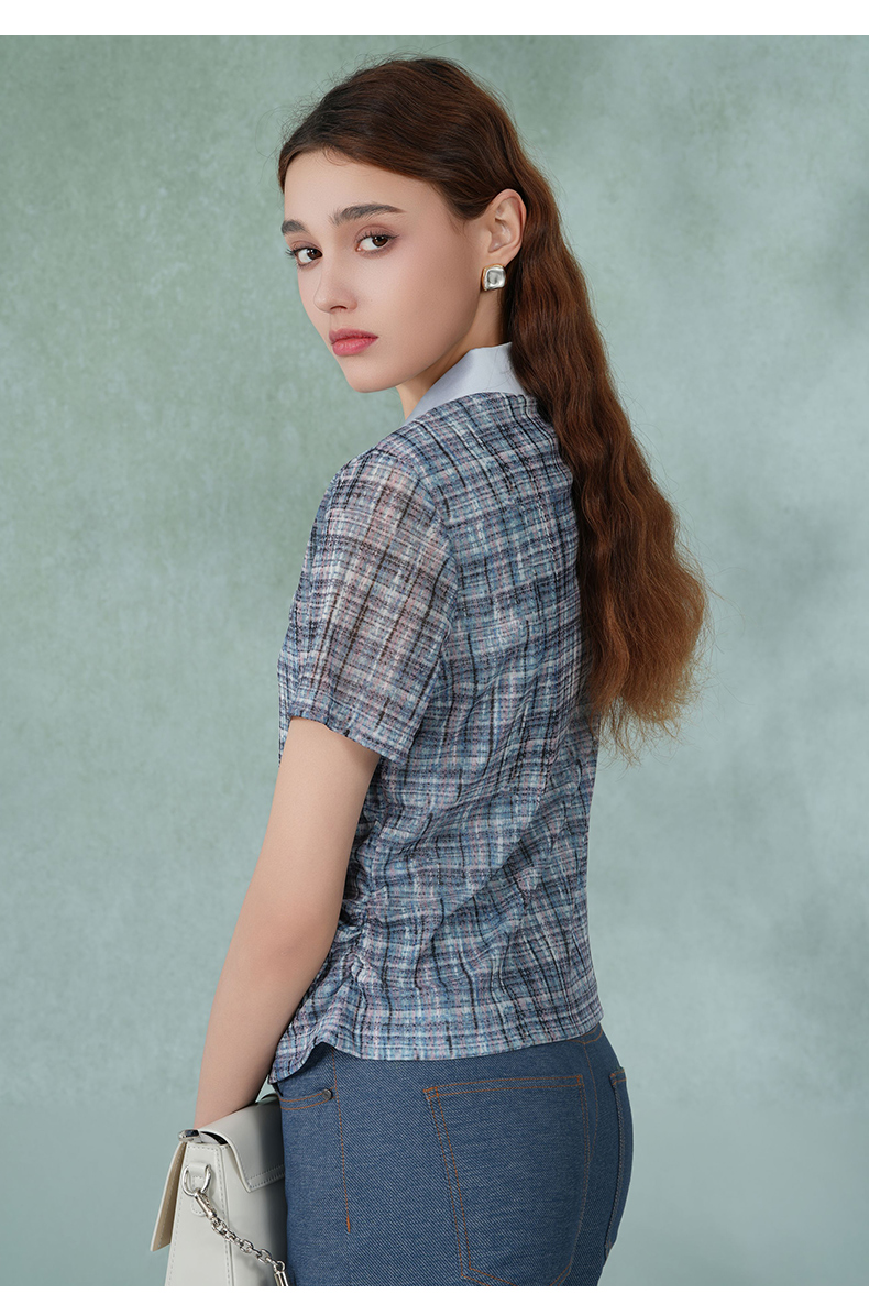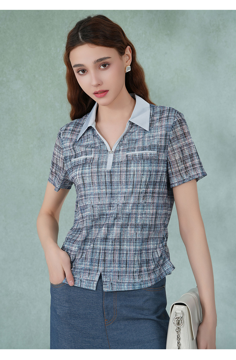 乔万尼新款衬衫女格子短袖衬衫蓝色衬衫女EM2C748