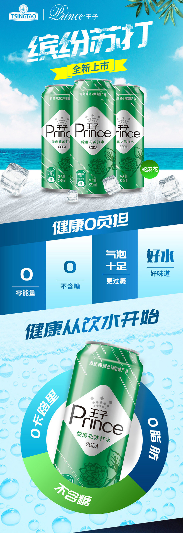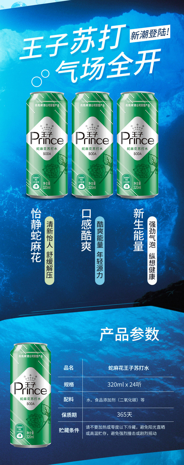 (最早2021年3月4日到期)青岛啤酒旗下王子品牌苏打汽水蛇麻花风味320ml*24听(新老包装混发)