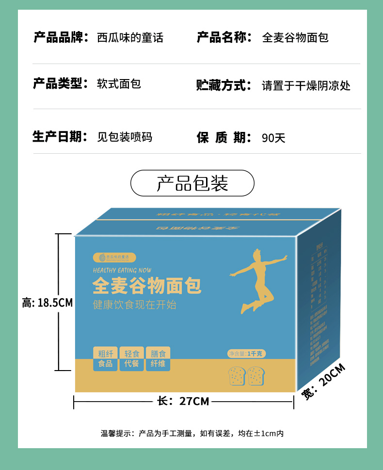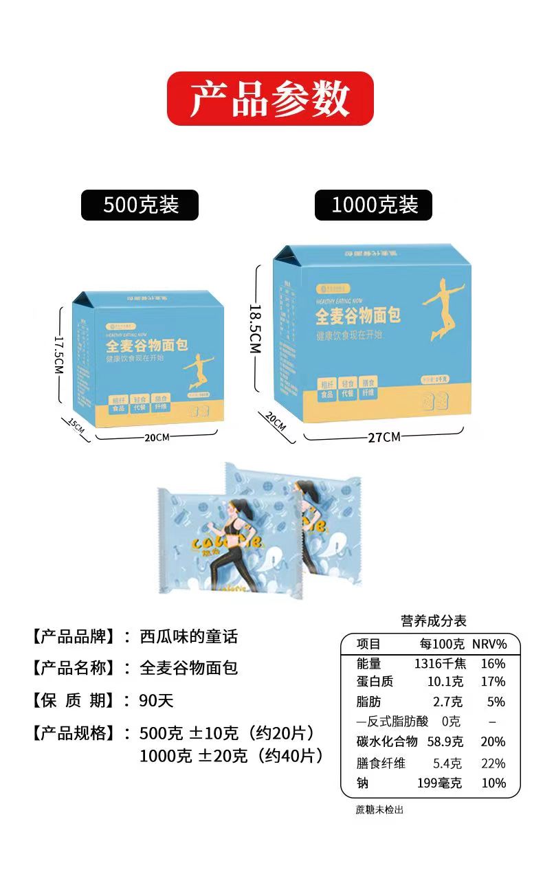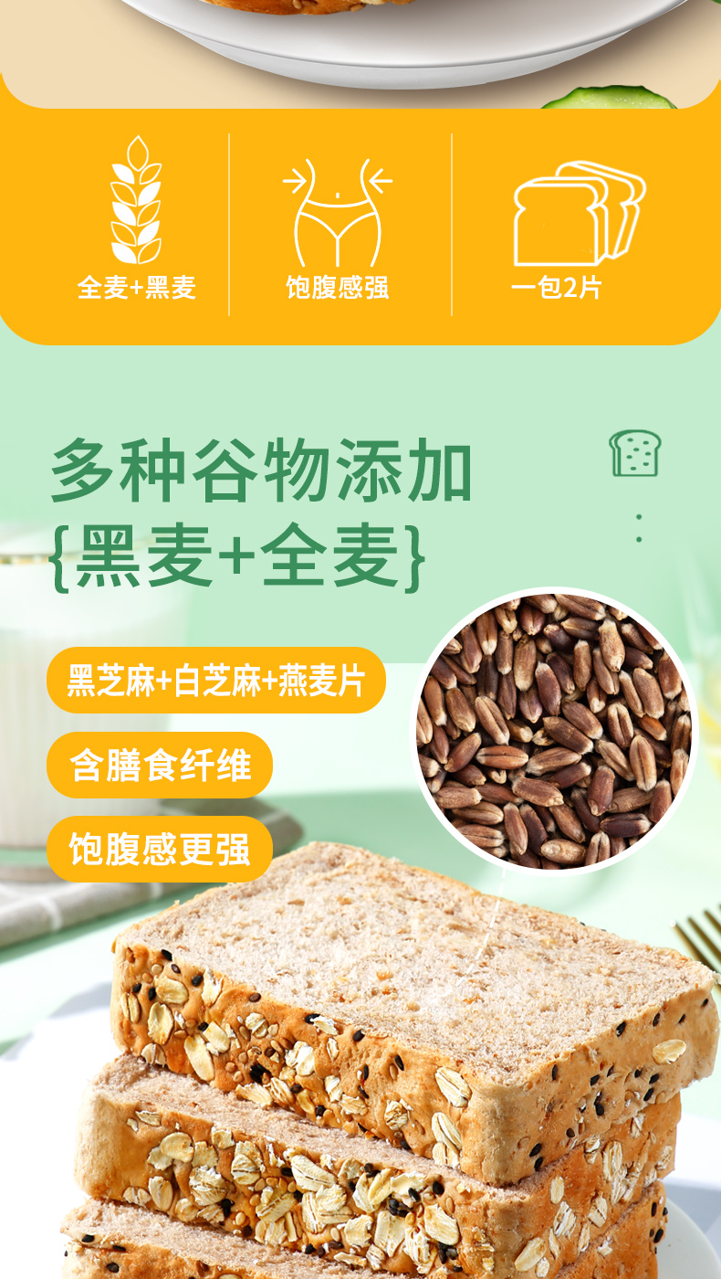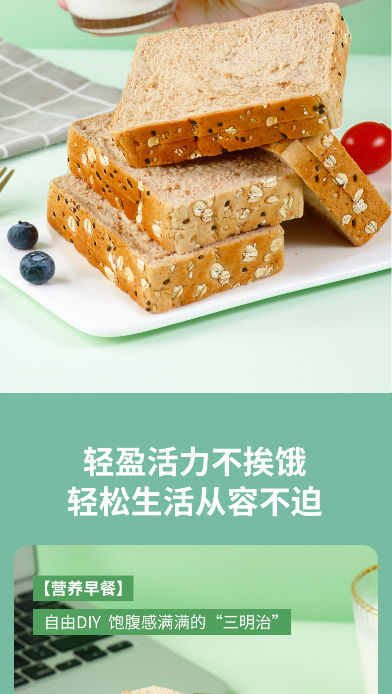 【健康早餐】全麦谷物吐司面包 早餐整箱无糖精吐司粗粮代餐食品