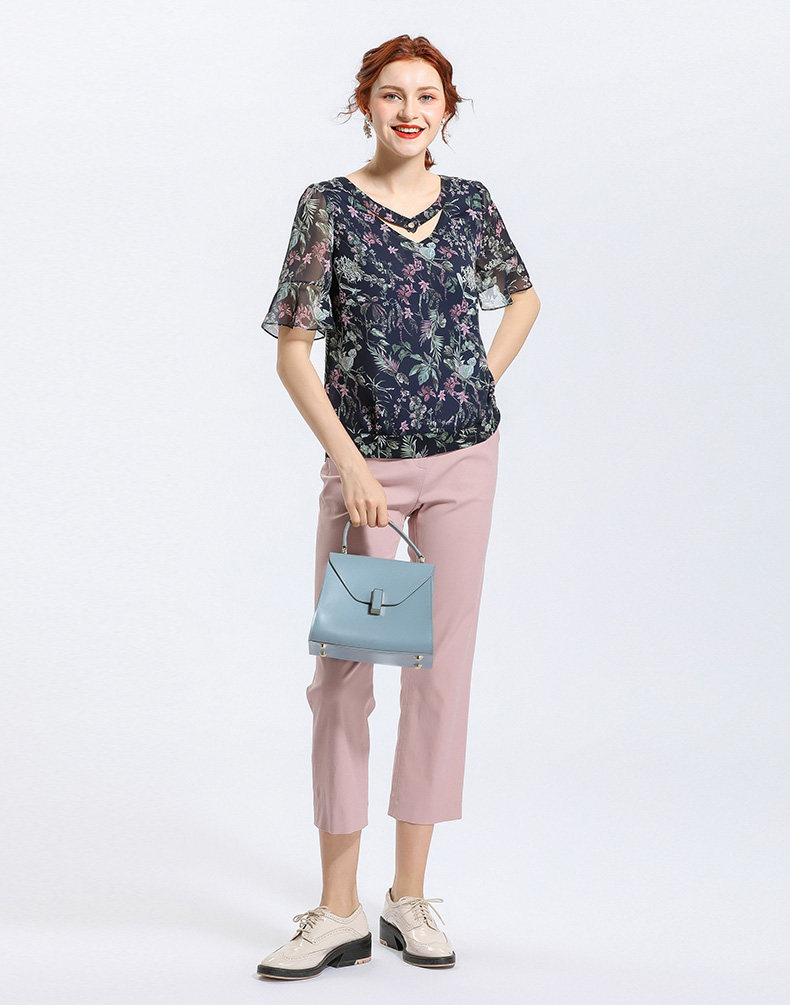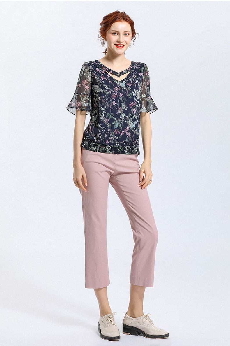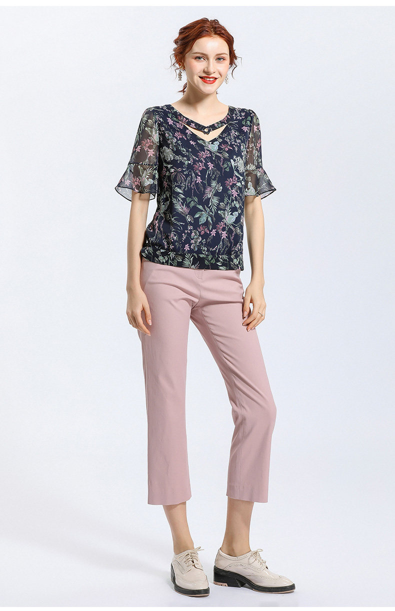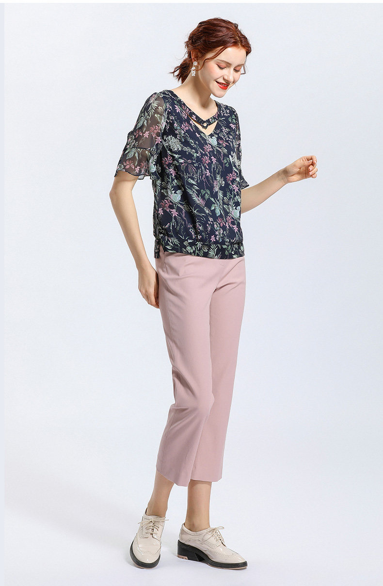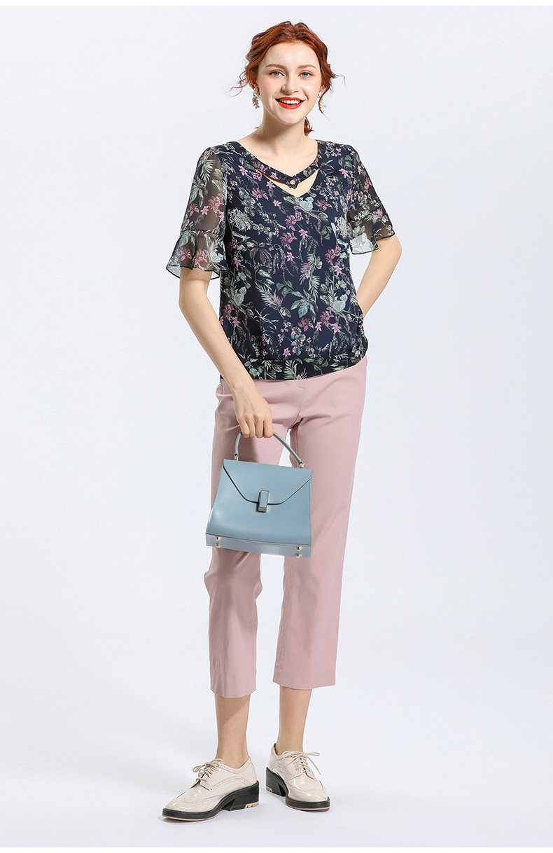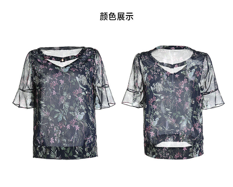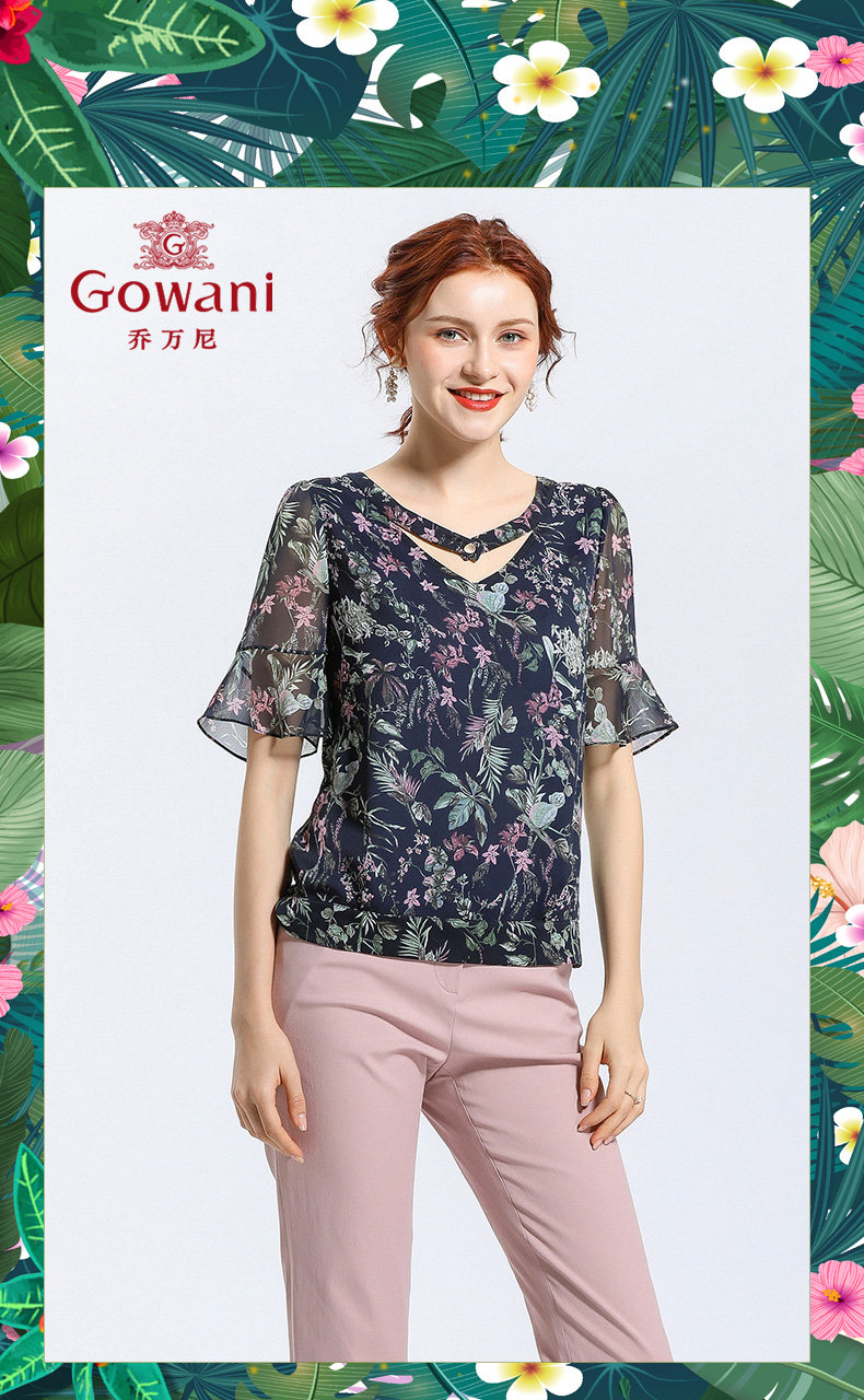 乔万尼夏季上衣设计感桑蚕丝时尚仙气印花短袖真丝衬衫女EN2C556