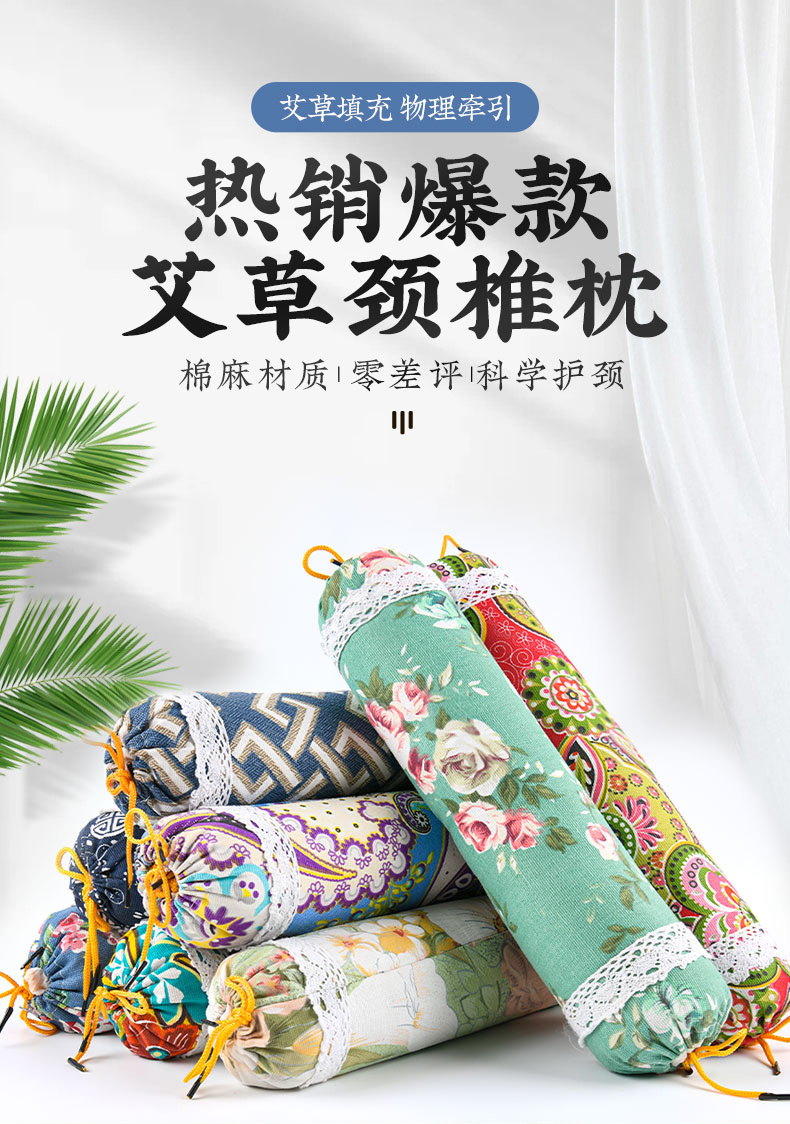 艾草颈椎枕头艾远堂糖果型颈椎枕头单人枕芯圆柱枕护颈枕