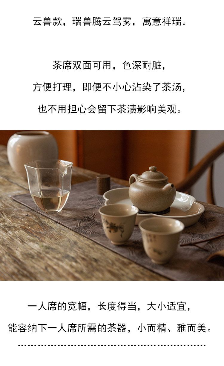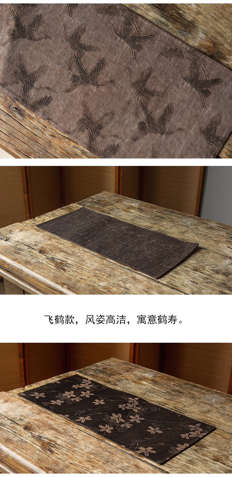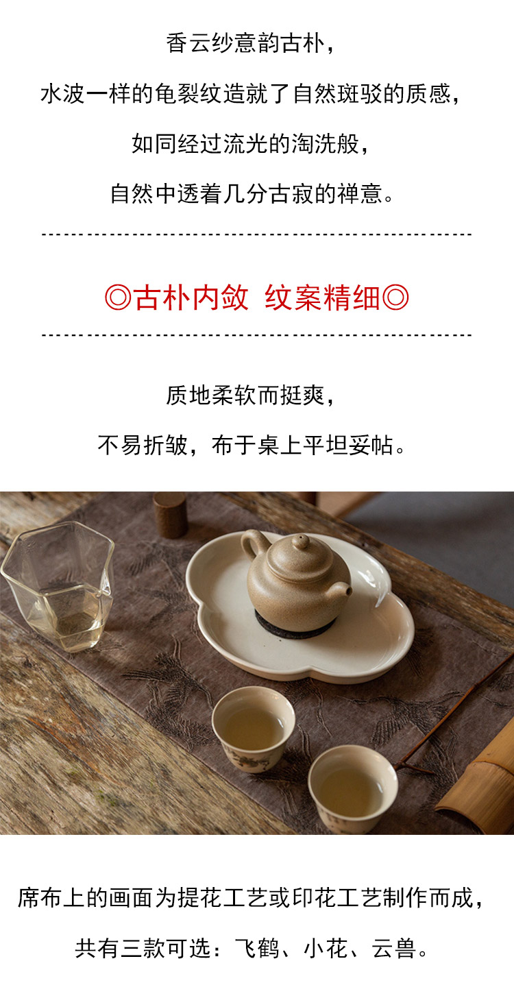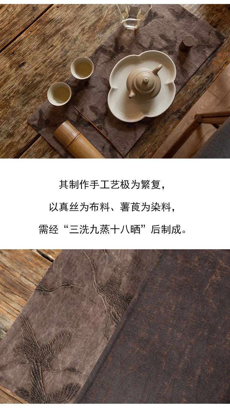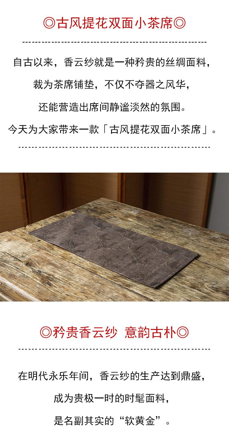 茶香记 手工香云纱 古风提花双面小茶席 意韵古朴 纹案精细 耐脏易打理