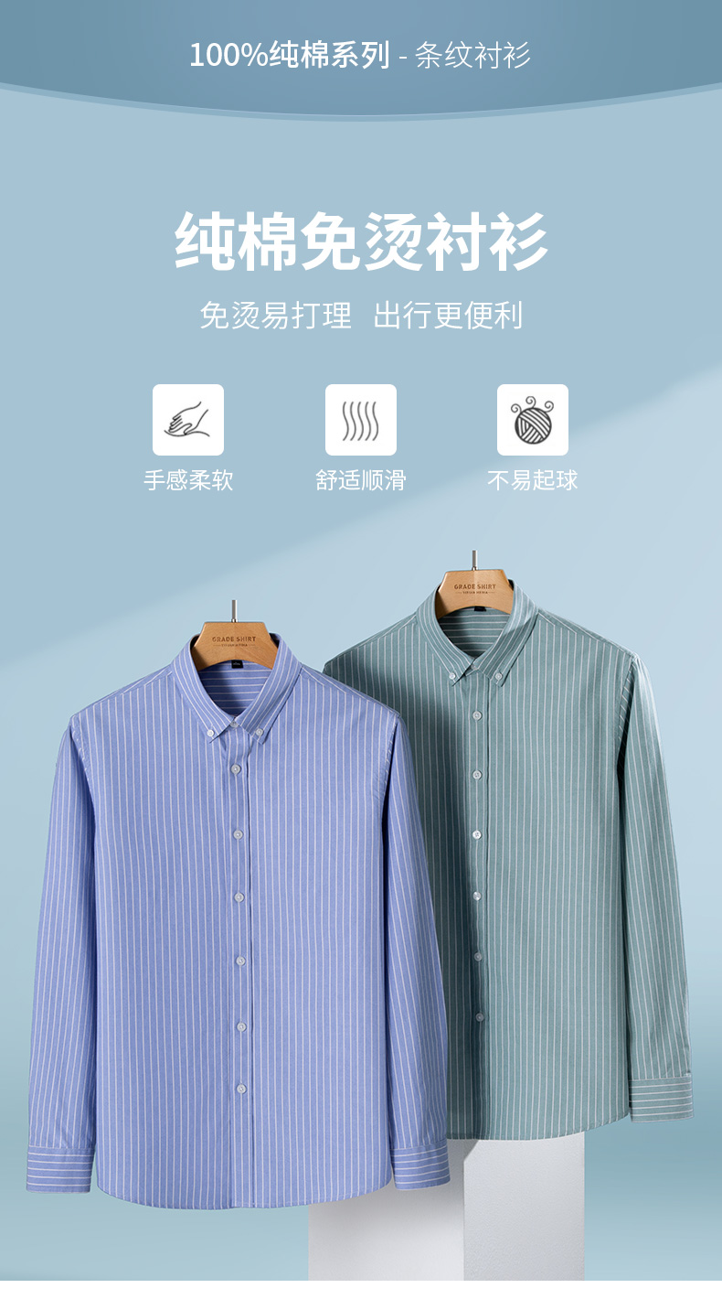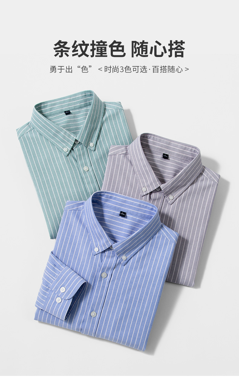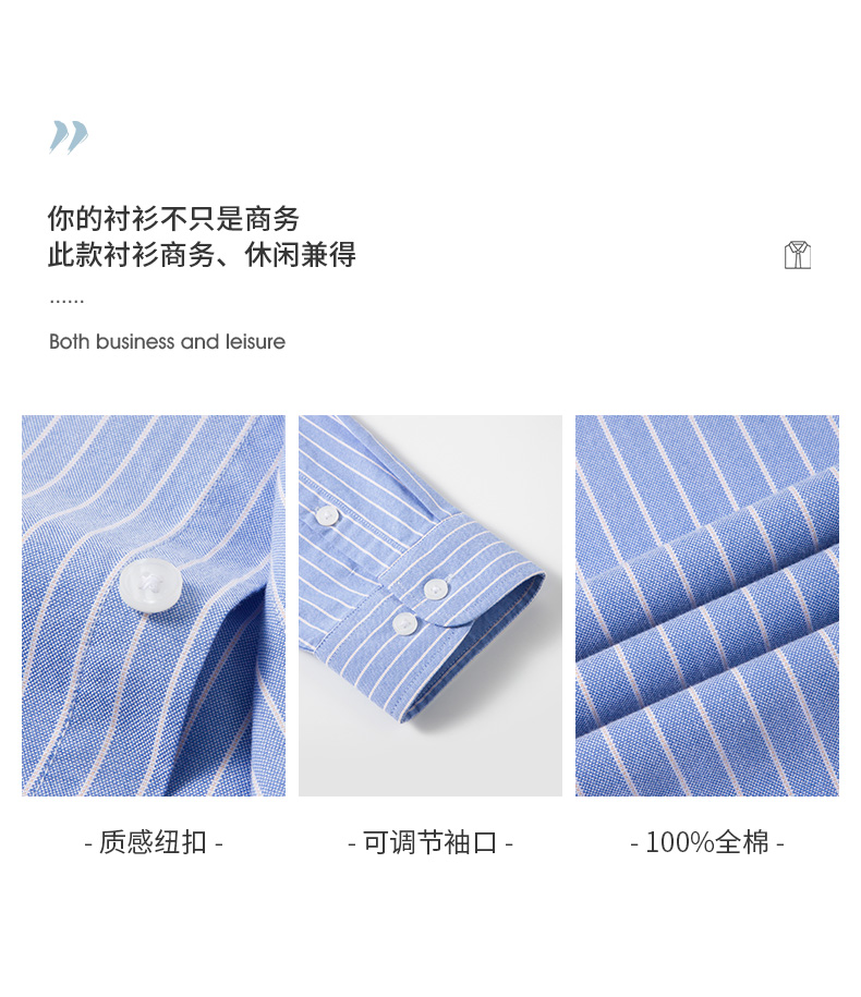 【100棉】罗蒙男士经典条纹衬衫时尚舒适百搭长袖衬衫通勤职业上班男衬衣