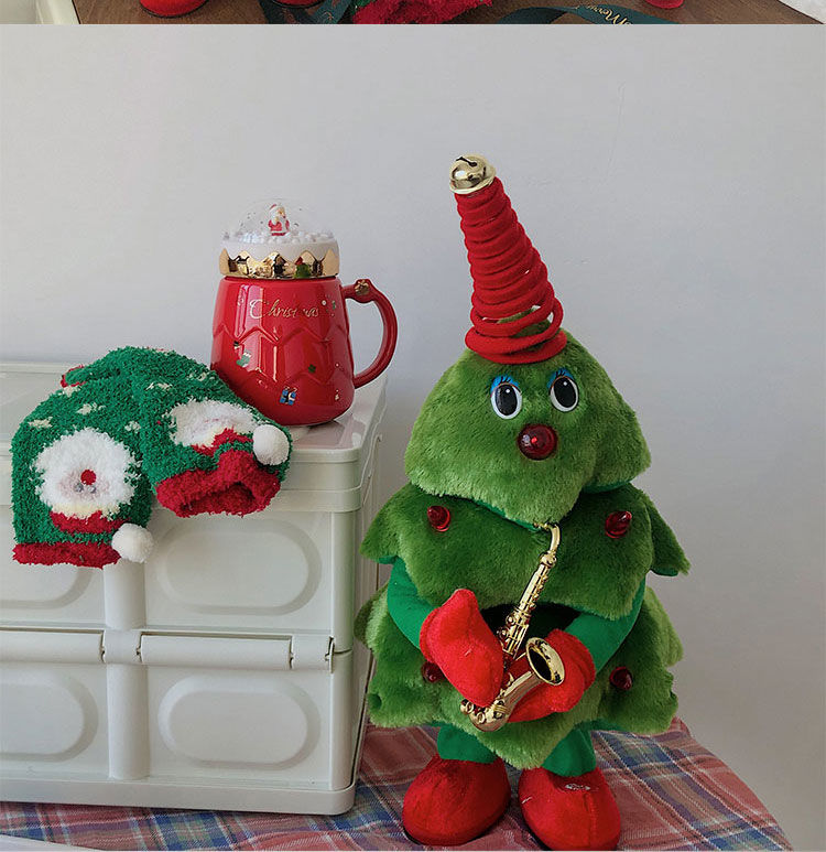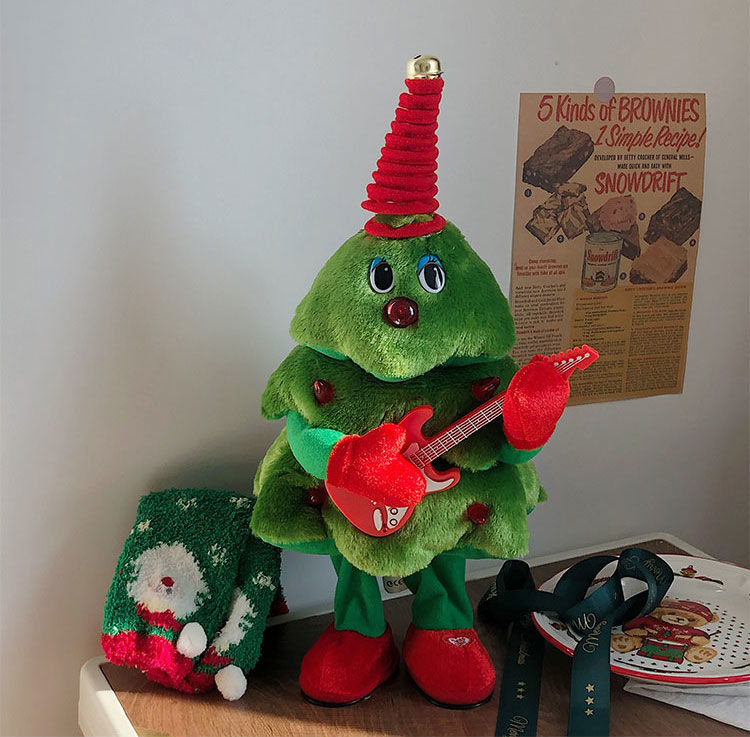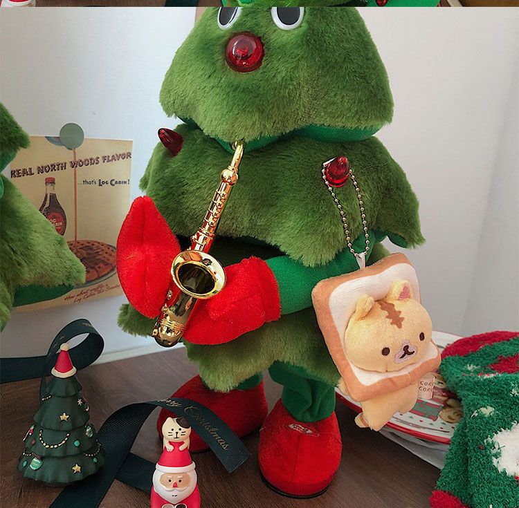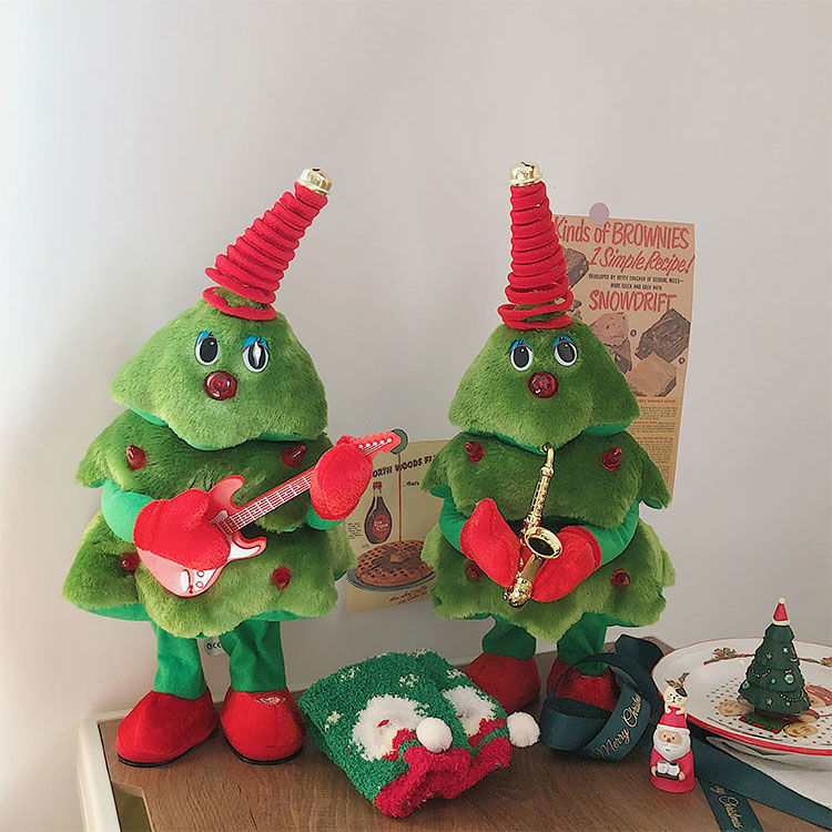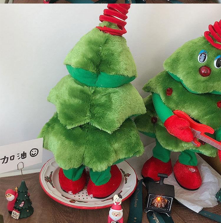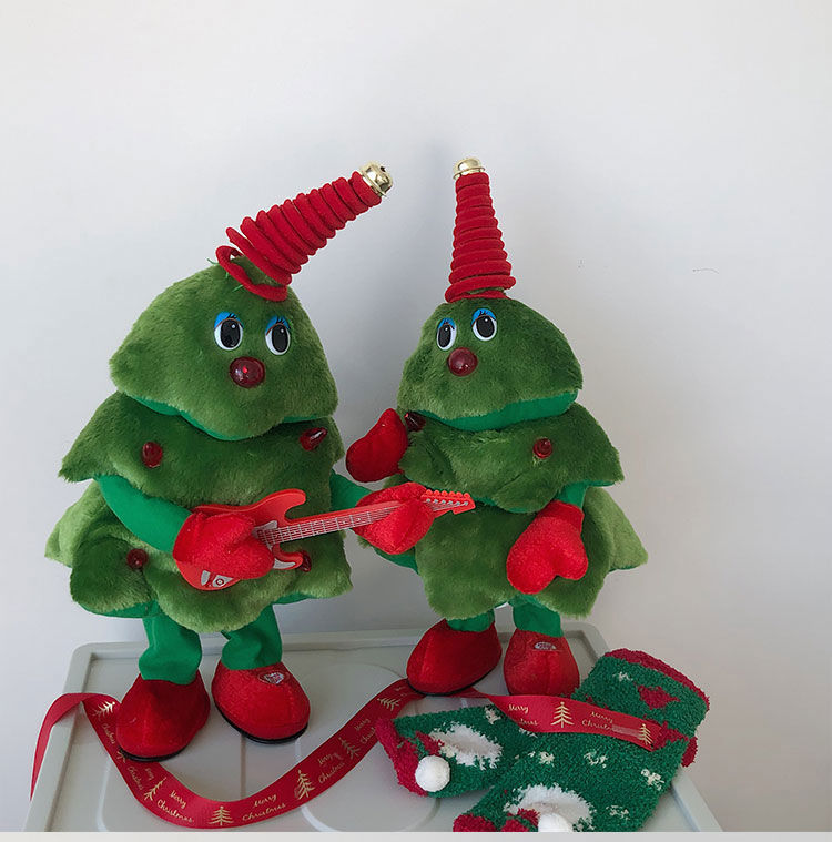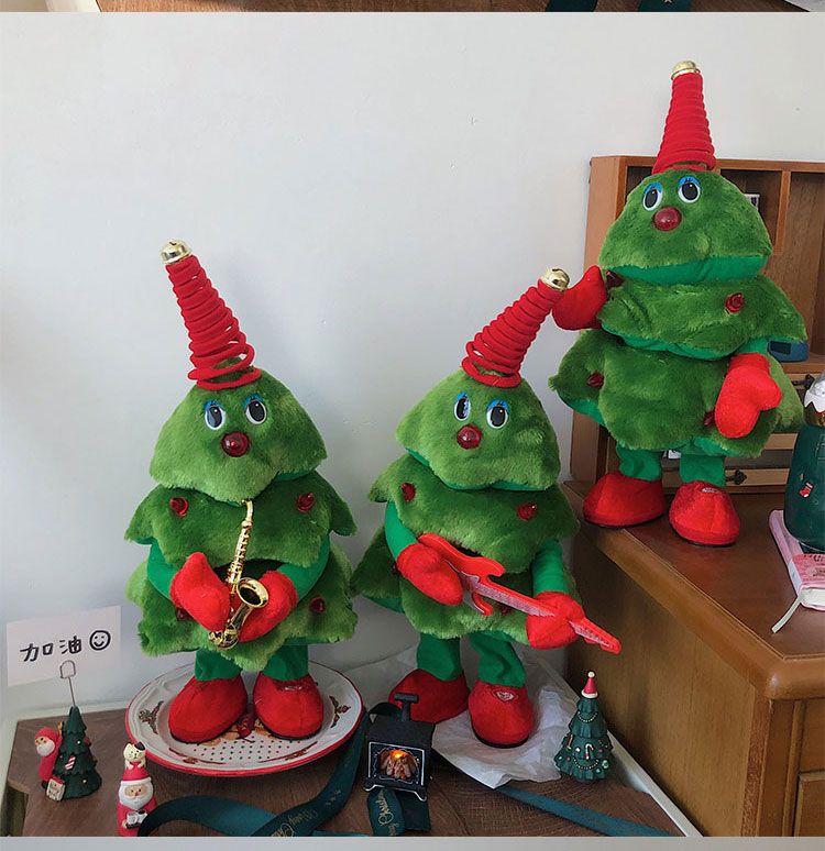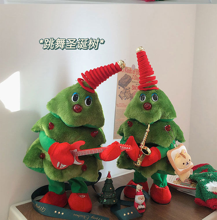 【圣诞好礼!圣诞节玩具】卡通会唱歌跳舞圣诞树摇摆玩具电动毛绒公仔创意圣诞节装饰礼物-QQ