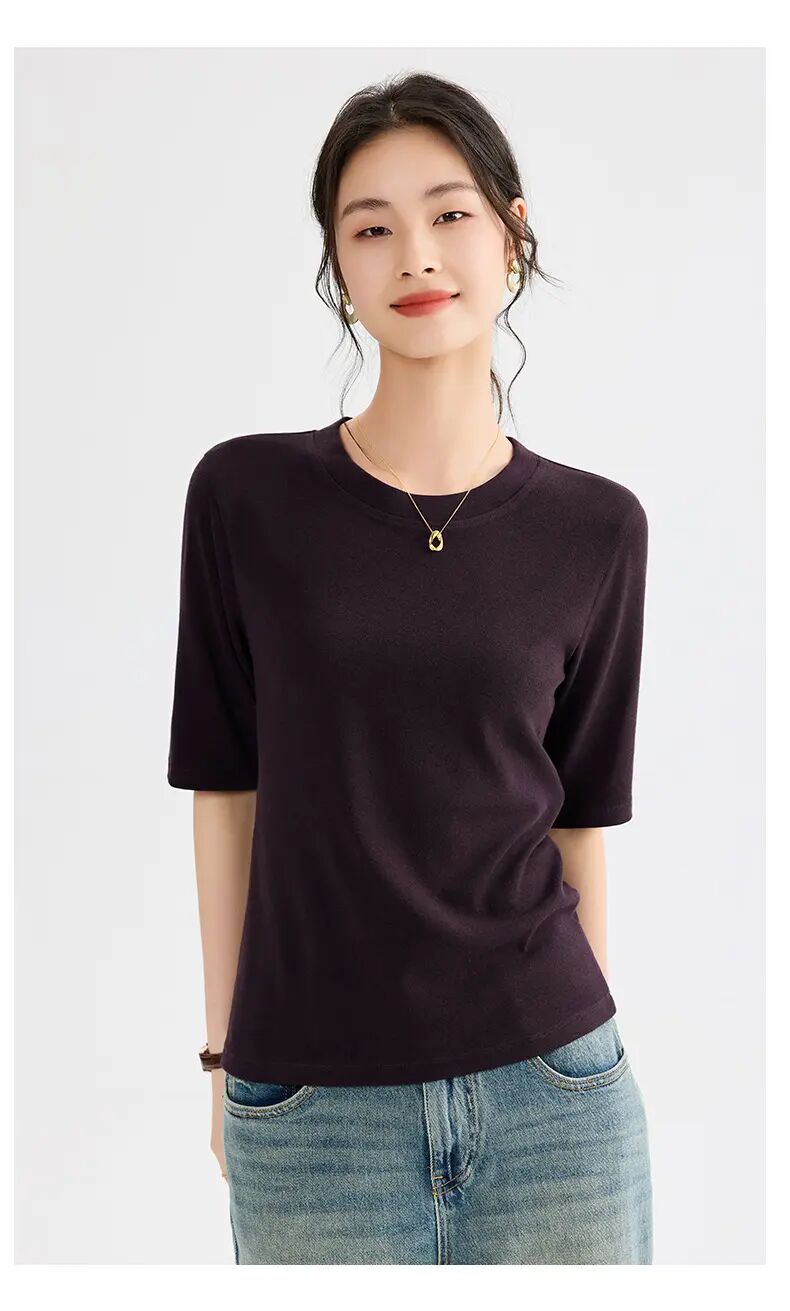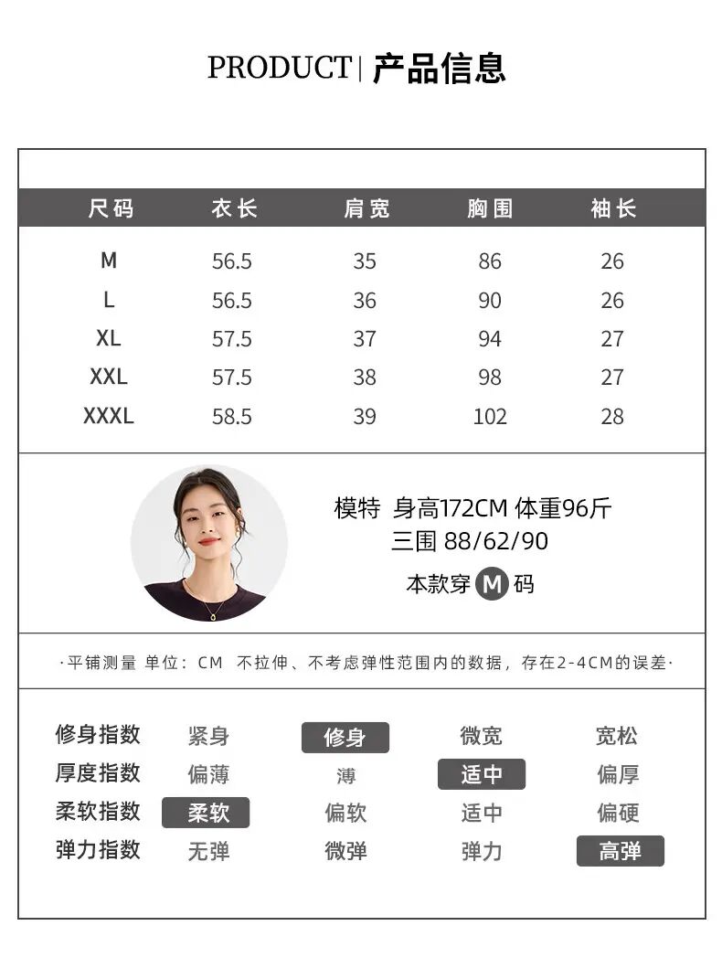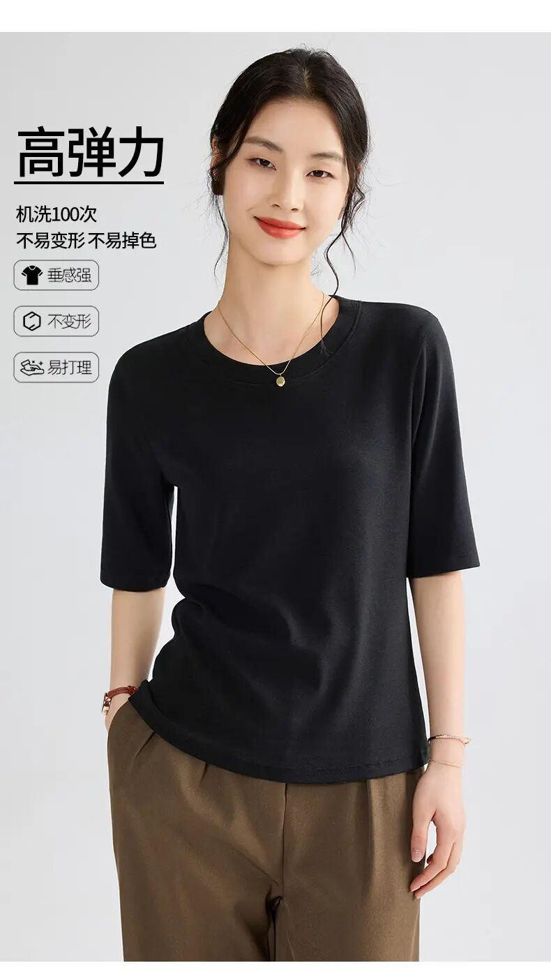 【自】全新升级【铂金会员109/天猫139/差价30】(00156) 洛诗琳高弹力t恤中袖修身内搭打底衫纯色百搭基础款体恤上衣