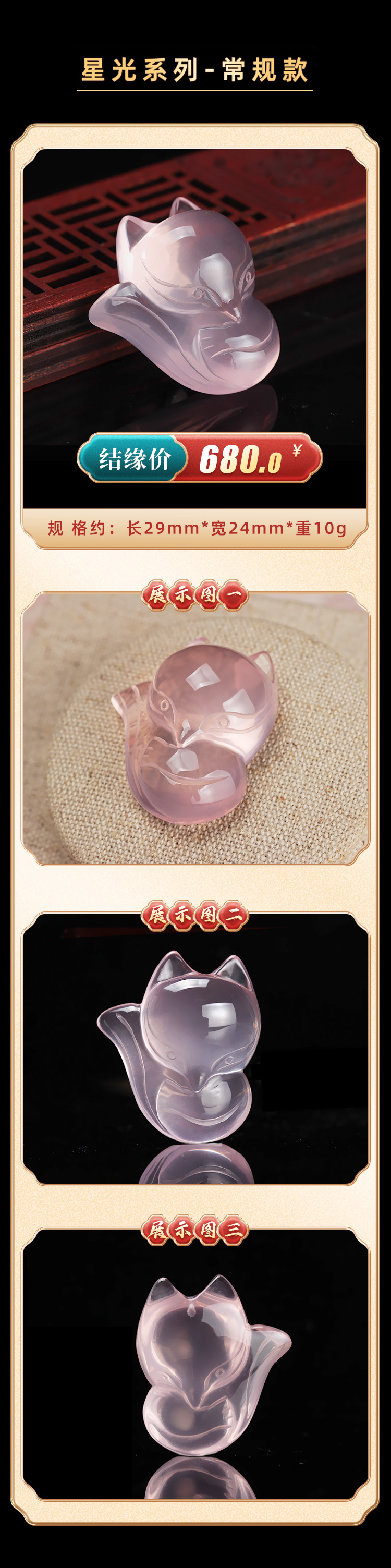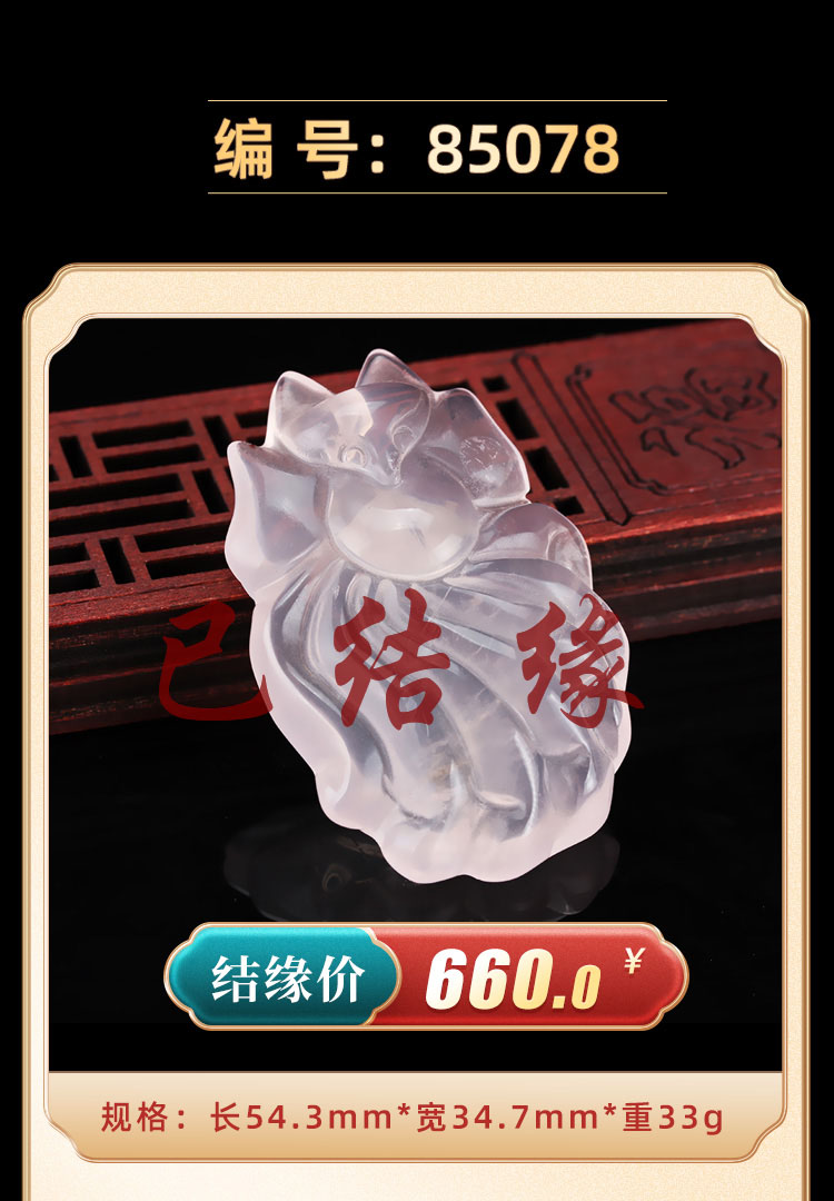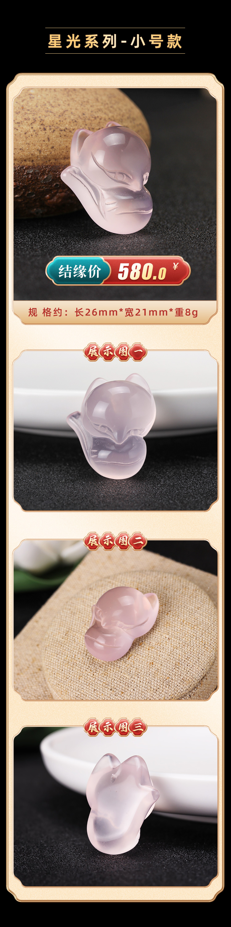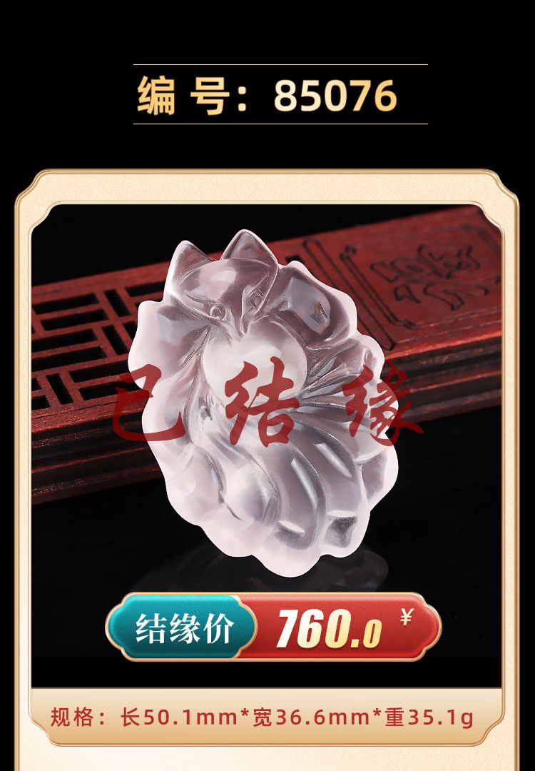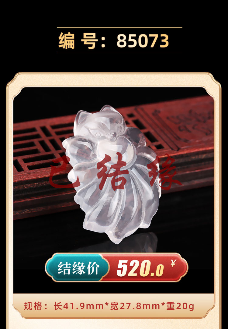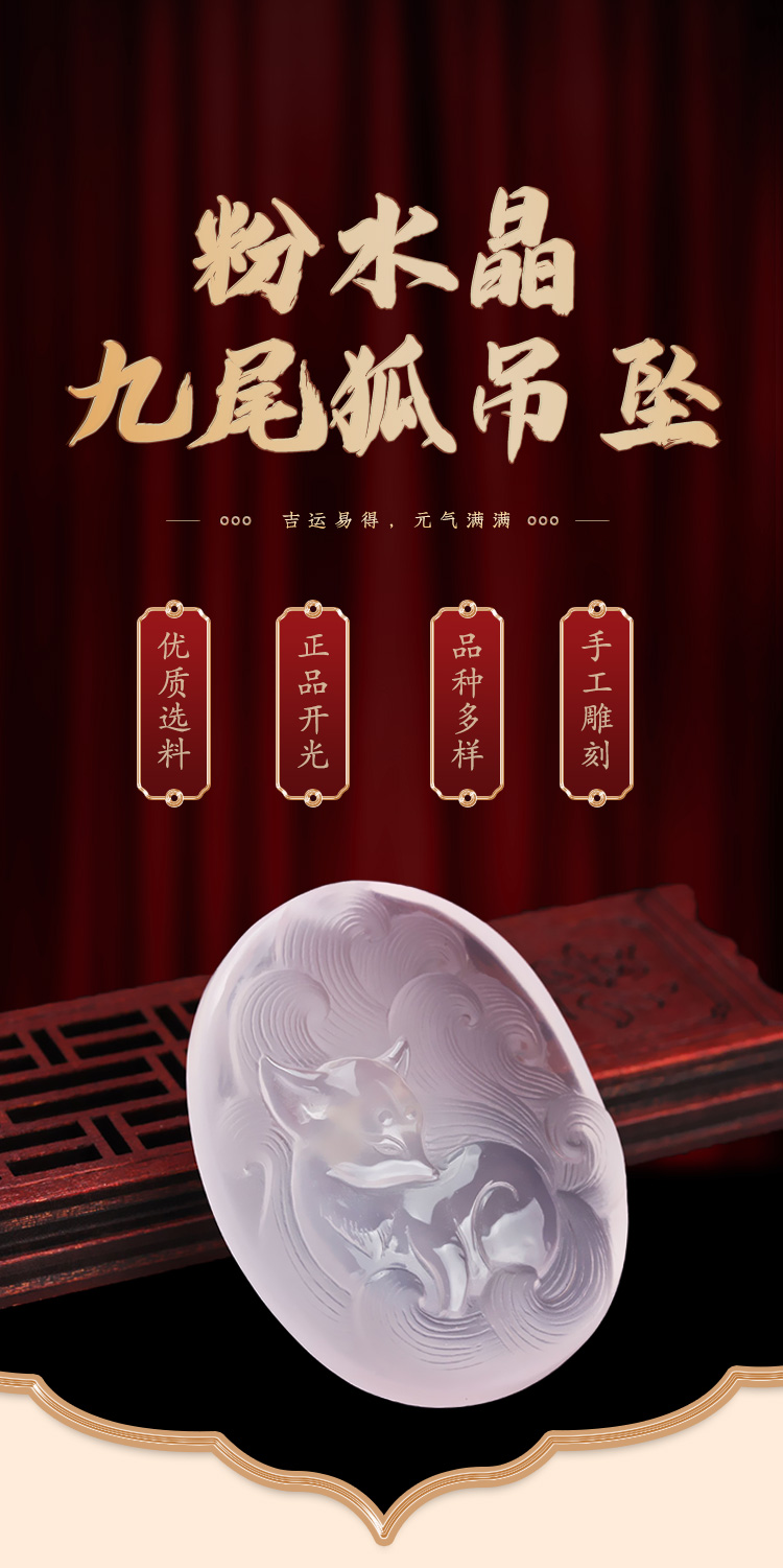 元吉粉水晶九尾狐吊坠手工雕刻件