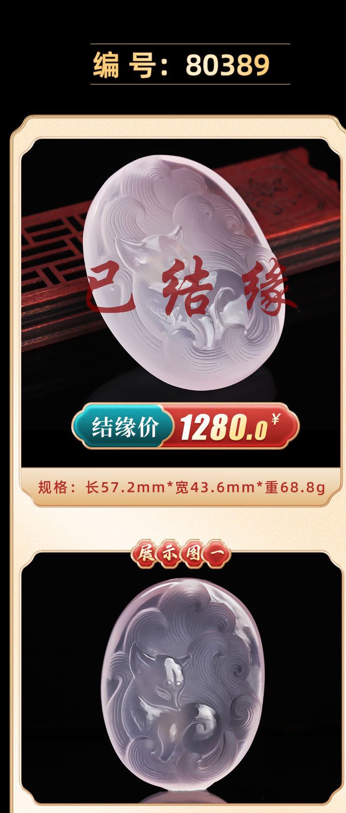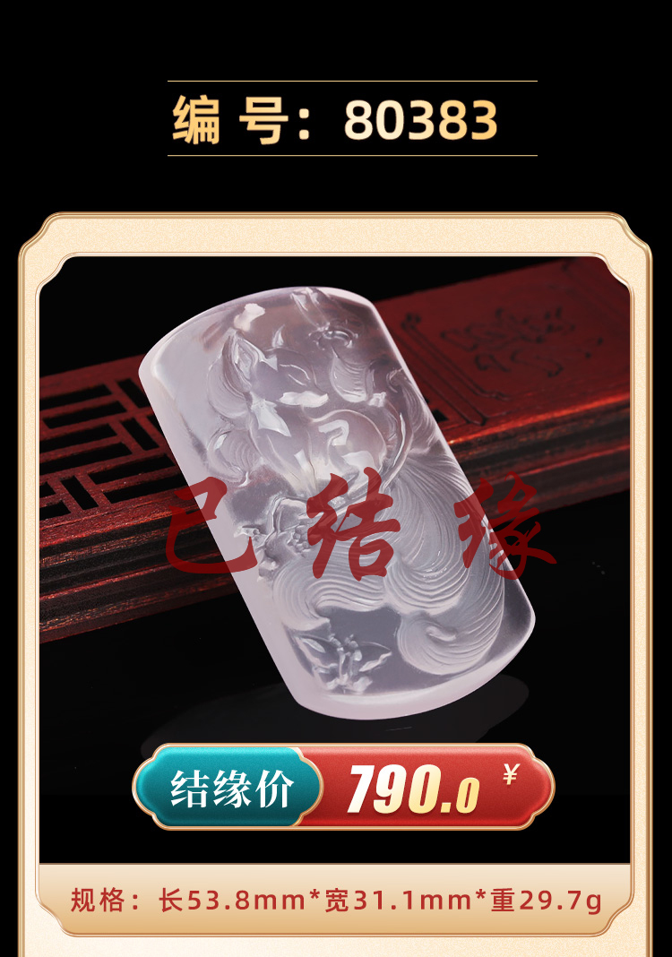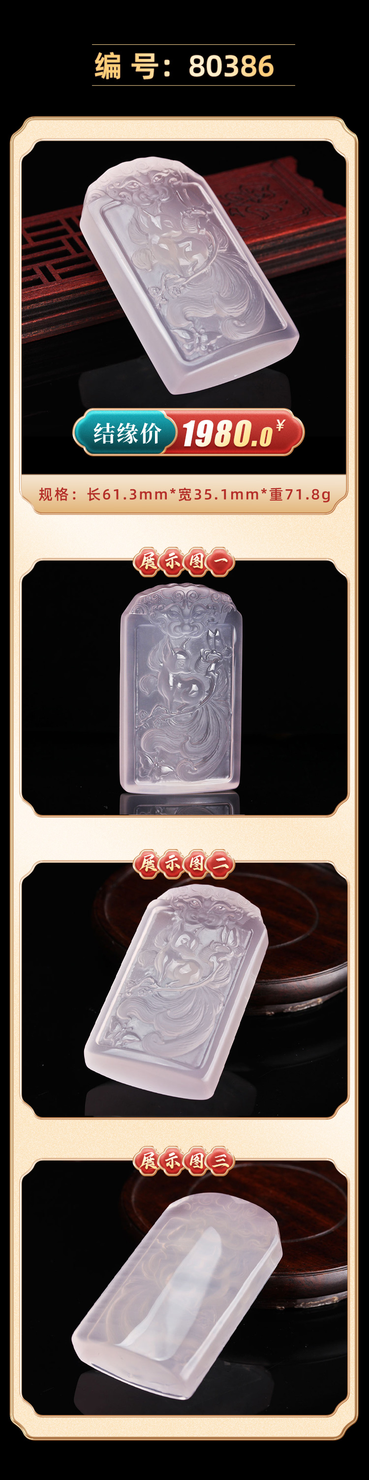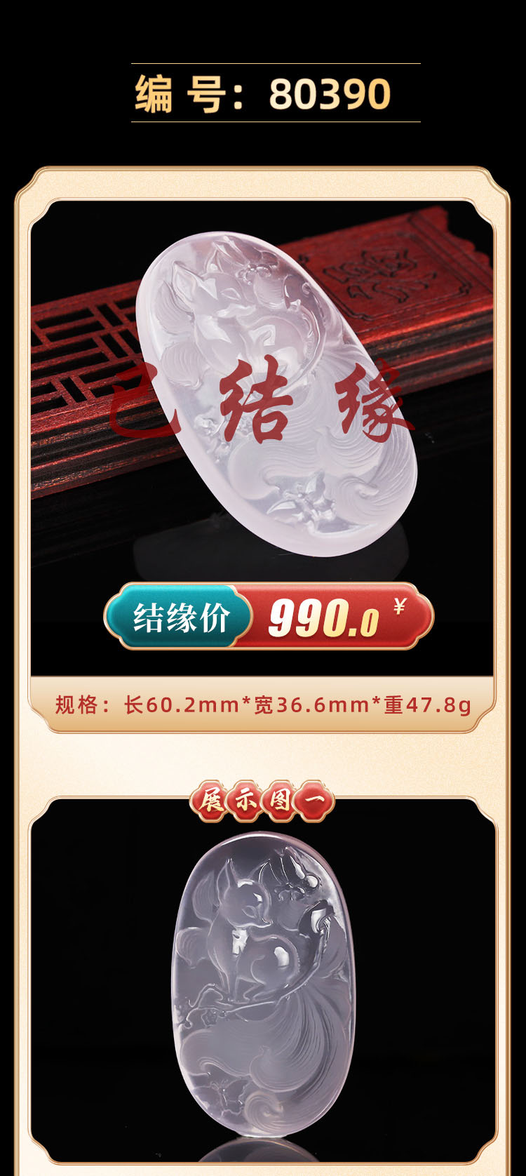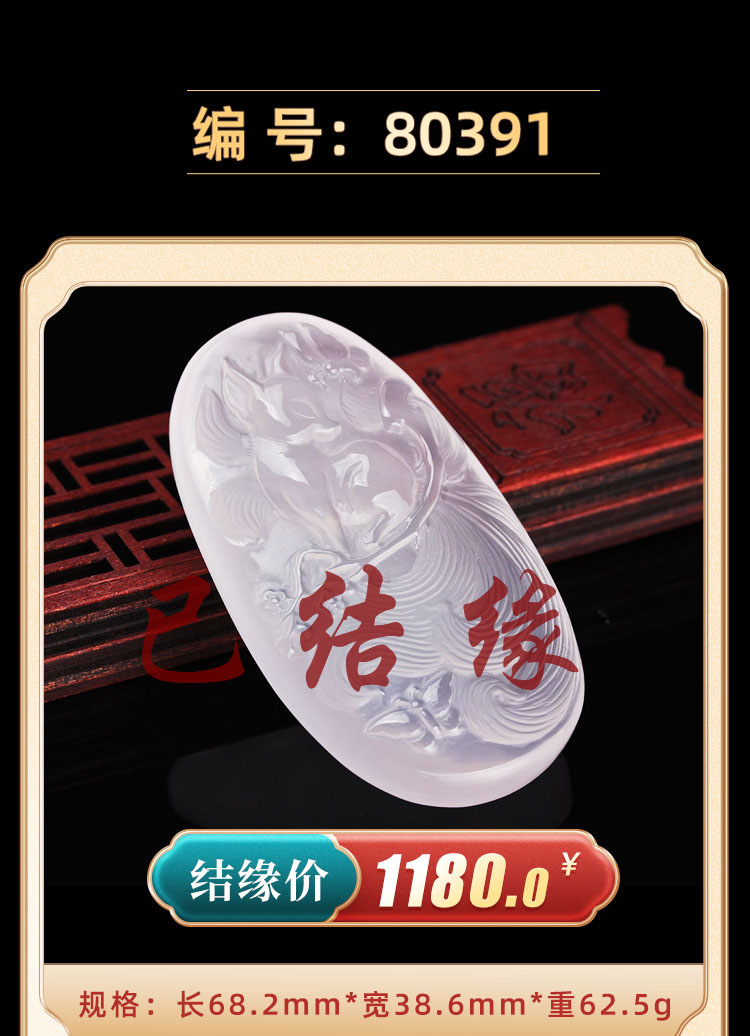 元吉粉水晶九尾狐吊坠手工雕刻件