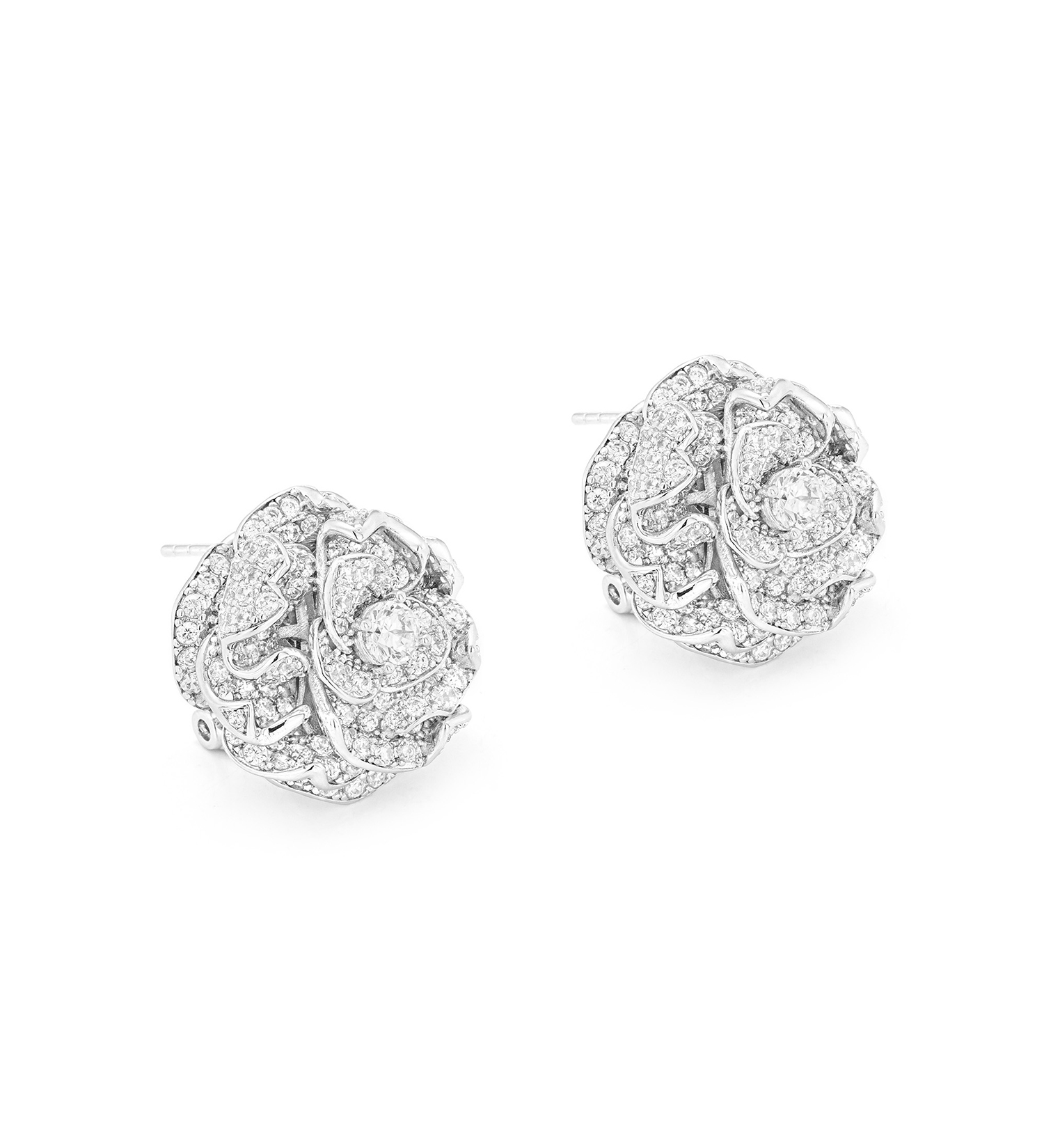 GAONAS 白月光 时尚玫瑰设计白耳钉11658EW