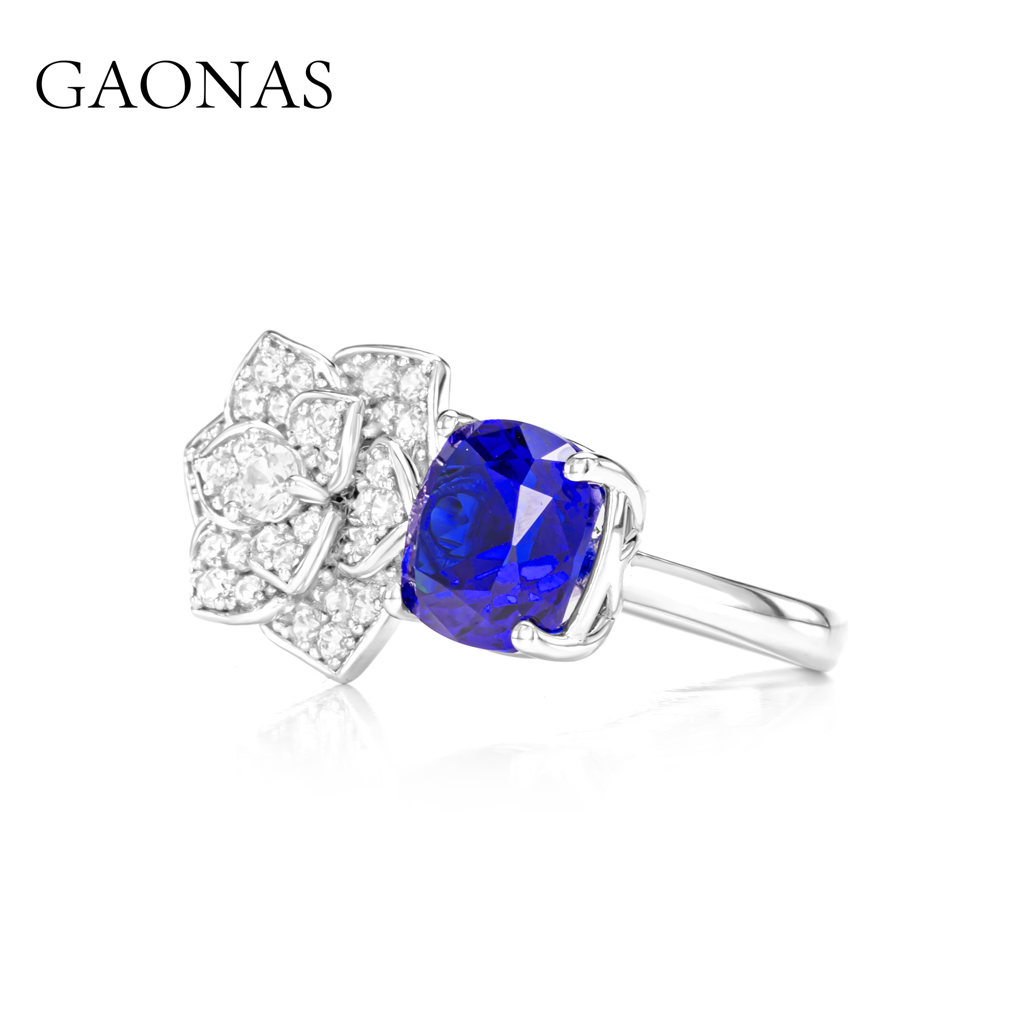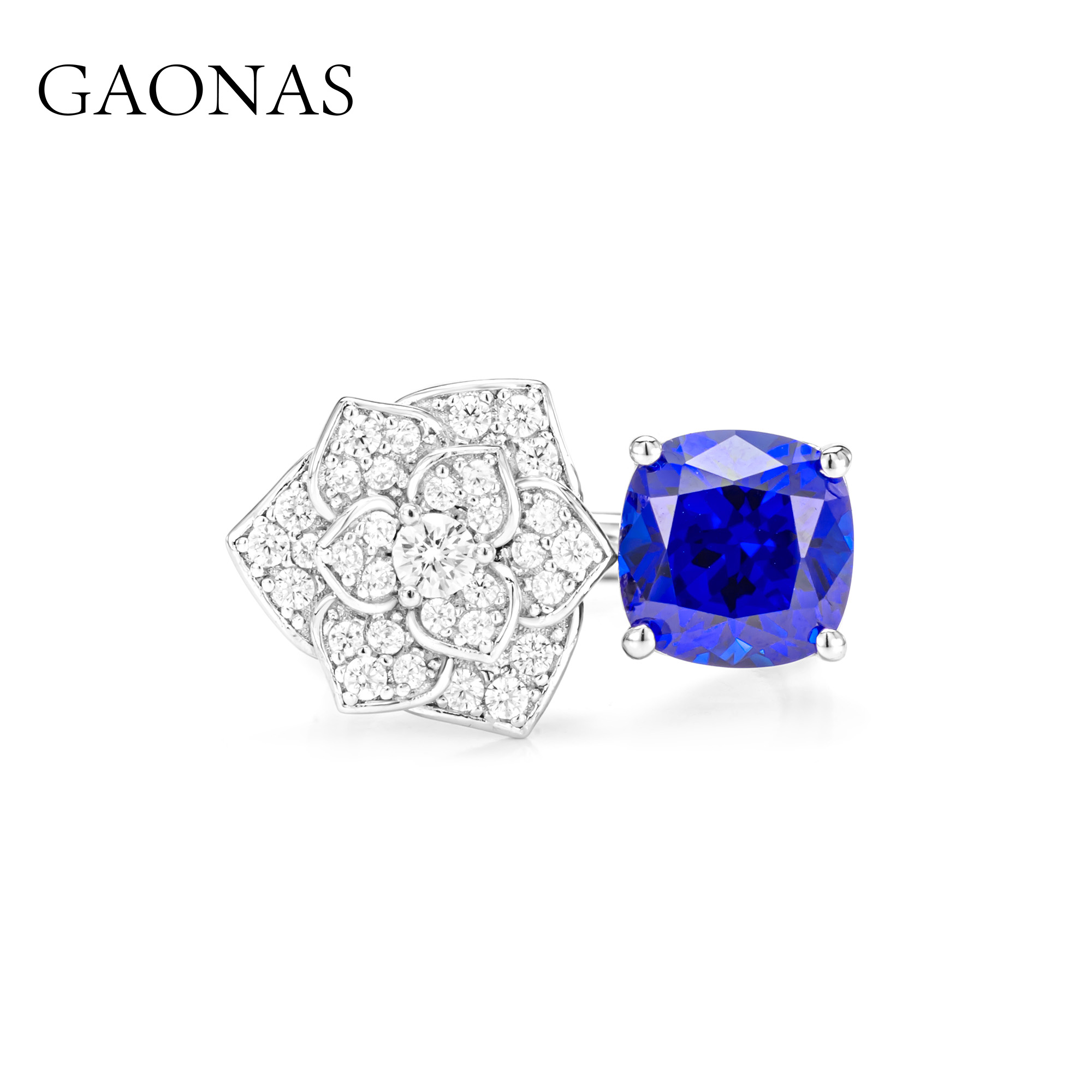 GAONAS高纳仕 春花浪漫 贵气蓝色花朵戒指女士时尚开口戒