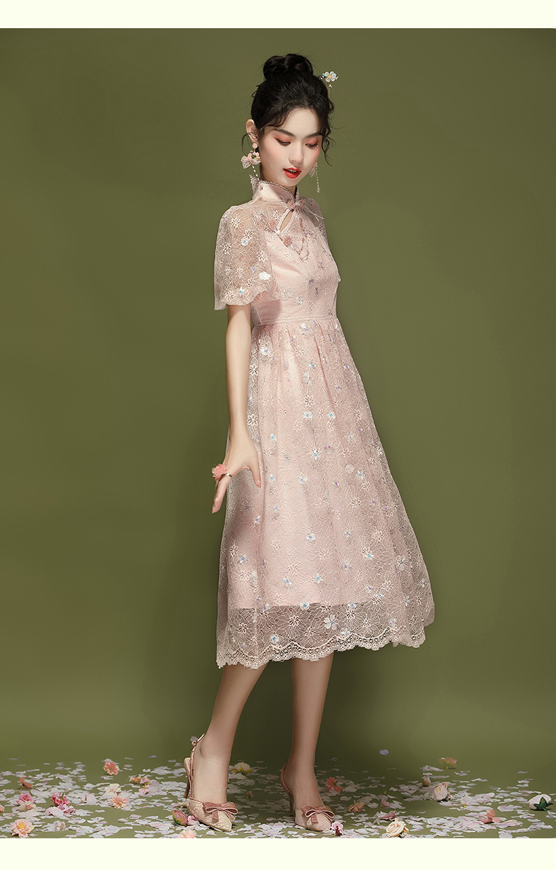 改良款旗袍,蕾丝灯笼袖连衣裙OY-24151
