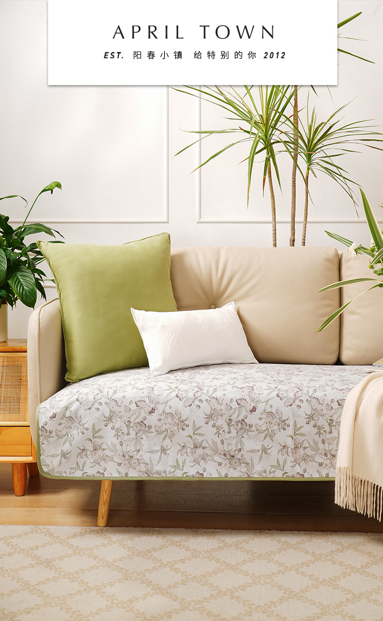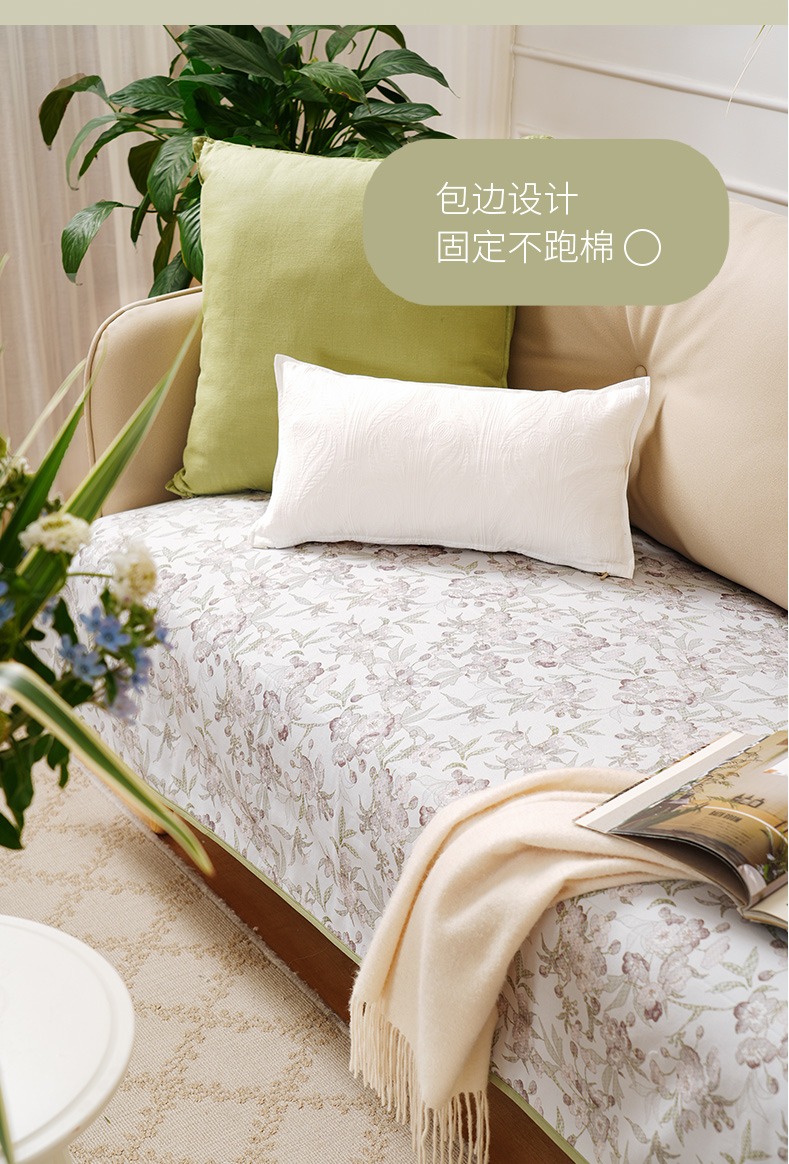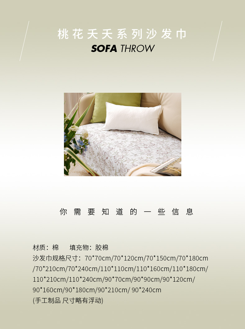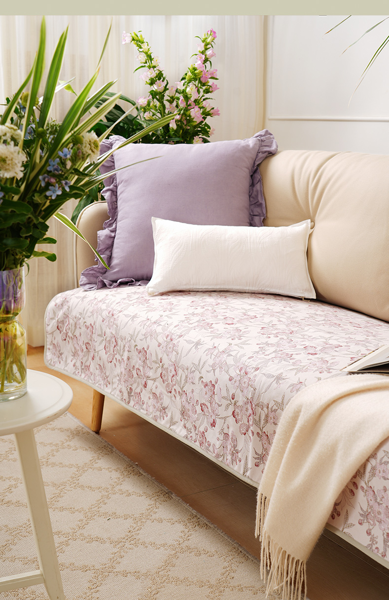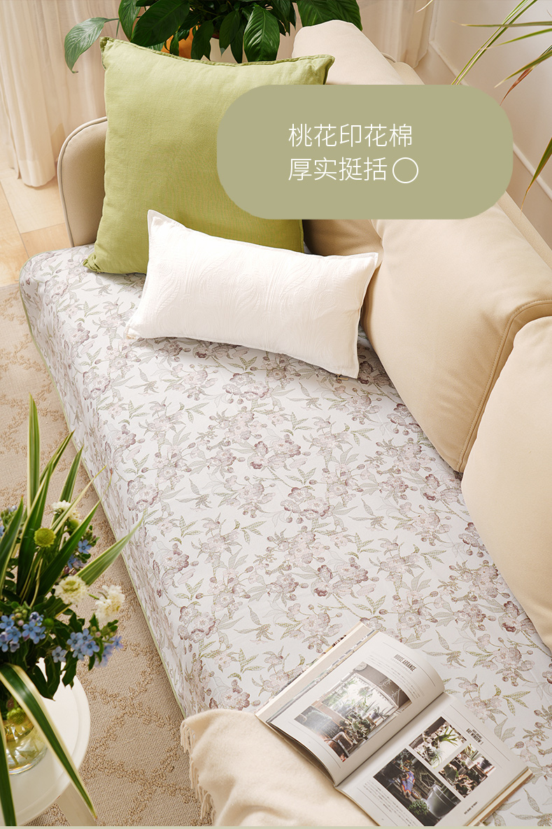 桃花夭夭系列沙发巾棉四季通用高端轻奢防滑高级感高档靠包定制