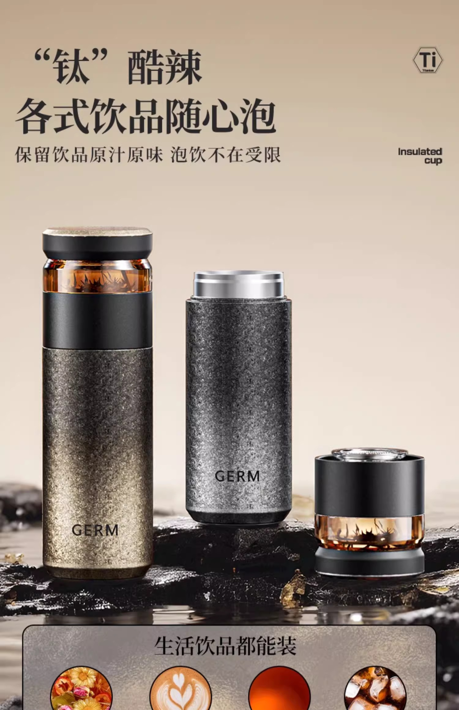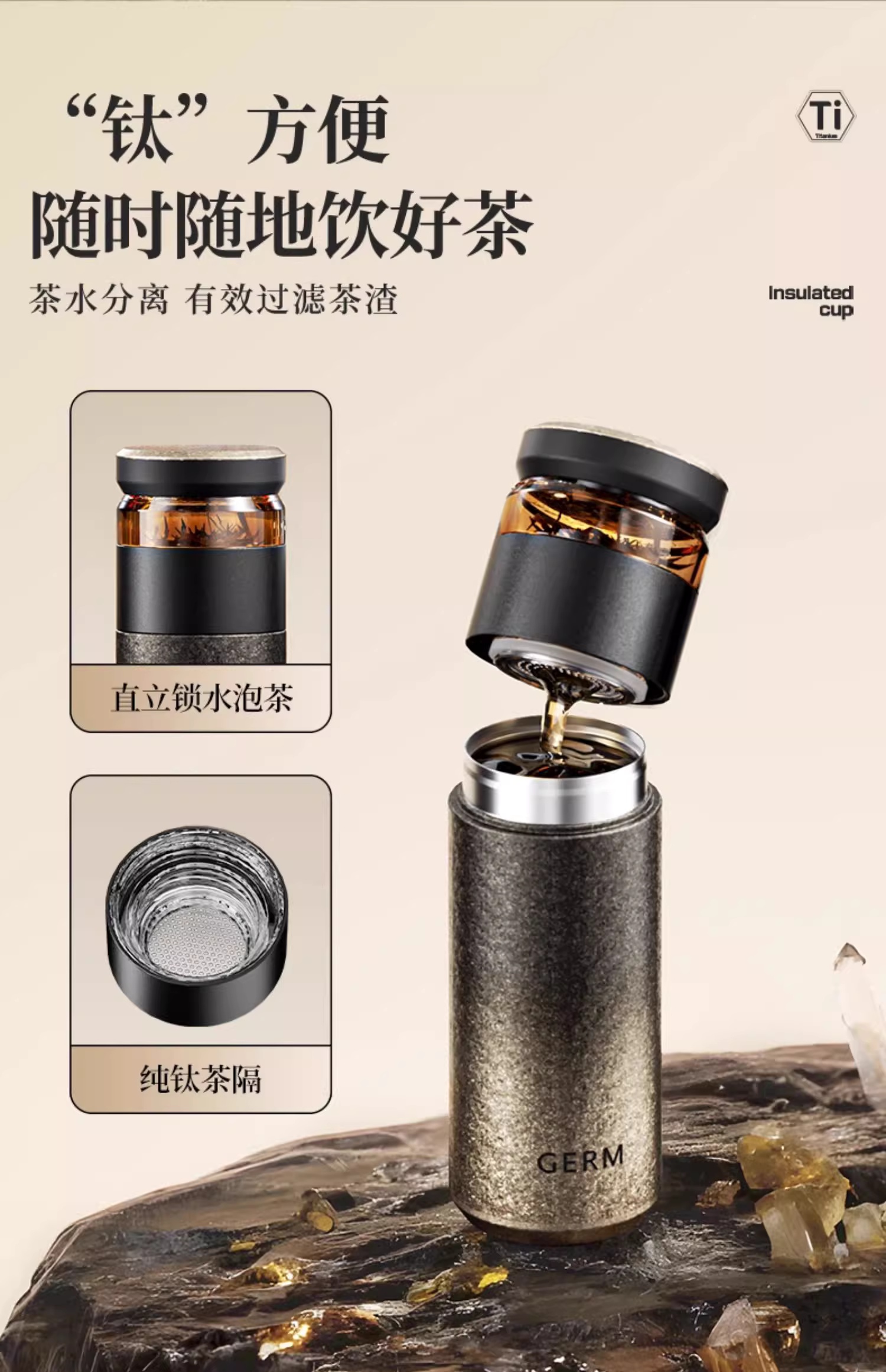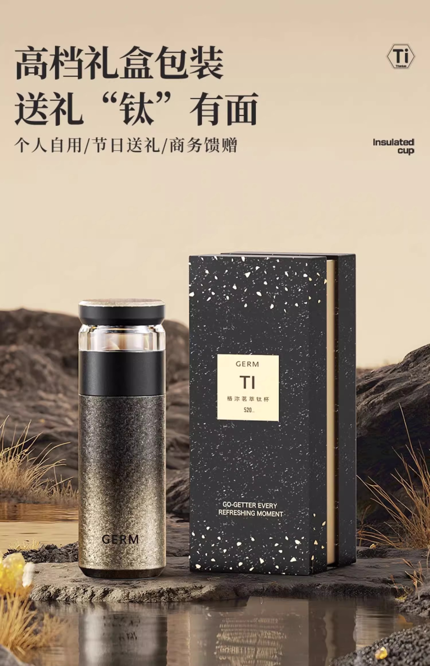 GERM 格米 茗萃钛杯500ml 太空银