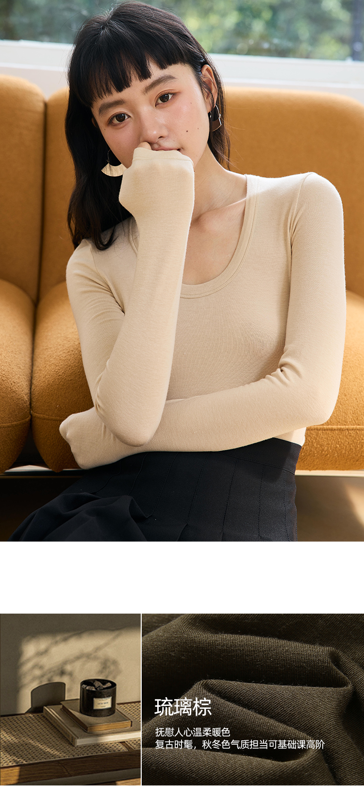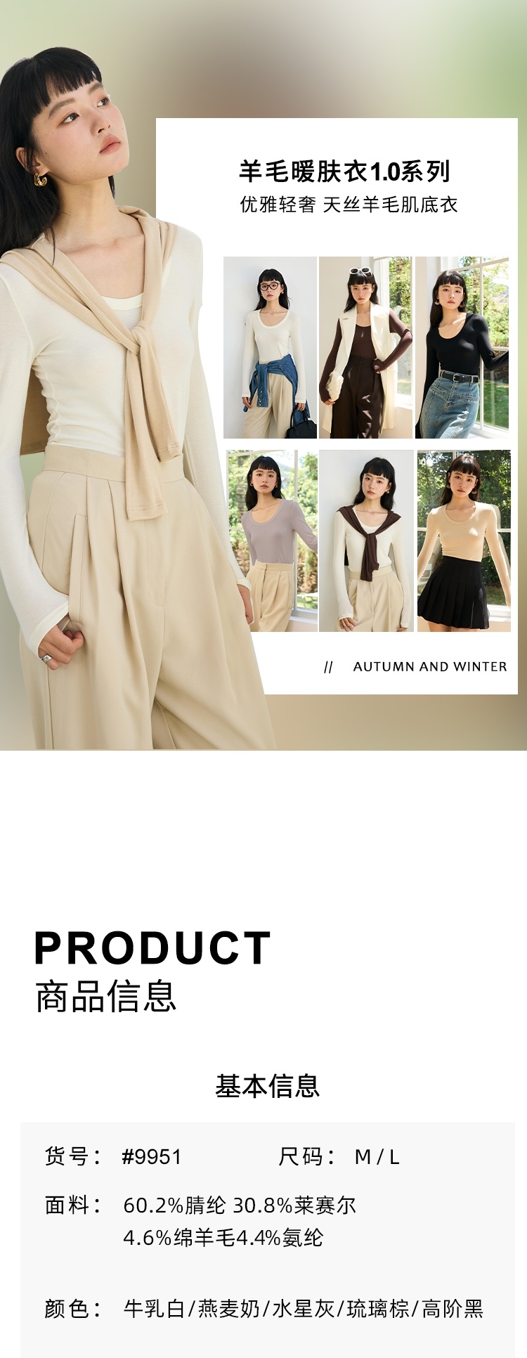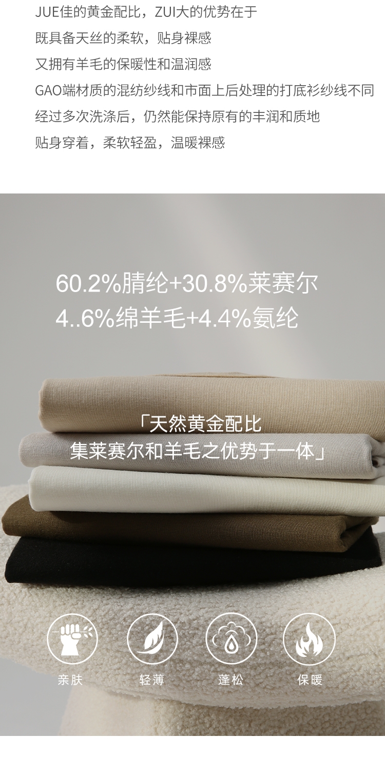 【2024秋冬新品】兰精天丝诺羊毛肌底衣 圆领纯色保暖内搭长袖百搭睡衣