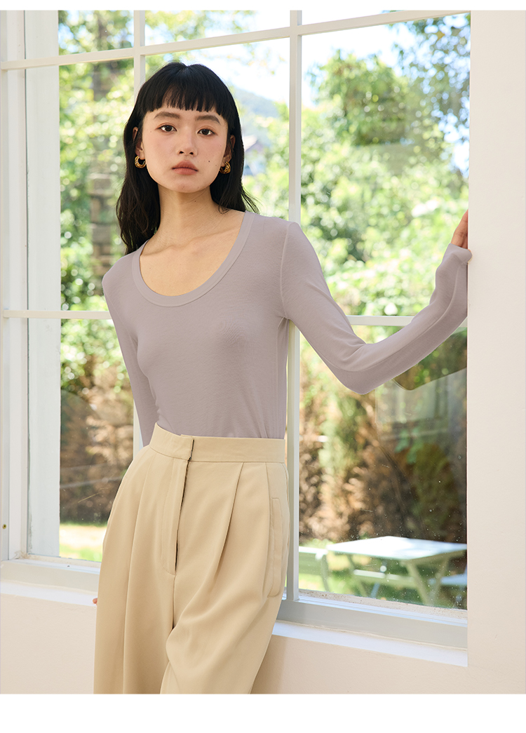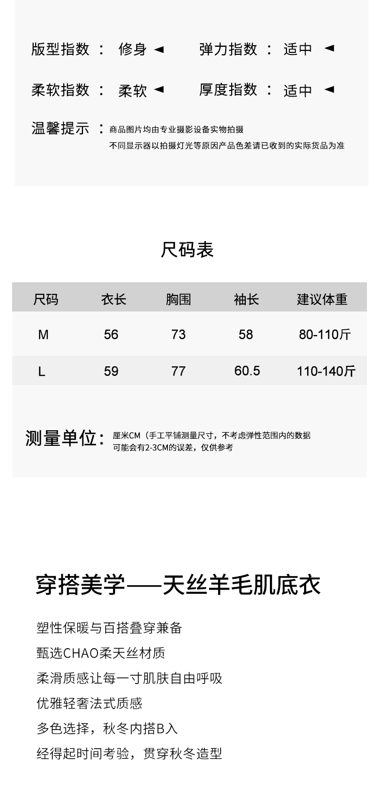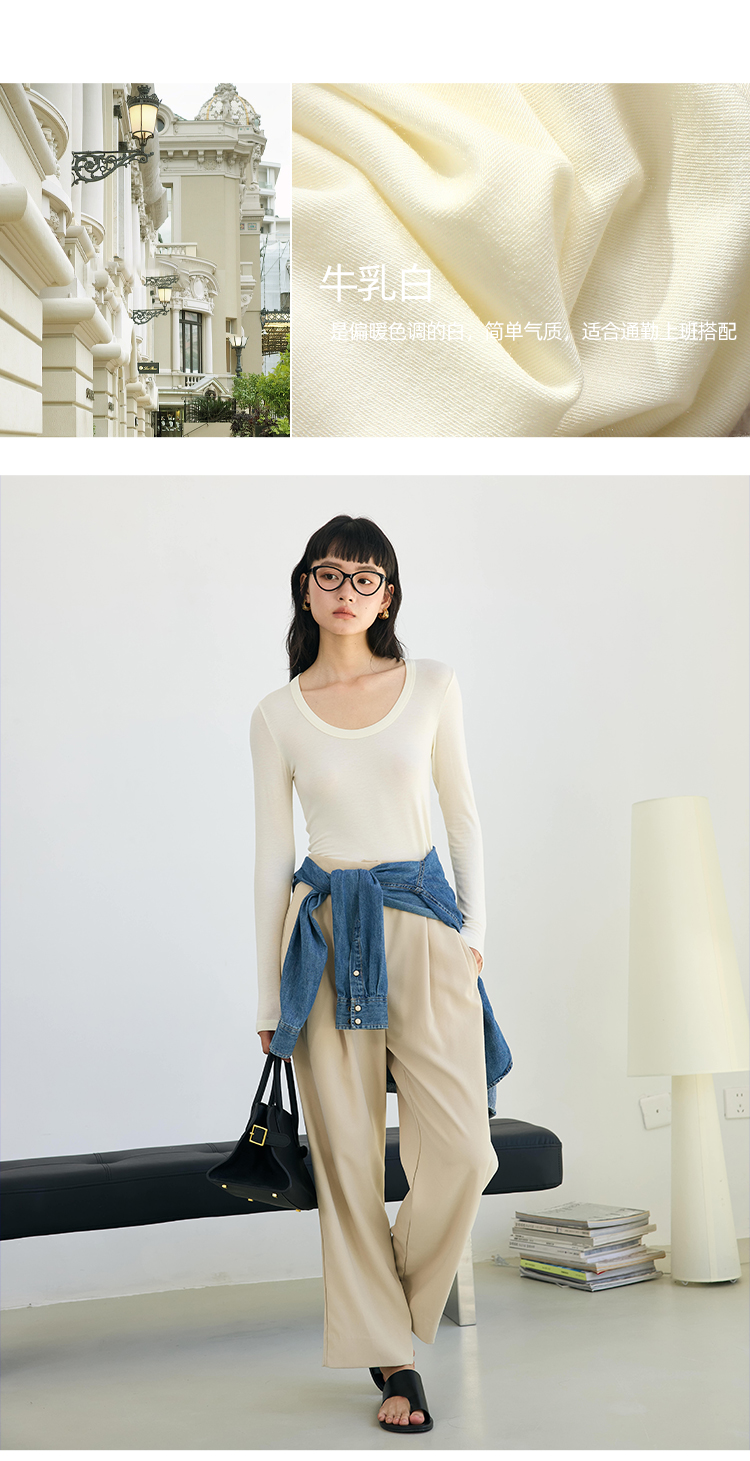 【2024秋冬新品】兰精天丝诺羊毛肌底衣 圆领纯色保暖内搭长袖百搭睡衣