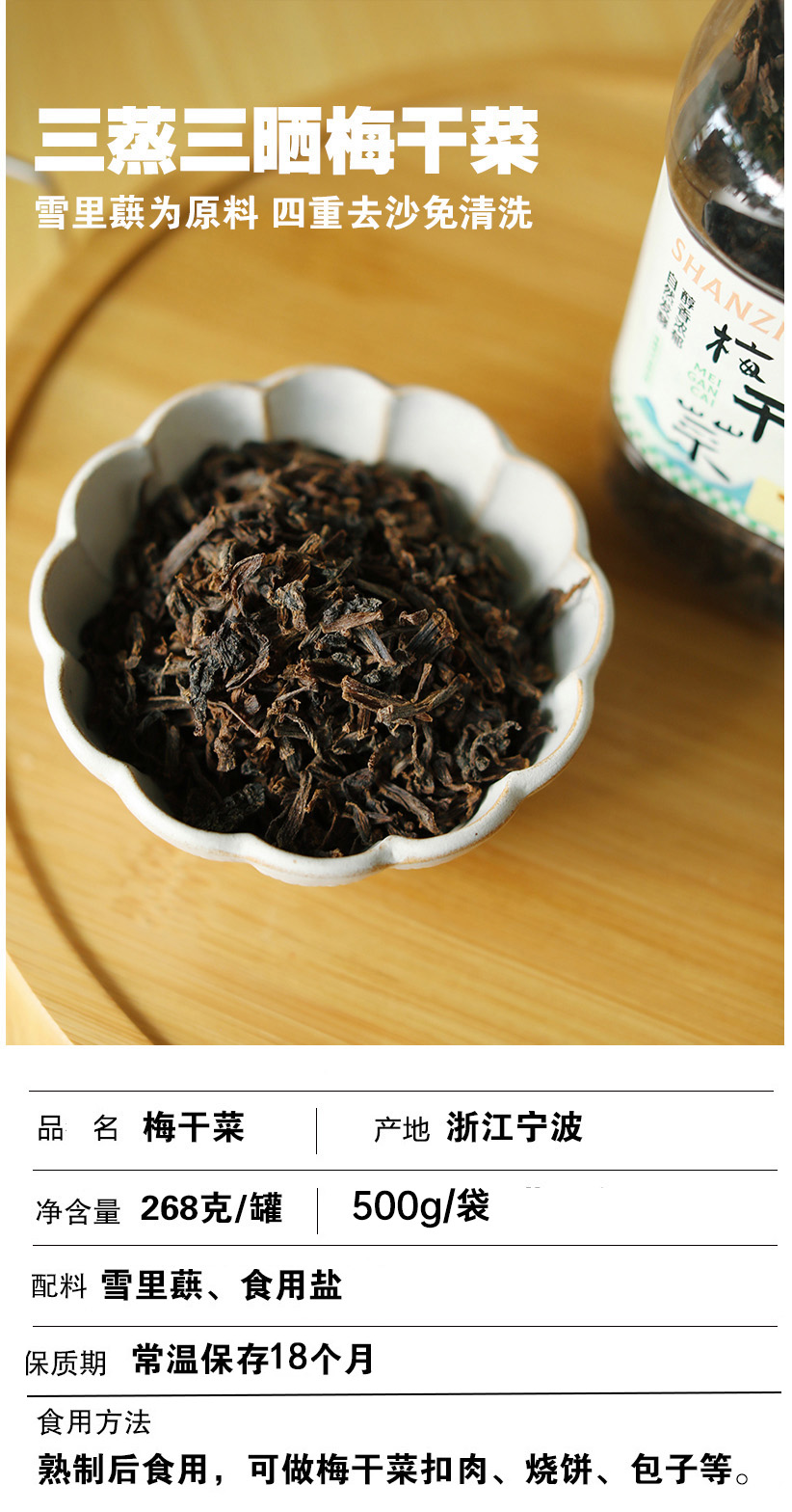 三蒸三晒梅干菜,罐装268g/罐,袋装500g/袋