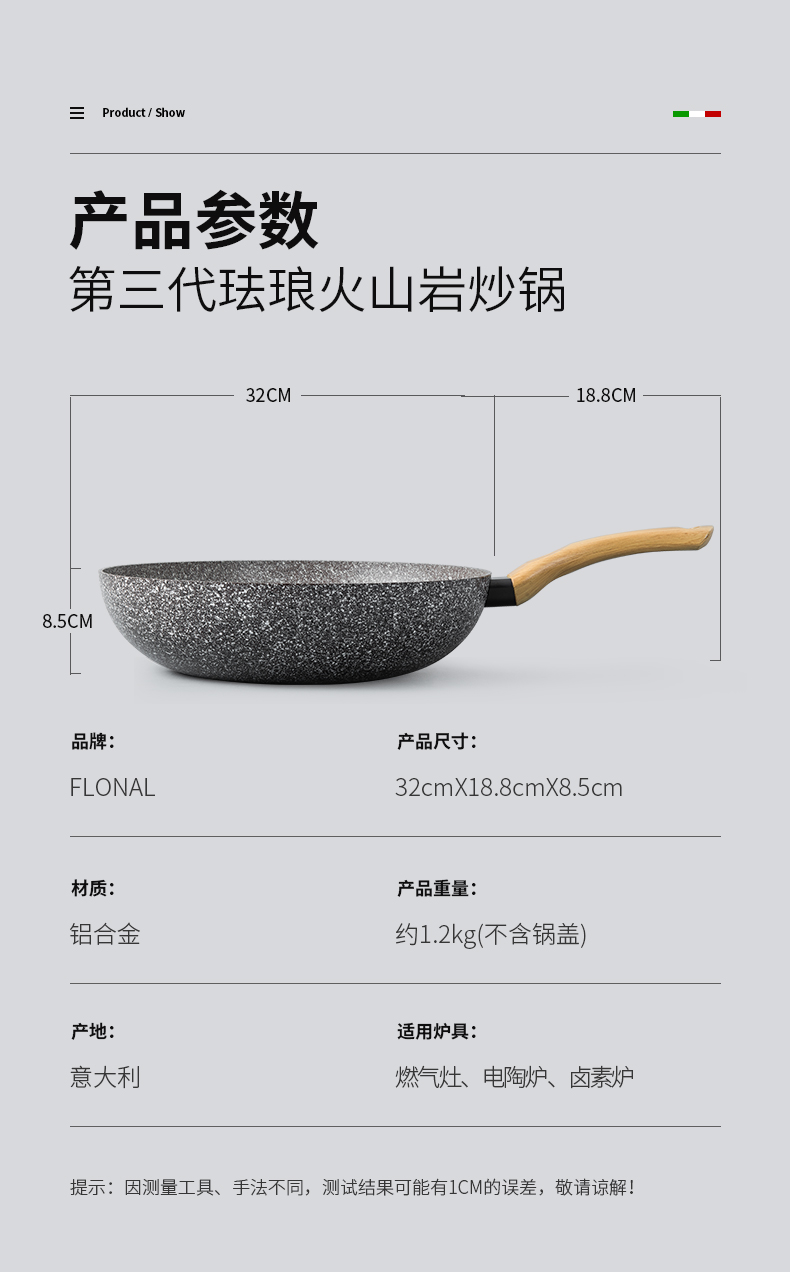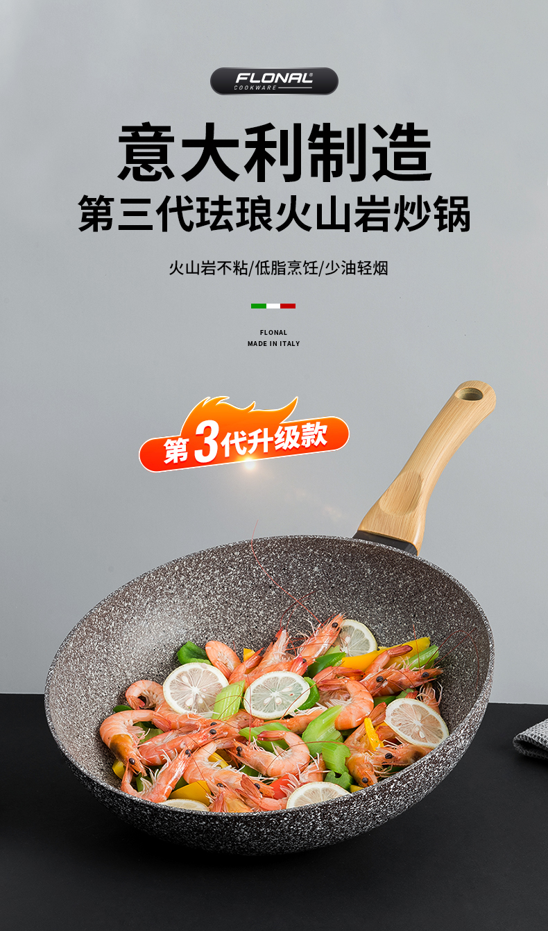 FLONAL 意大利珐琅火山岩炒锅 | 第三代珐琅火山岩炒锅