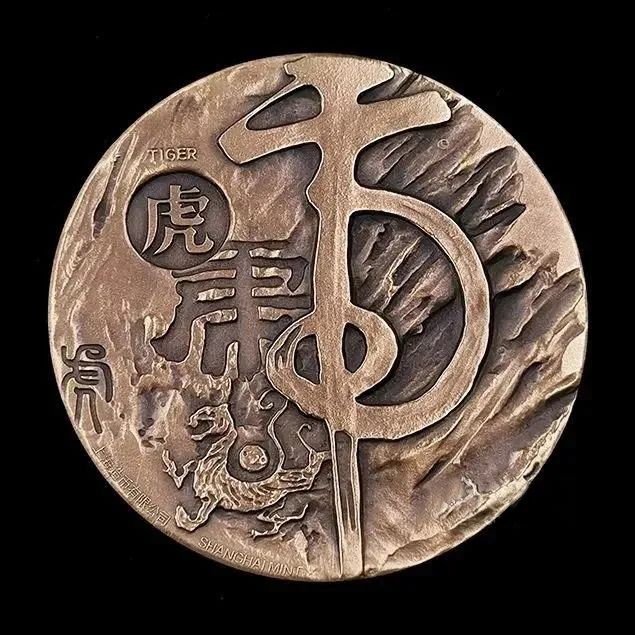 【上海造币】十二生肖虎首纪念铜章 直径达60mm