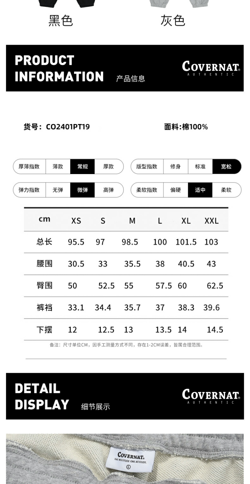 covernat韩国潮牌复古慢跑裤男女情侣休闲时尚运动裤纯棉舒适长裤CO2401PT19