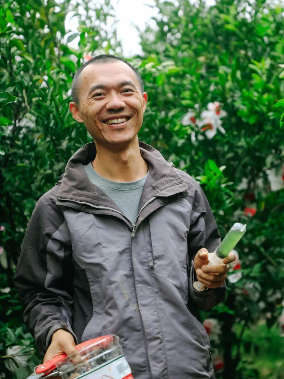 使用有机肥,也会将疏掉的果子做成酵素,可以施肥给土壤,也可以喷洒树体,人工捉天牛,用泥巴填上它给枝干蛀的洞,每件平凡的小事最终孕育出了柑橘的美味。
