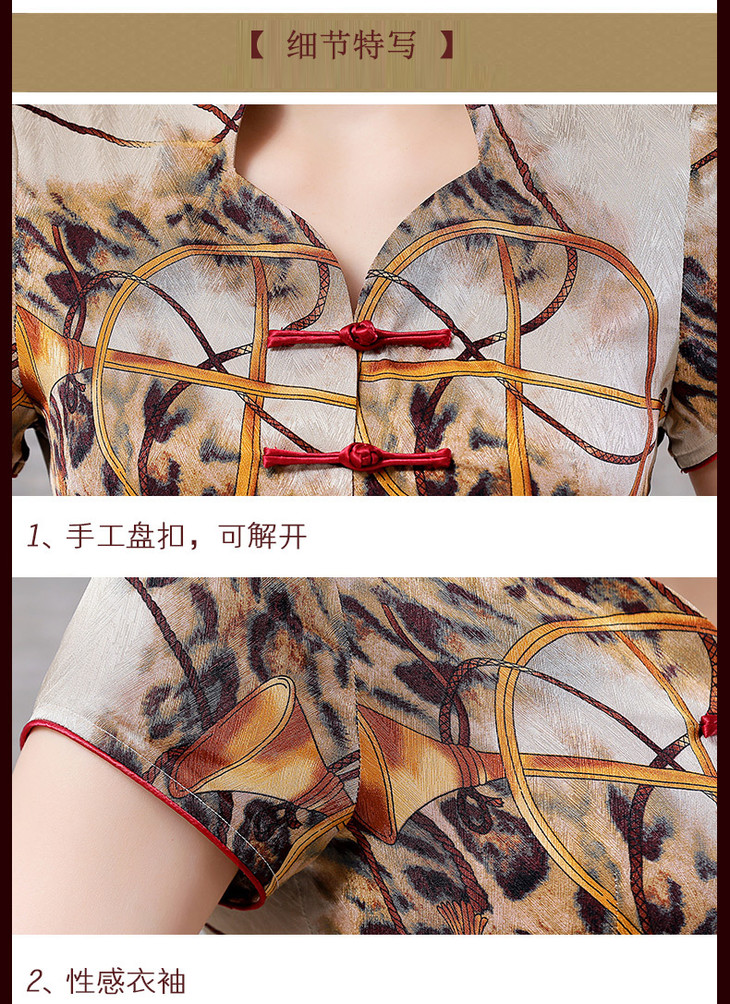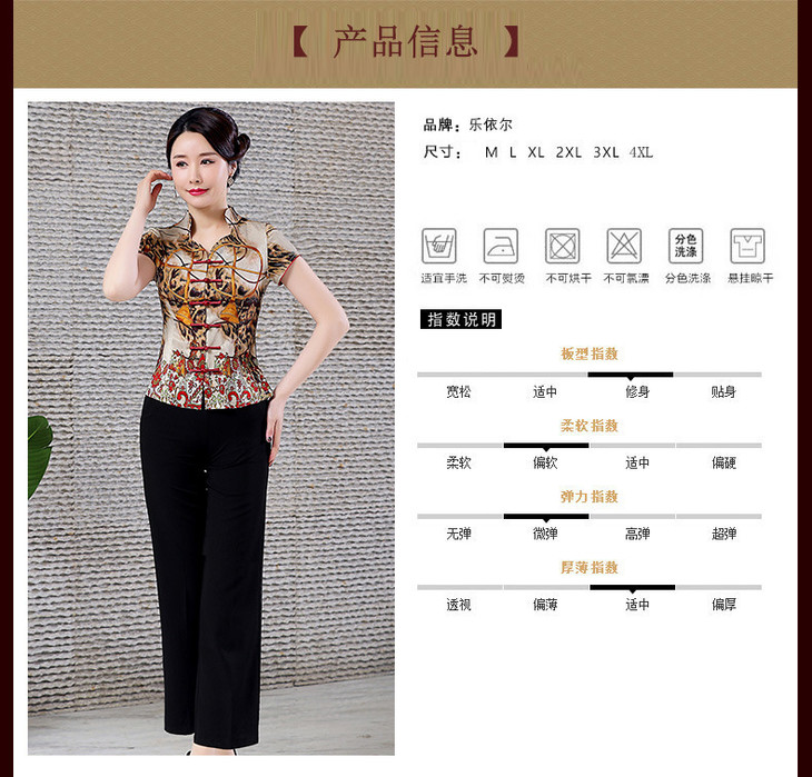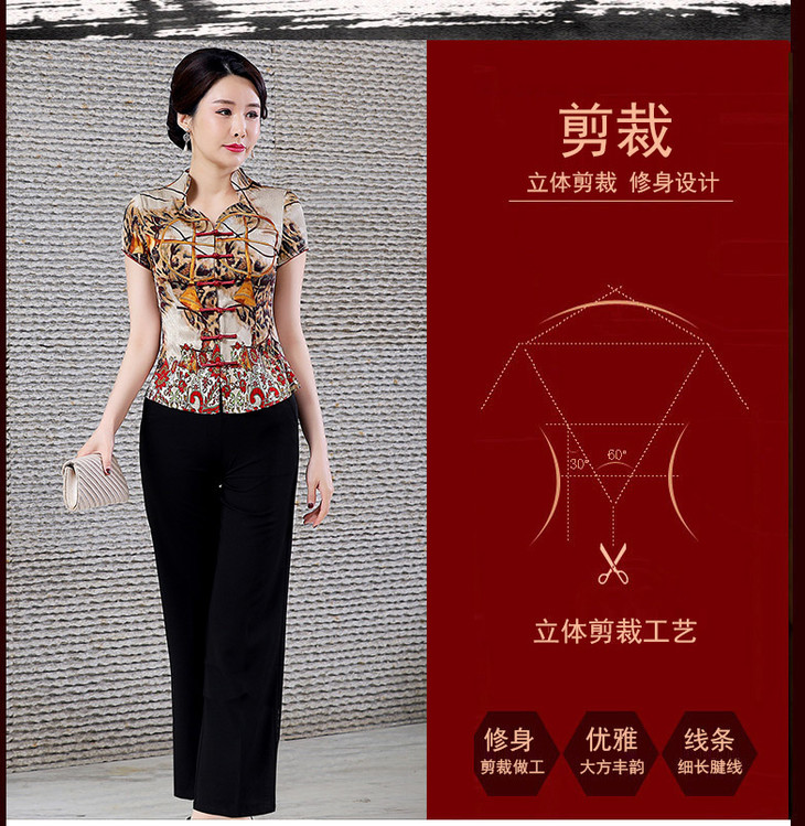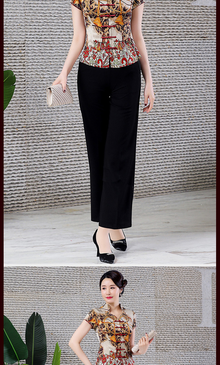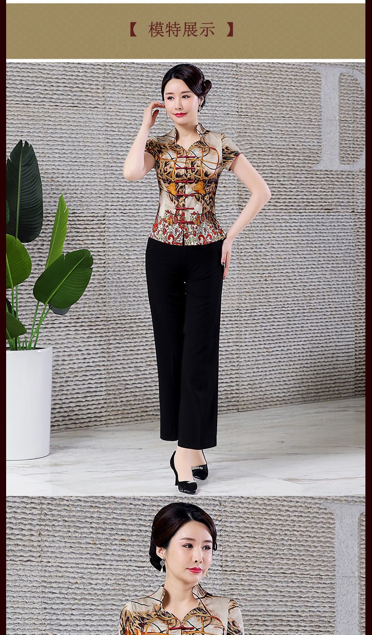 LYE2265新款复古优雅气质修身立领短袖印花唐装上衣裤子两件套
