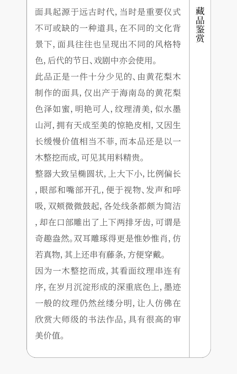 明 黄花梨一木整挖面具