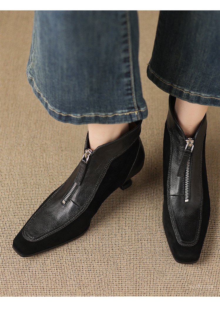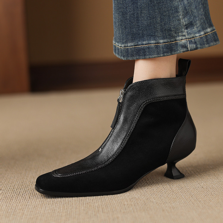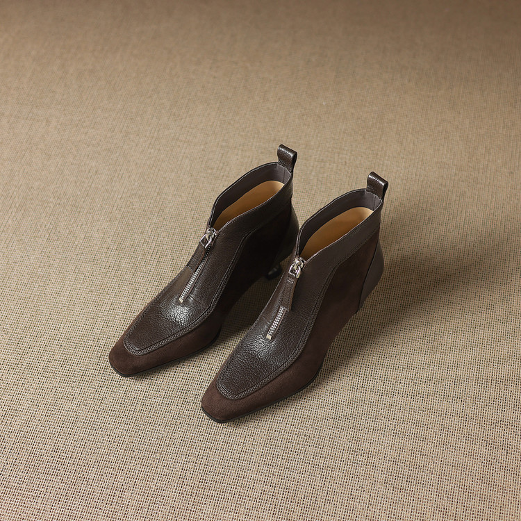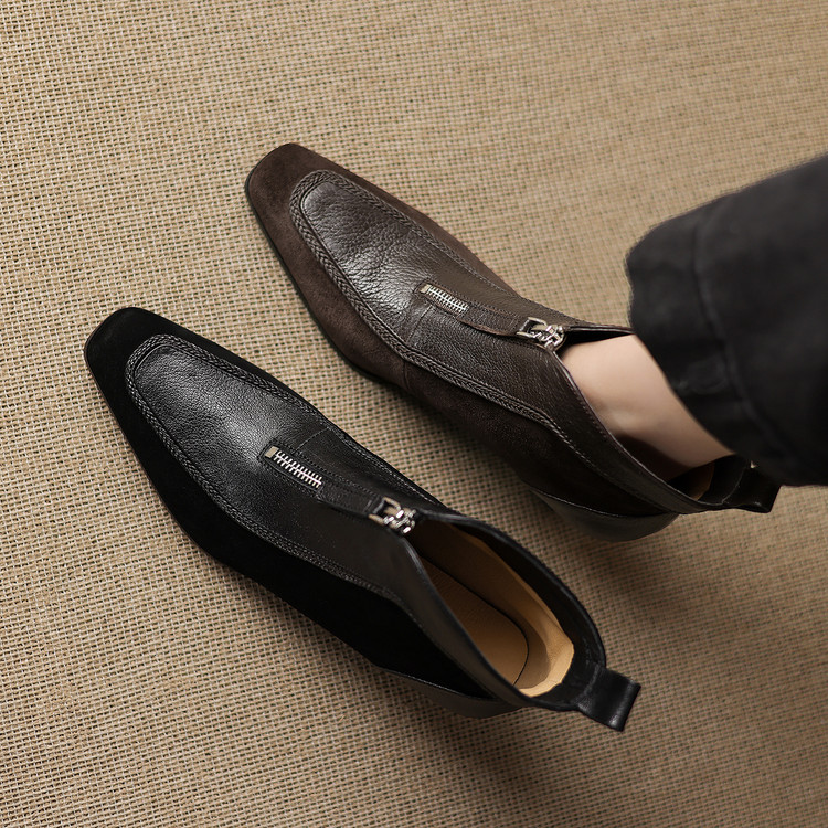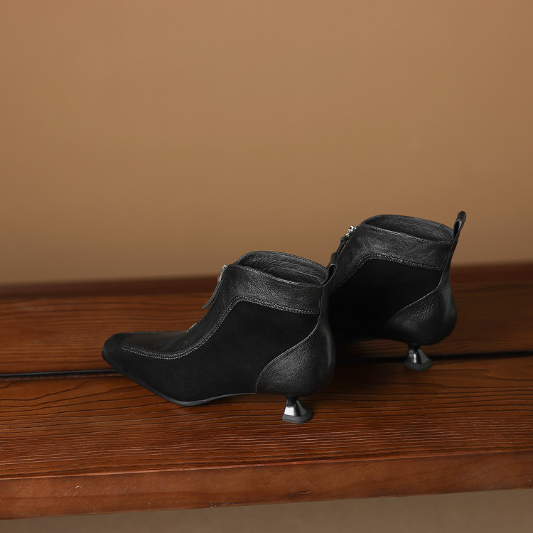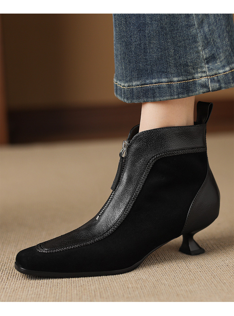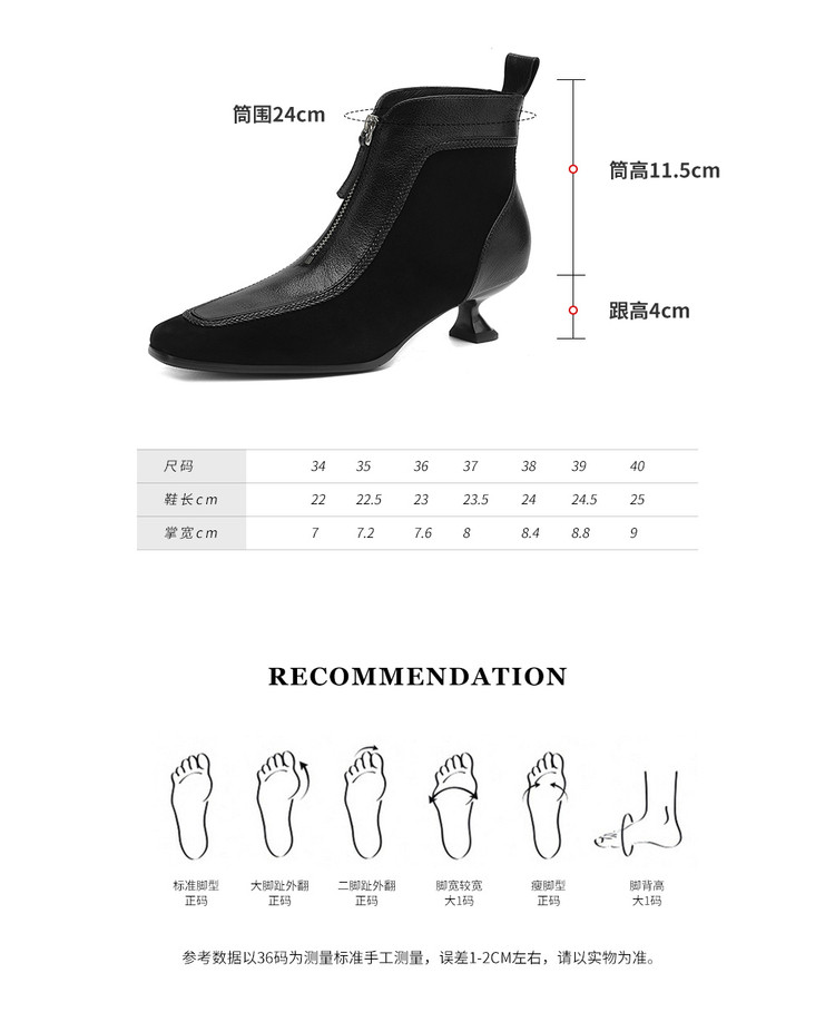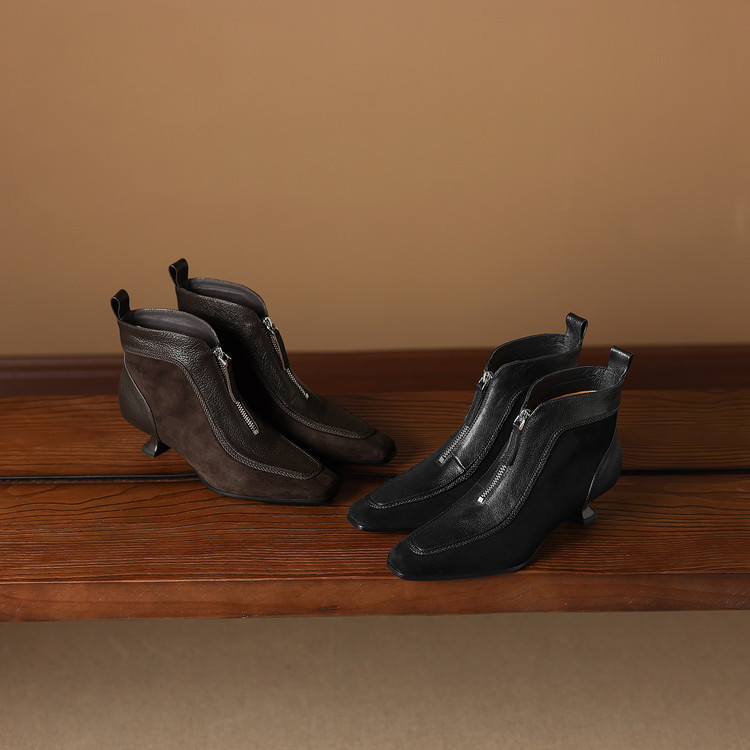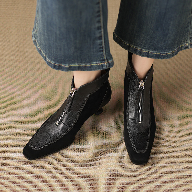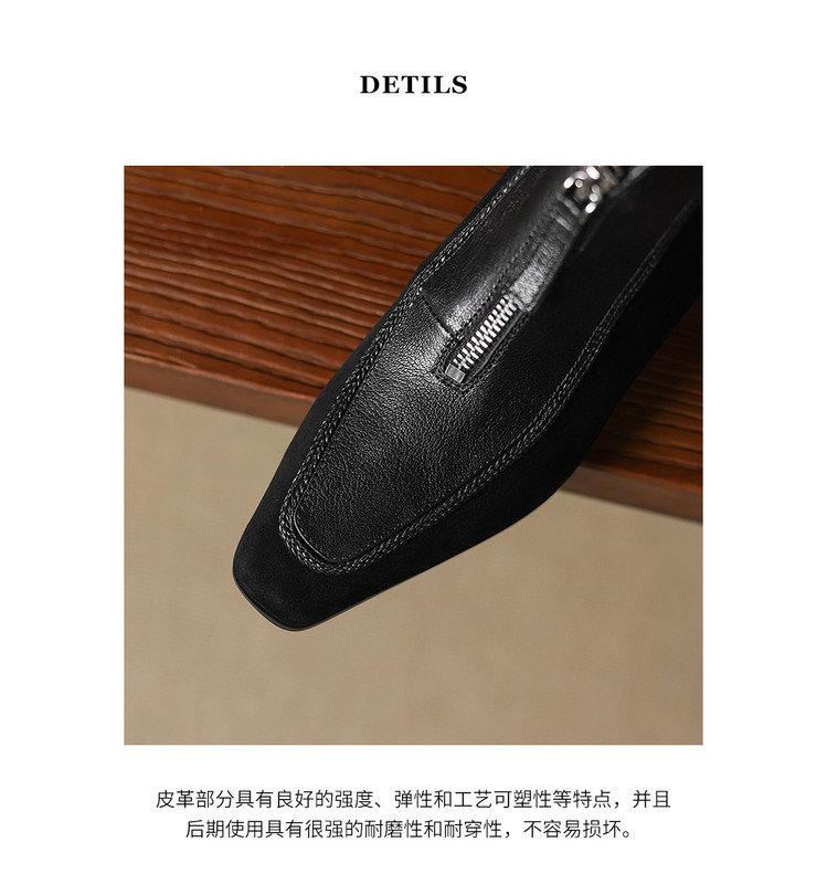 【预售5天】秋冬前拉链羊皮真皮4.5cm短靴小方头低跟粗跟优雅百搭瘦瘦靴JLY&26-18
