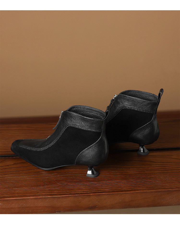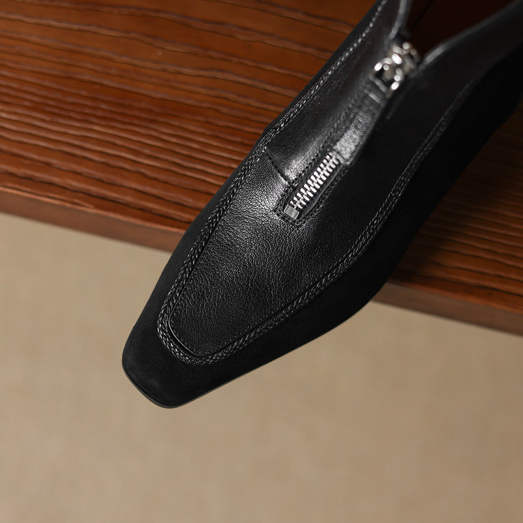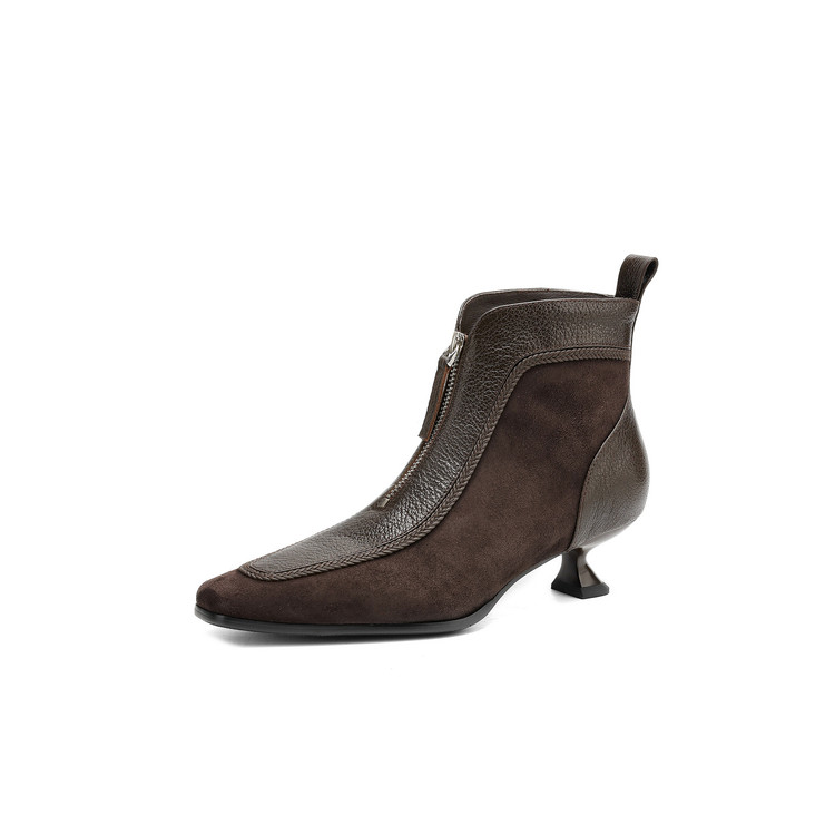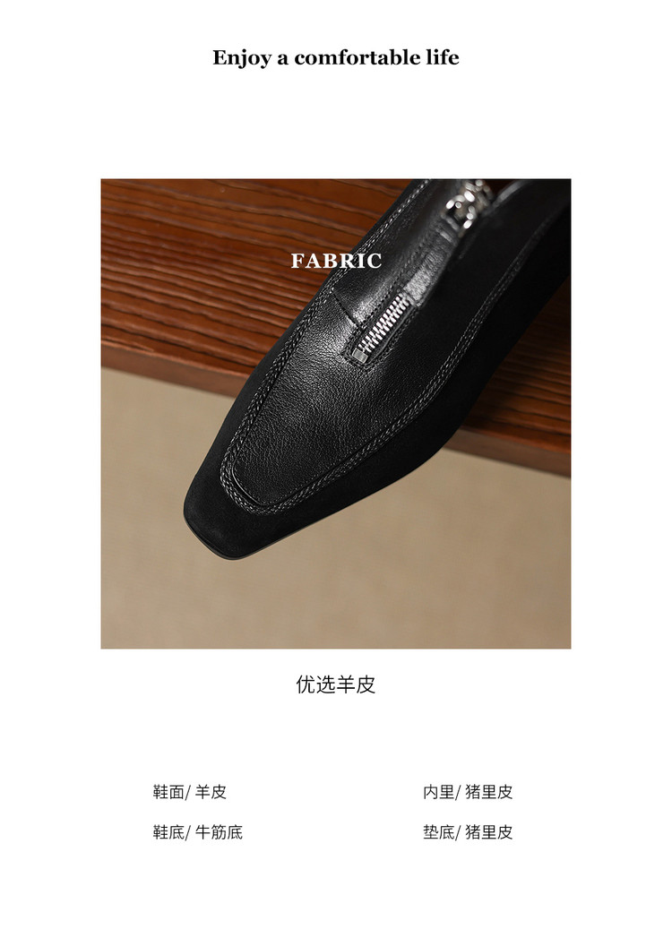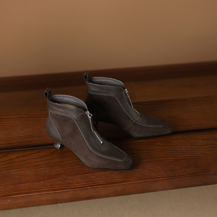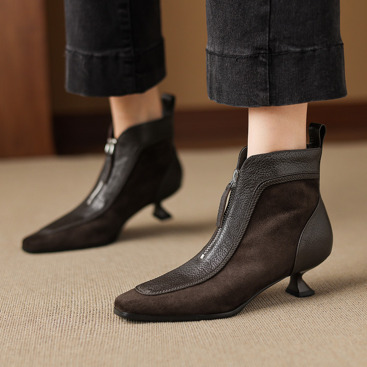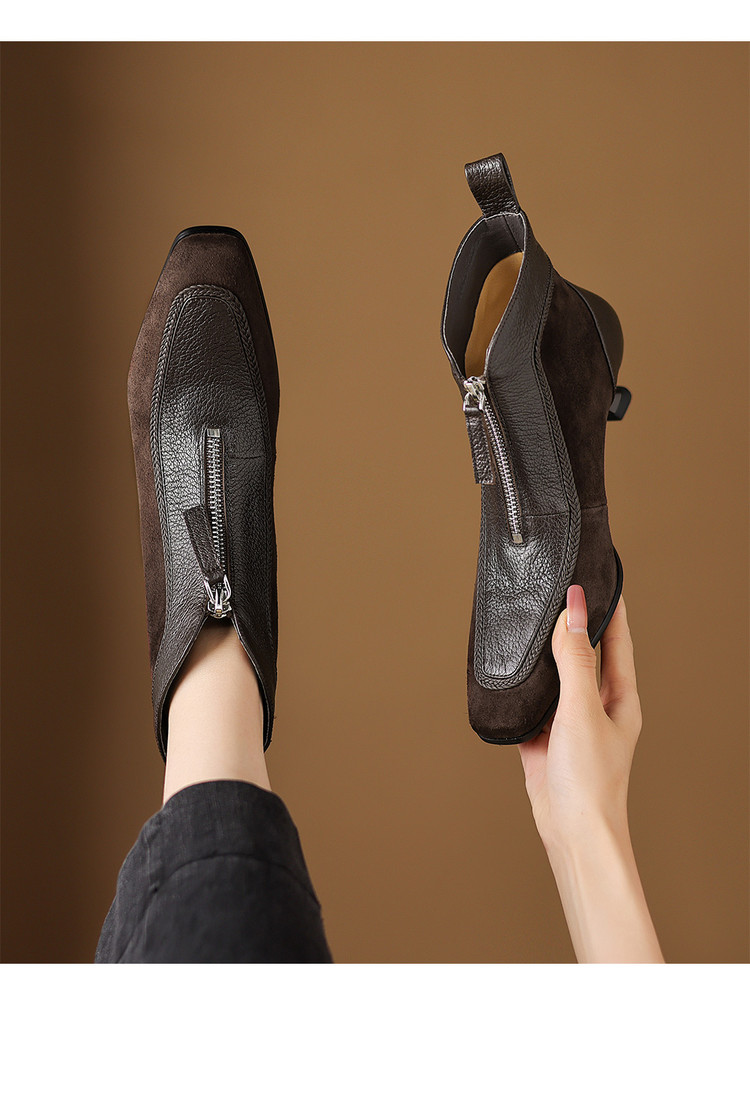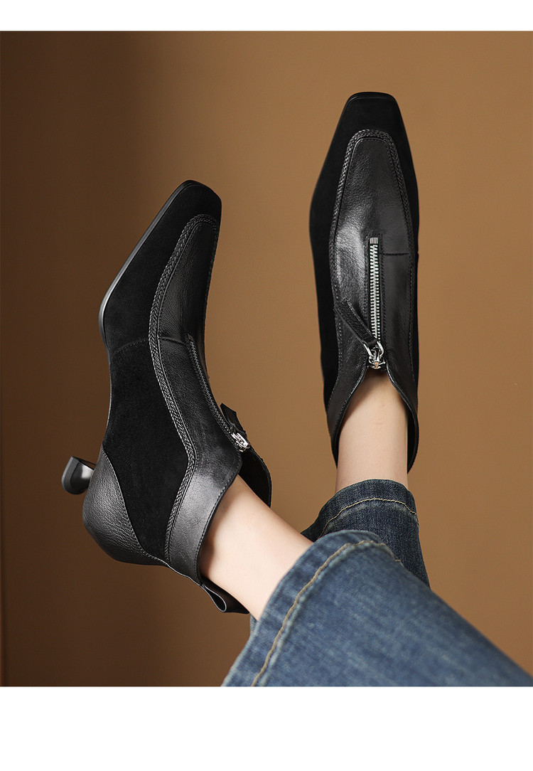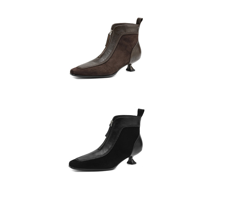 【预售5天】秋冬前拉链羊皮真皮4.5cm短靴小方头低跟粗跟优雅百搭瘦瘦靴JLY&26-18