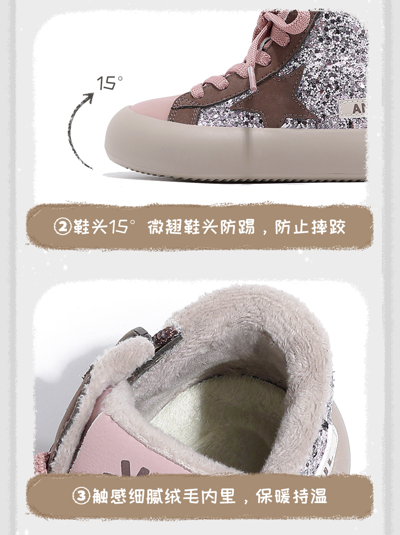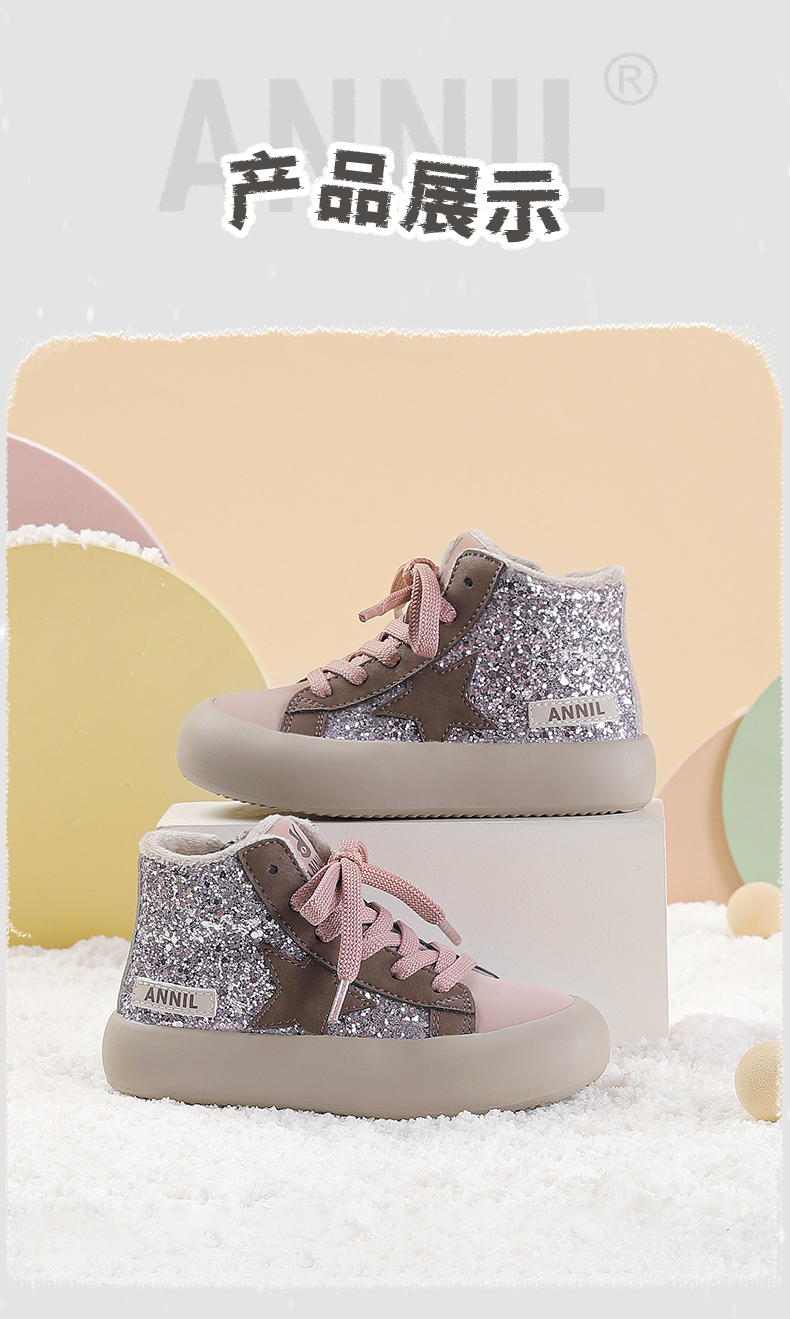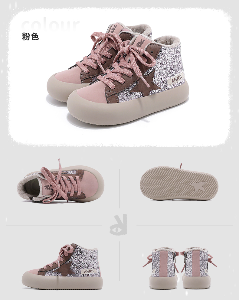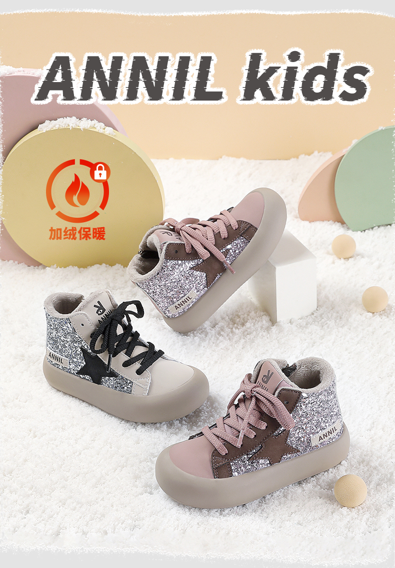ANNIL/安奈儿女童加厚板鞋冬季加绒小童软底棉鞋水晶绒宝宝雪地靴HG4404117