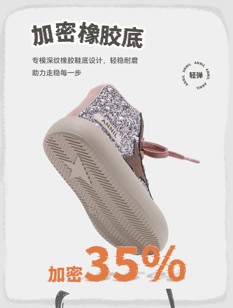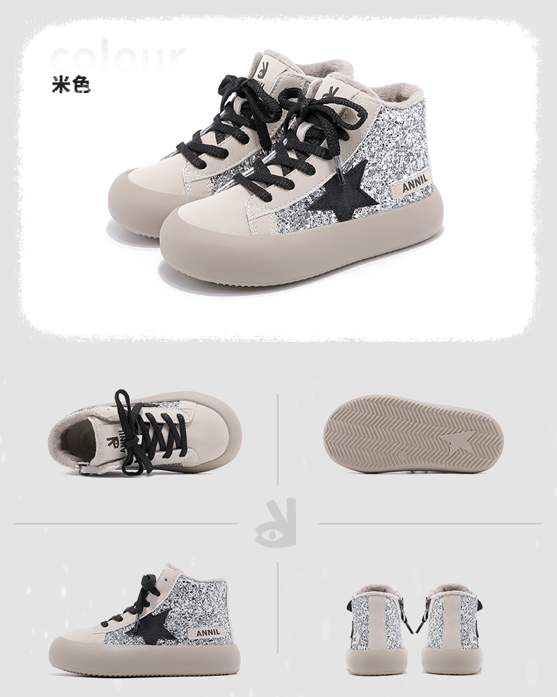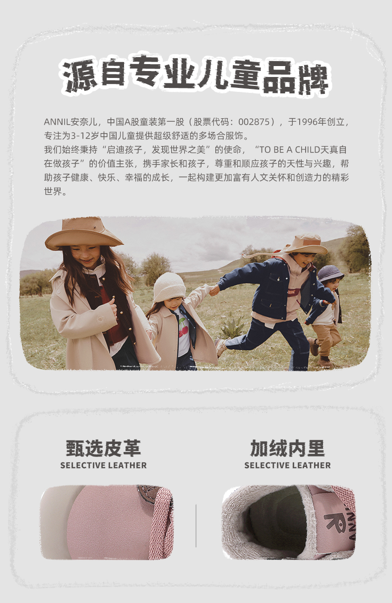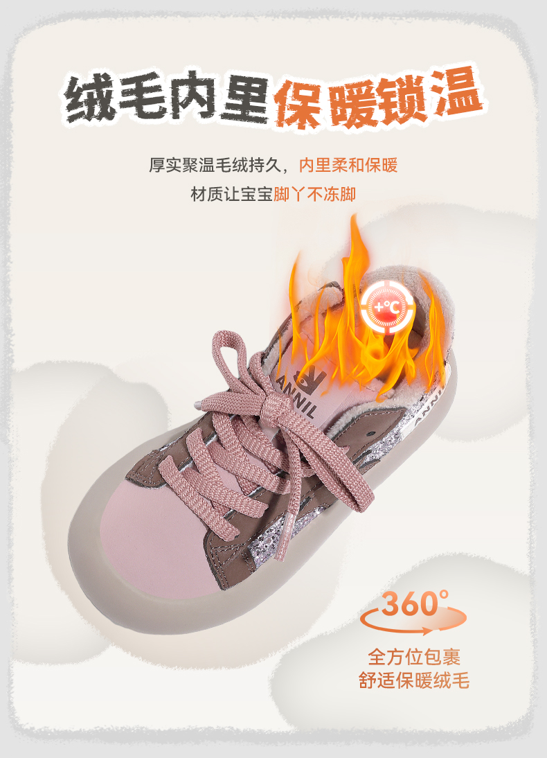 ANNIL/安奈儿女童加厚板鞋冬季加绒小童软底棉鞋水晶绒宝宝雪地靴HG4404117